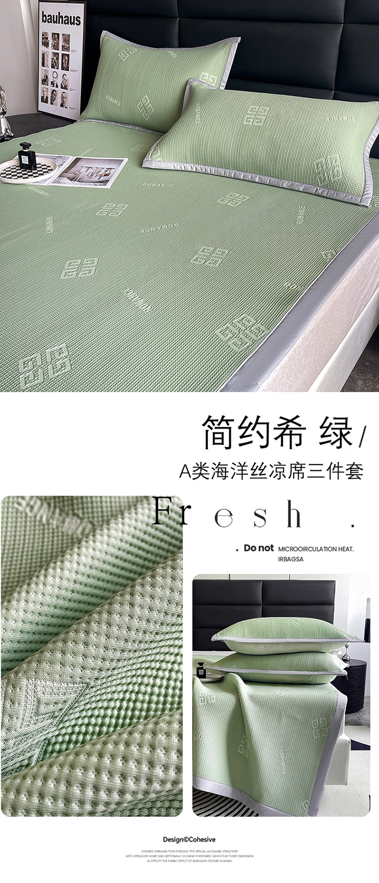 花漾家居 2023新款A类轻奢宽边海洋丝凉感丝针织凉席三件套 简约希绿