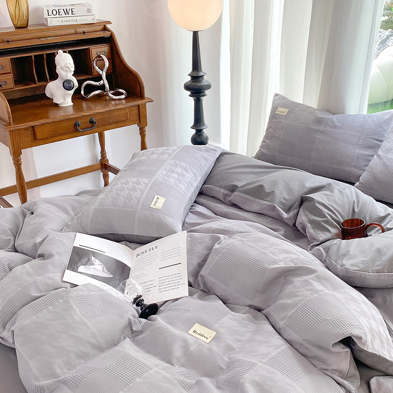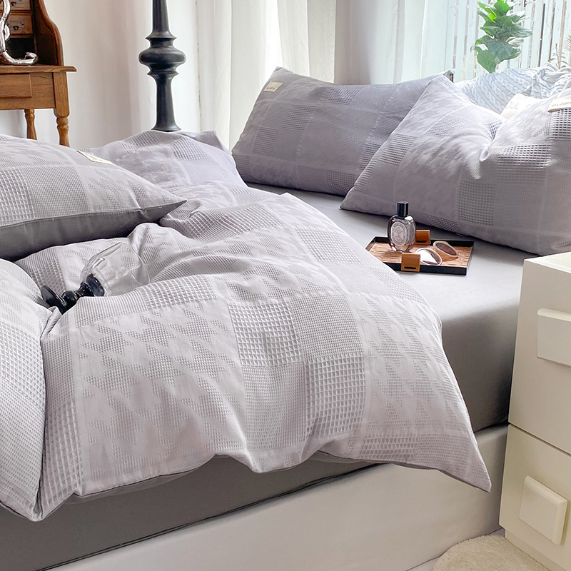 当前位置: 91家纺网 > 商品网购 > 床品套件 > 四件套 > 全棉普通四件套 > 澳梵家居 2023新品全棉华夫格四件套 千鸟格-灰