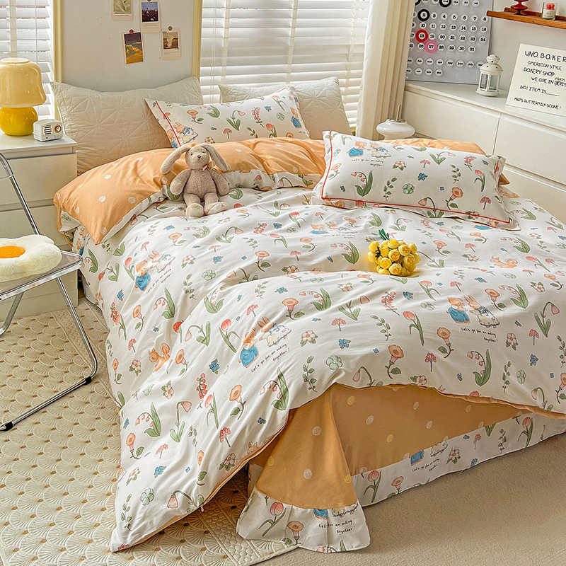 (总)乐童家纺 2026新款全棉纯棉拼接花边小清新工艺款四件套,彩虹木马,春日小兔,花田兔兔,凯莉梦境,口袋故事,浪花轻歌,毛线彩虹,梦境手账,千禧少女咖,少女日记,心跳瞬间