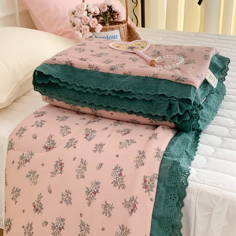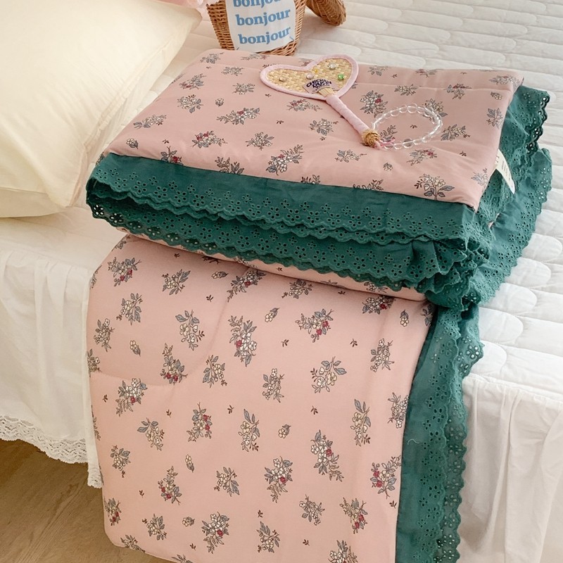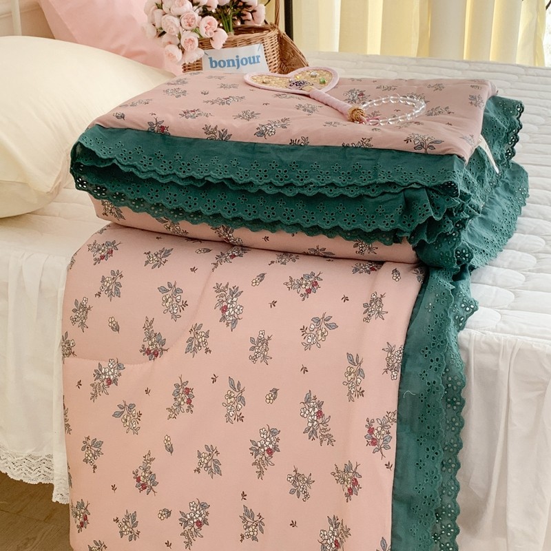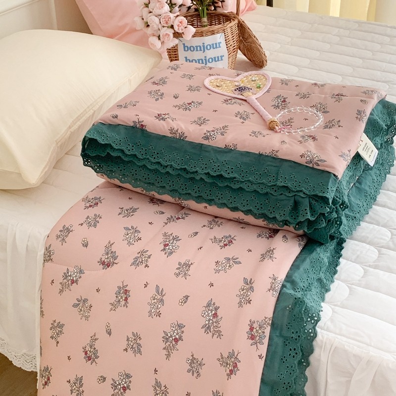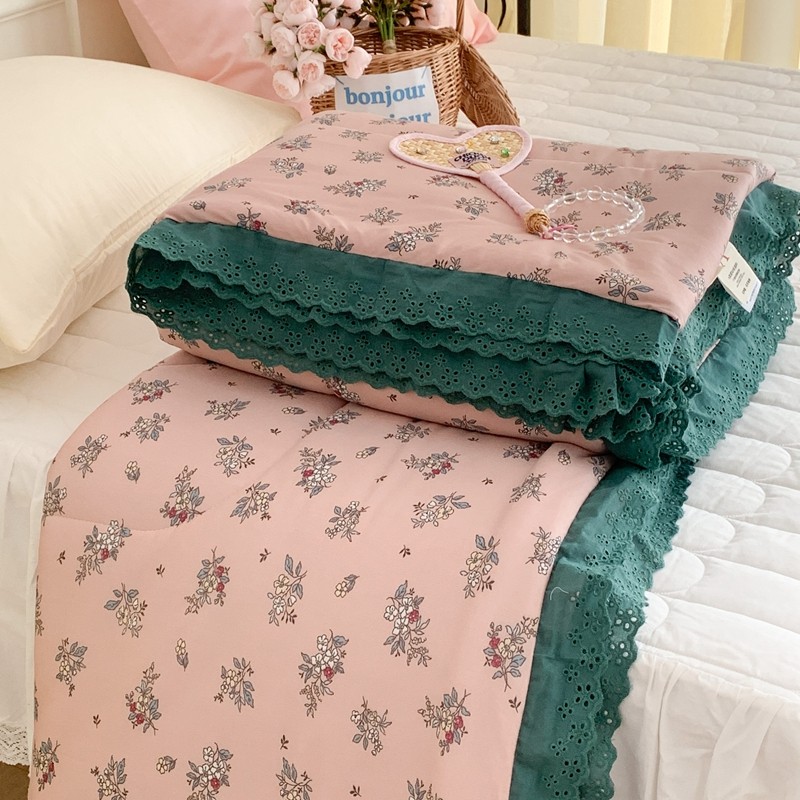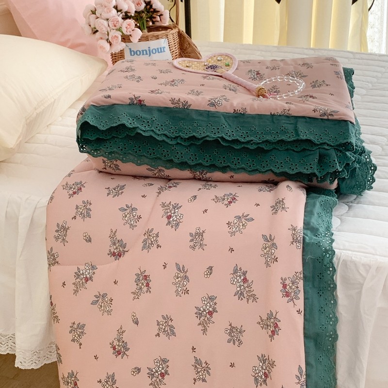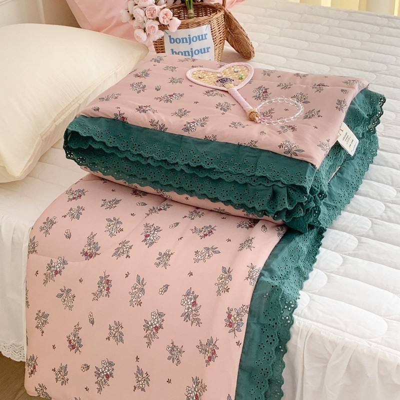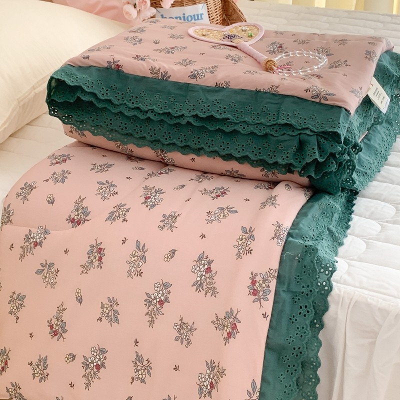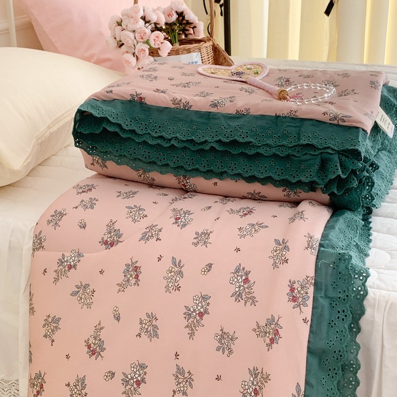 昔可 复古蕾丝花边针织夏被 粉嫩小甜心