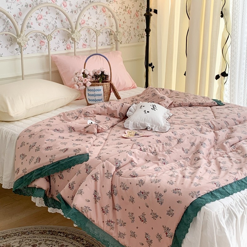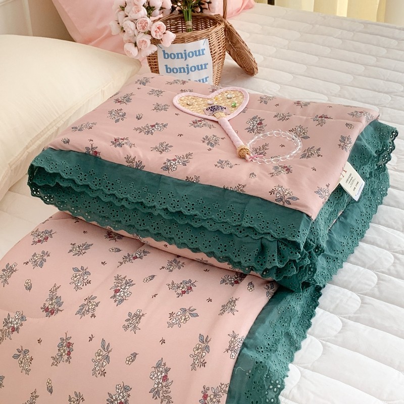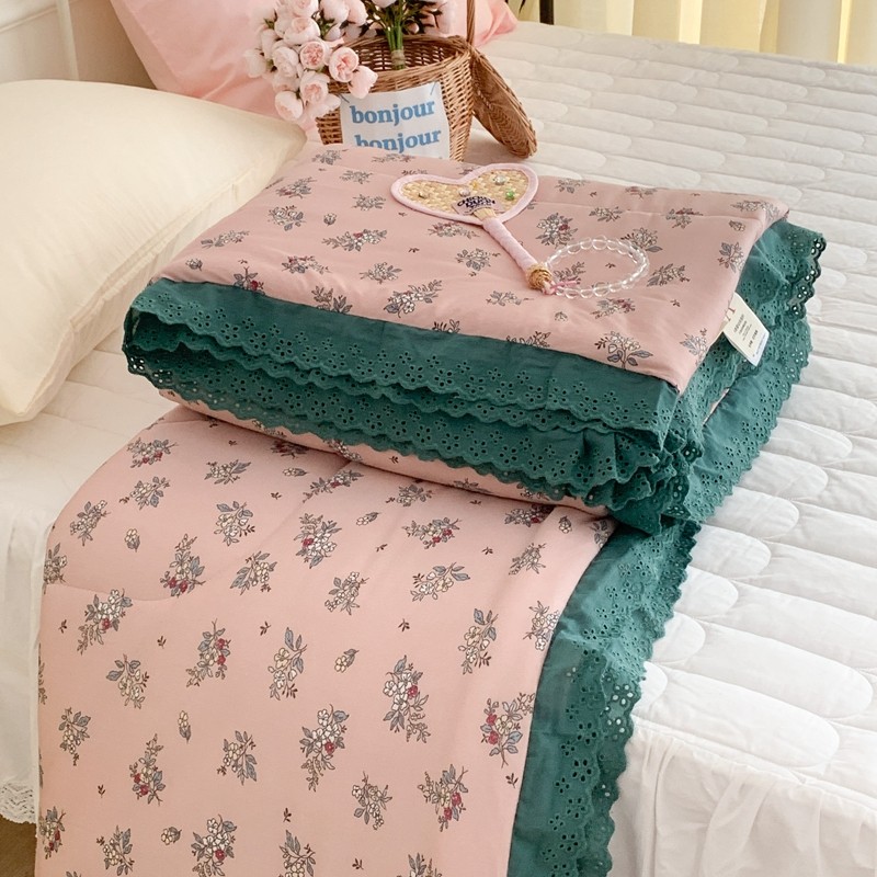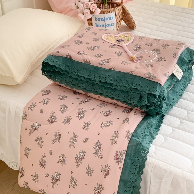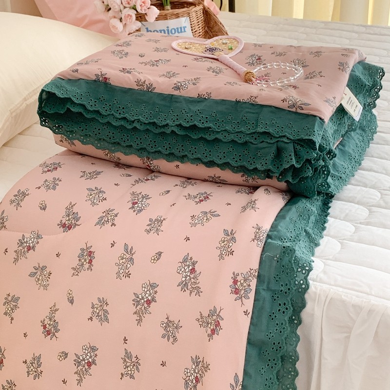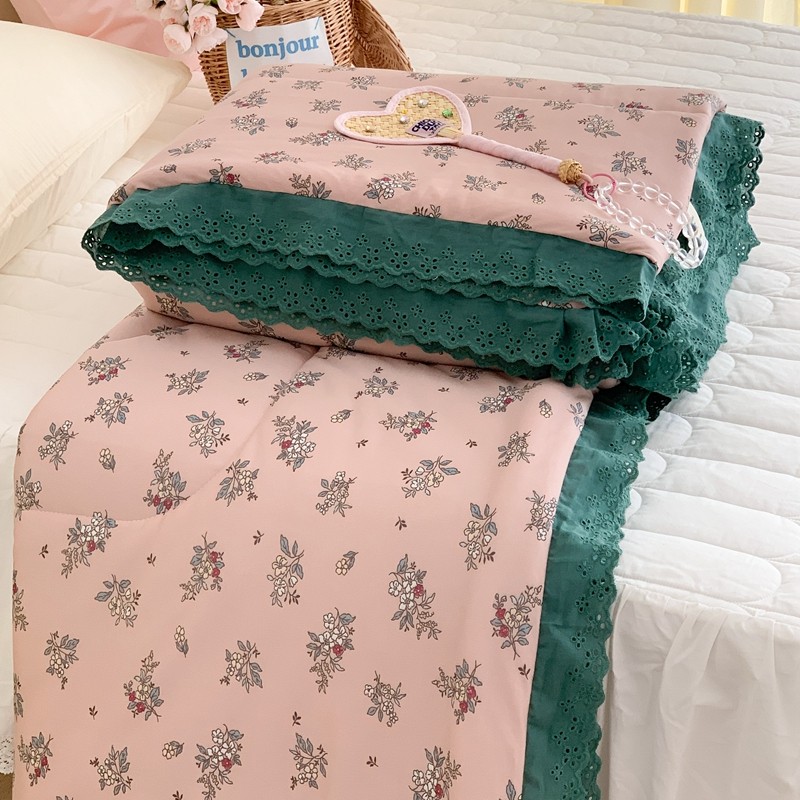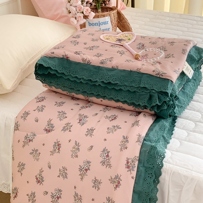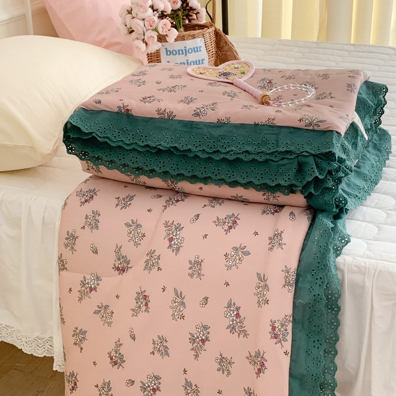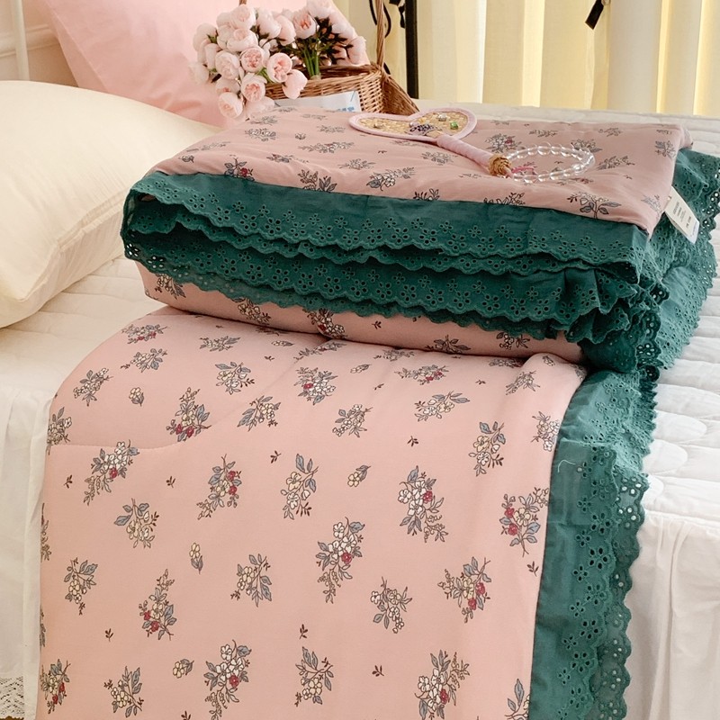 昔可 复古蕾丝花边针织夏被 粉嫩小甜心