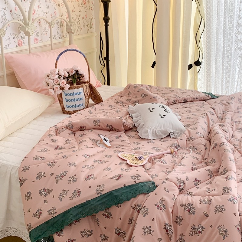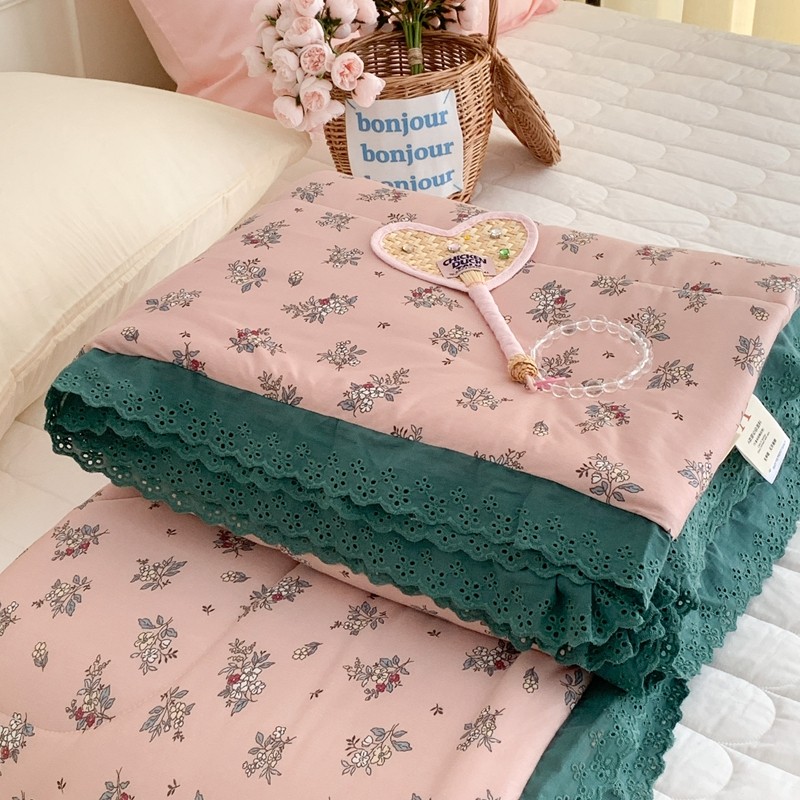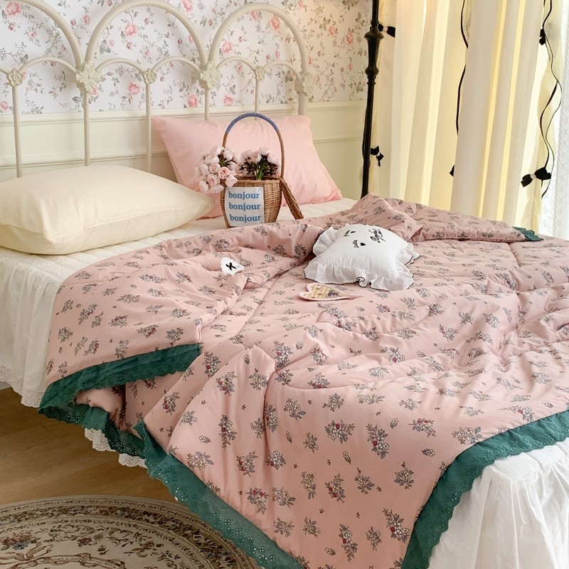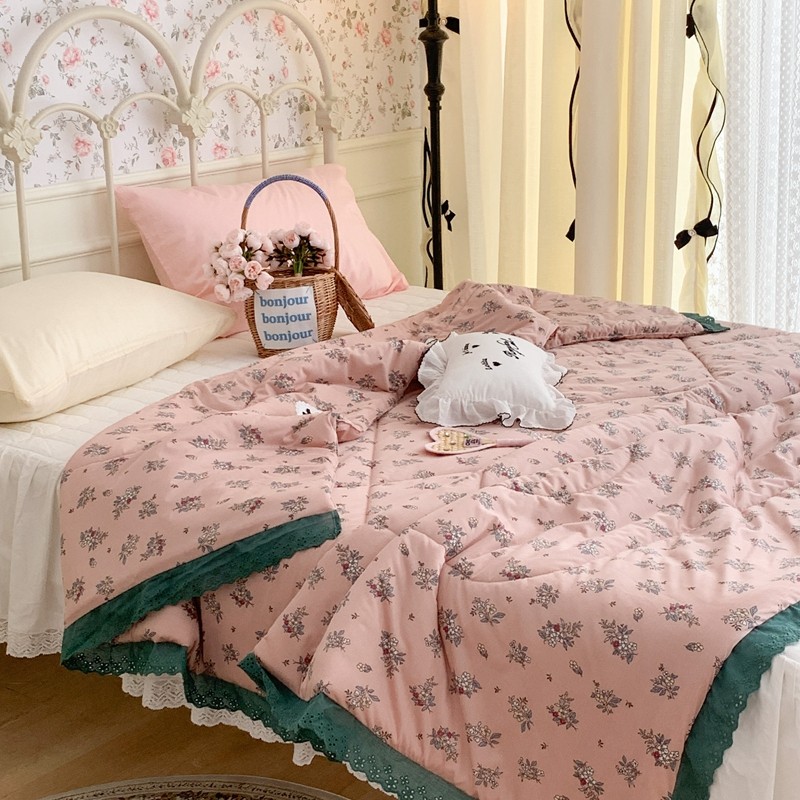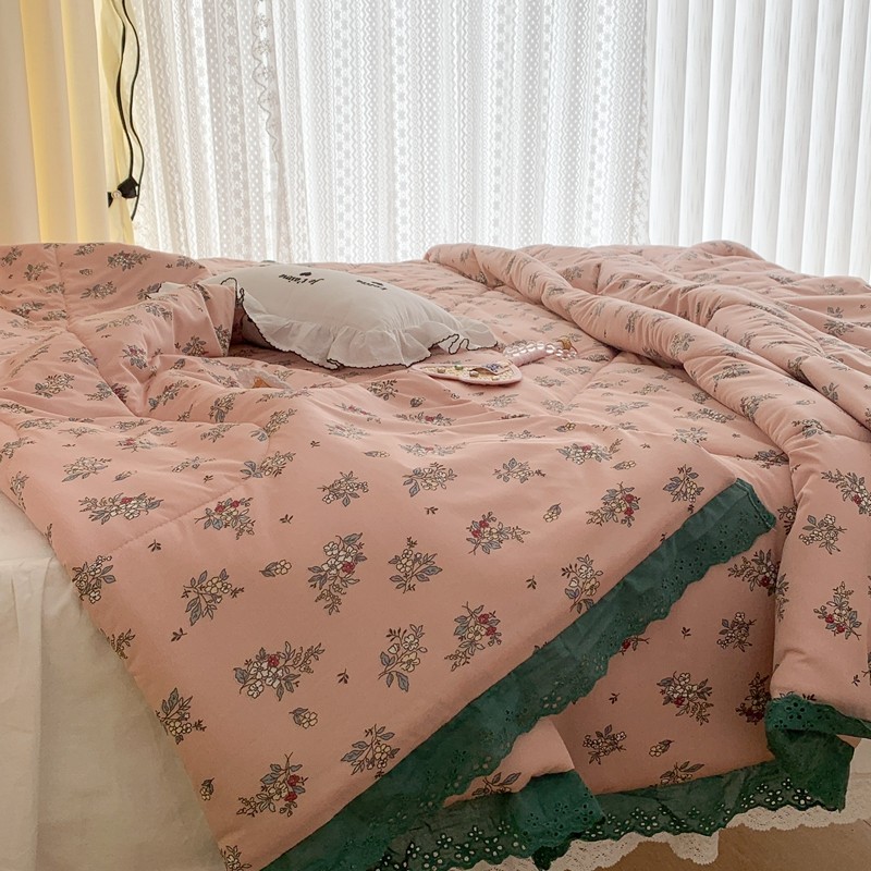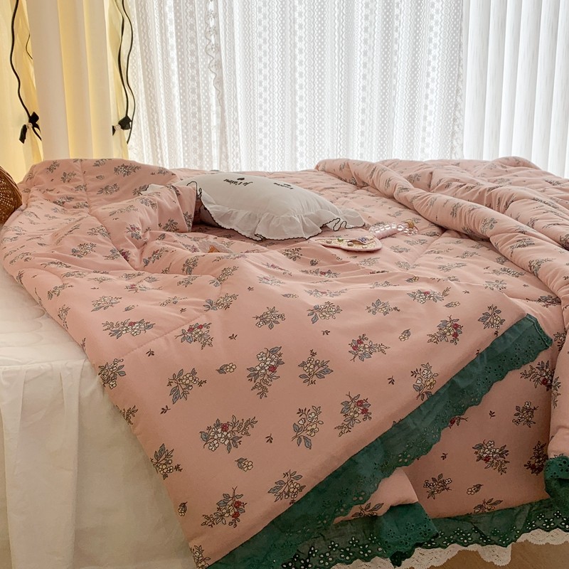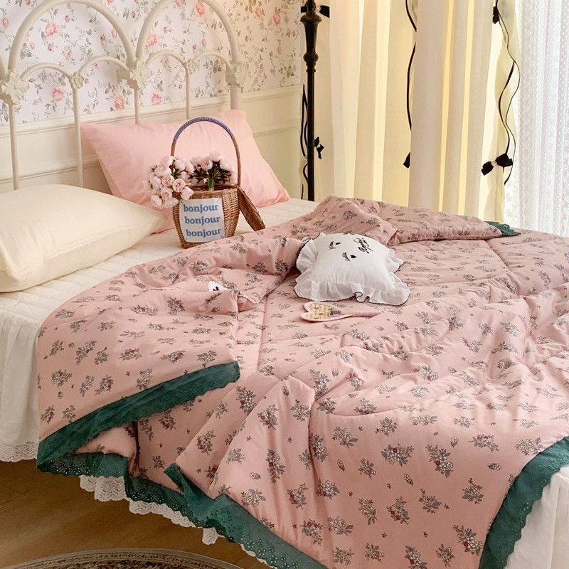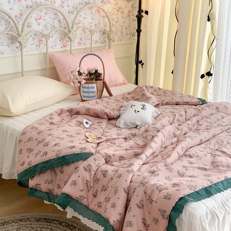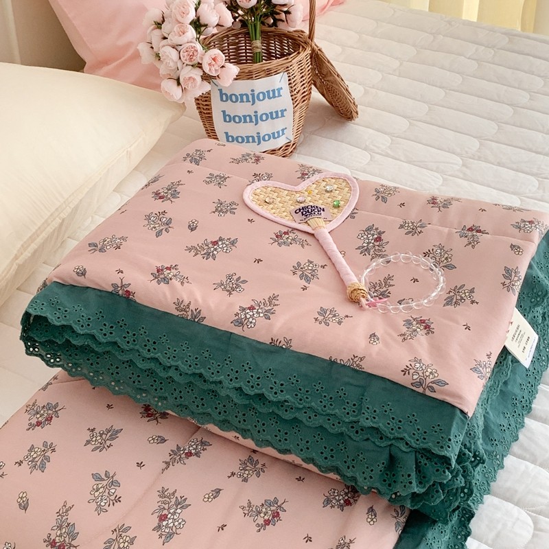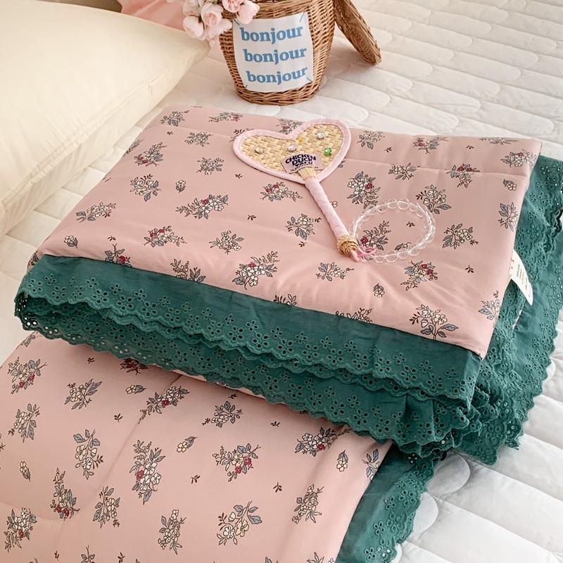 昔可 复古蕾丝花边针织夏被 粉嫩小甜心