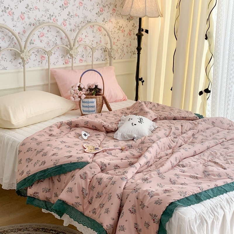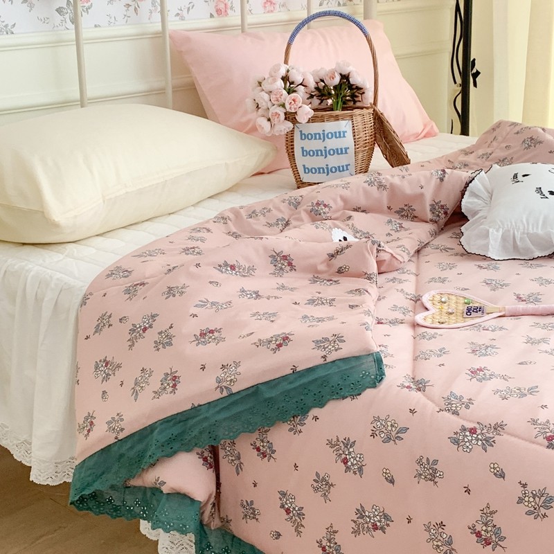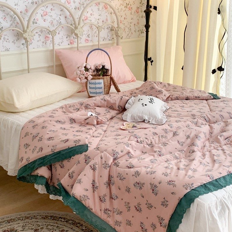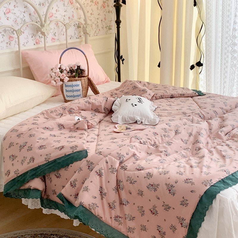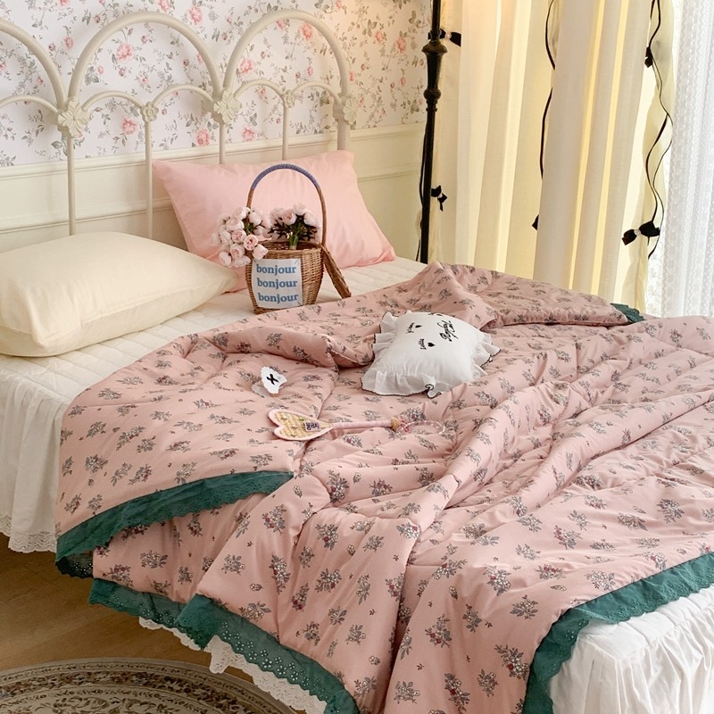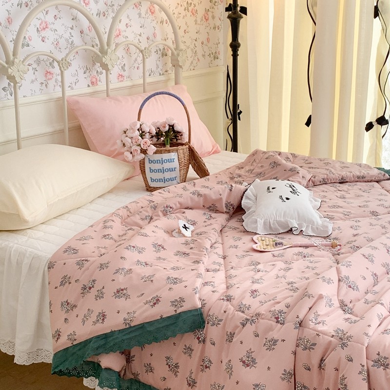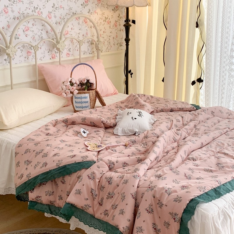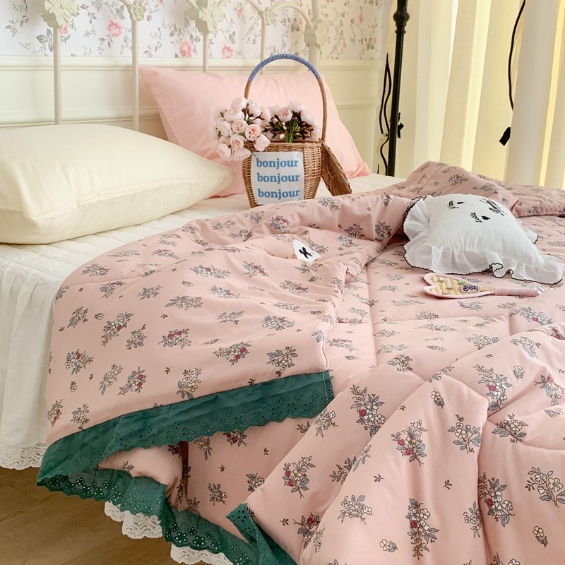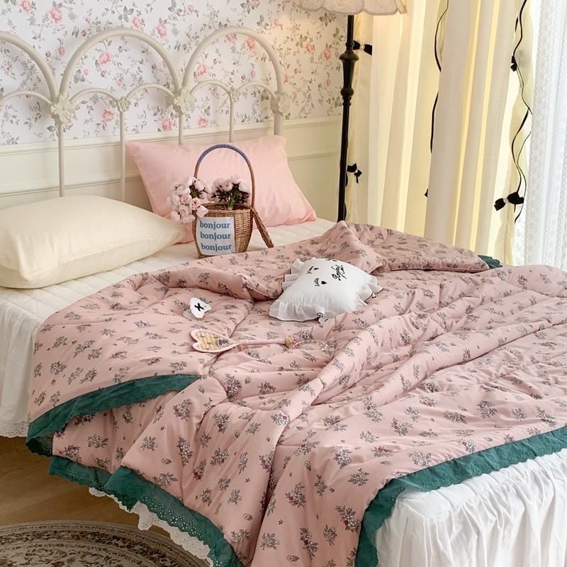 昔可 复古蕾丝花边针织夏被 粉嫩小甜心