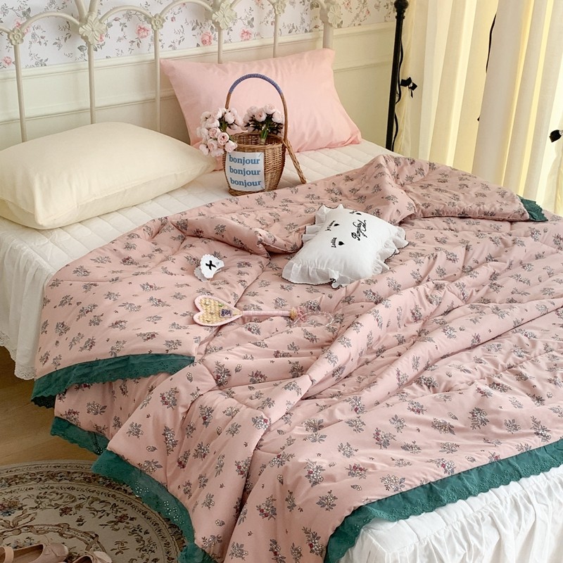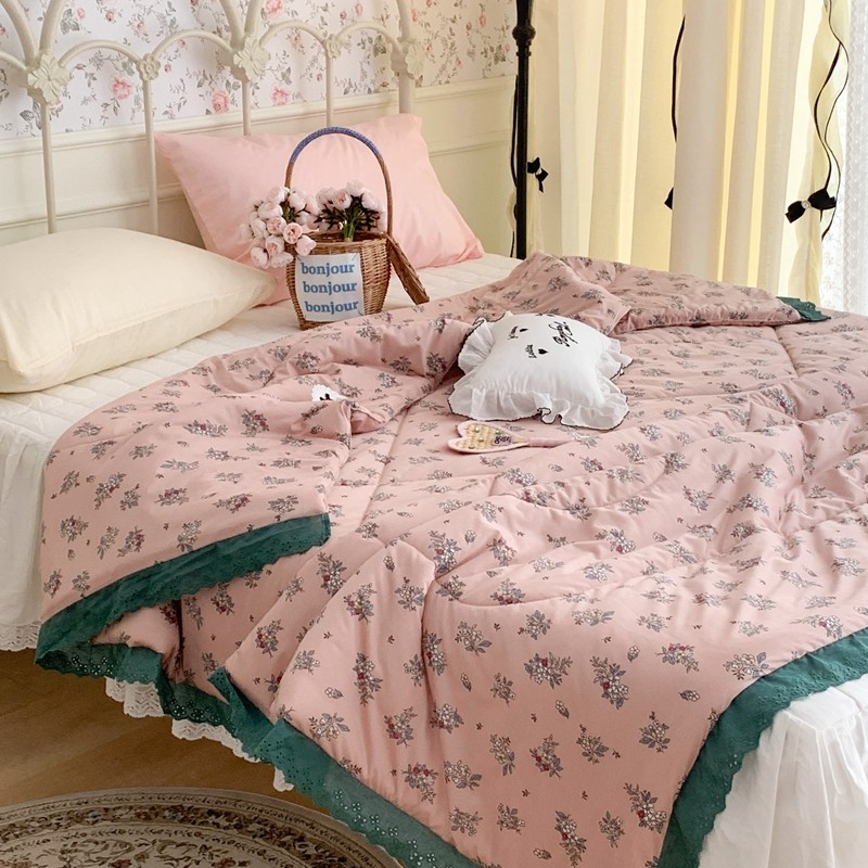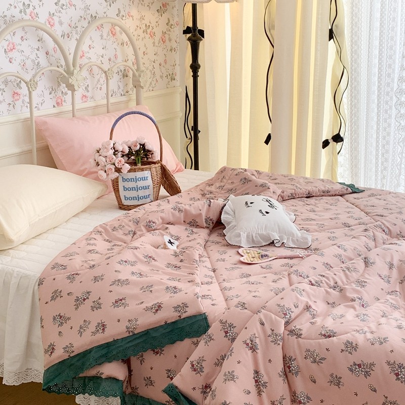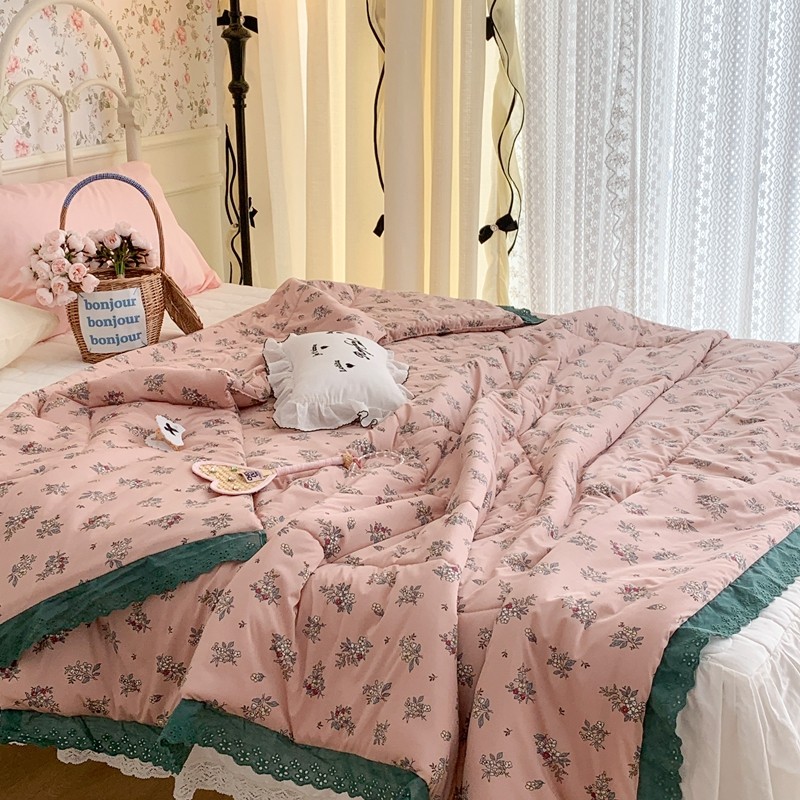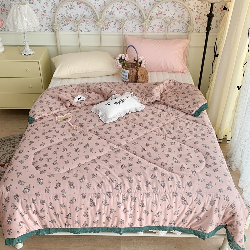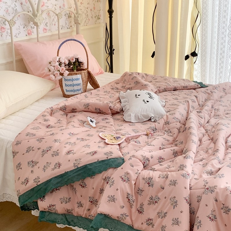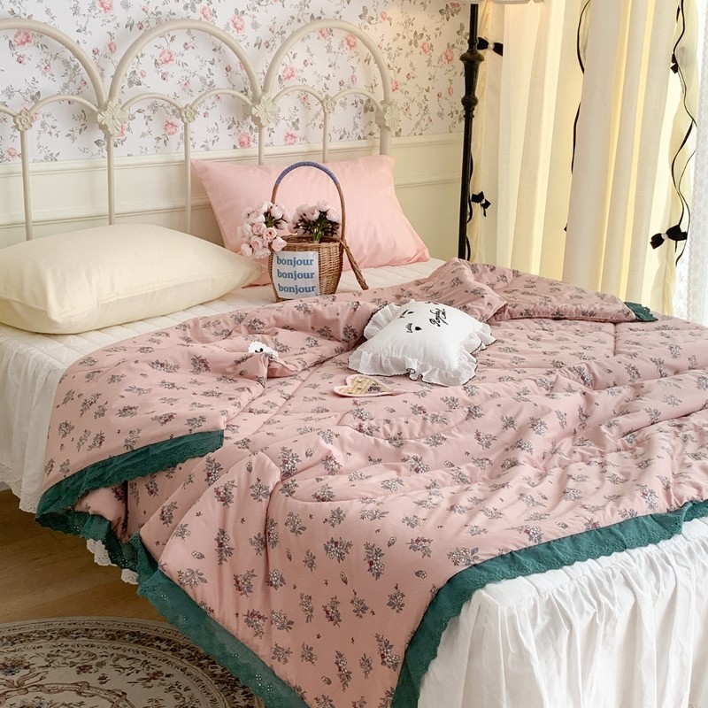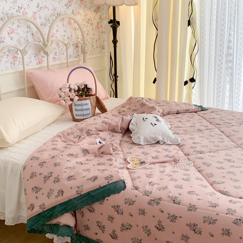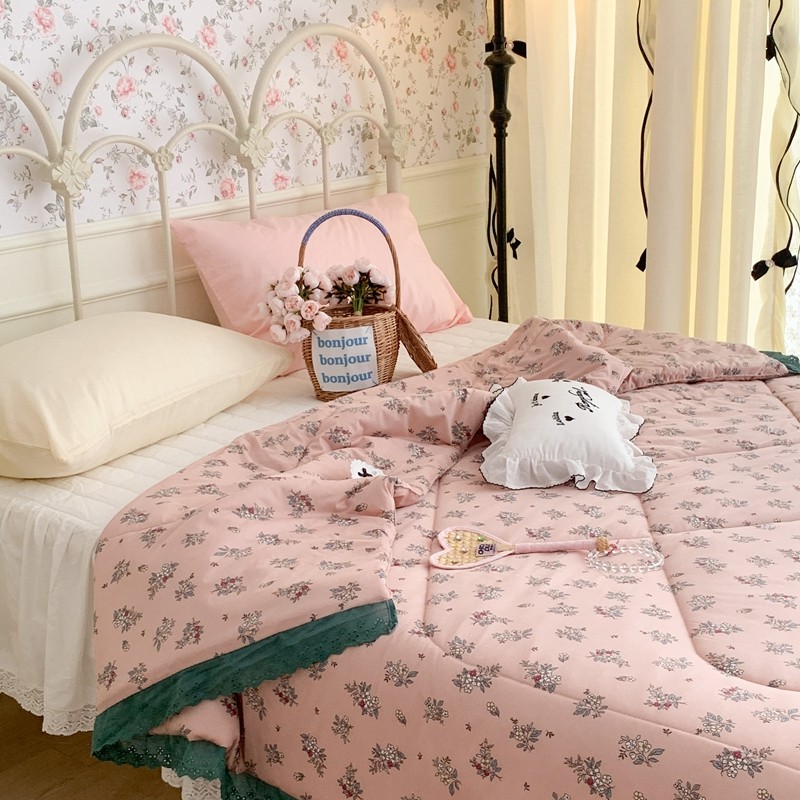 昔可 复古蕾丝花边针织夏被 粉嫩小甜心