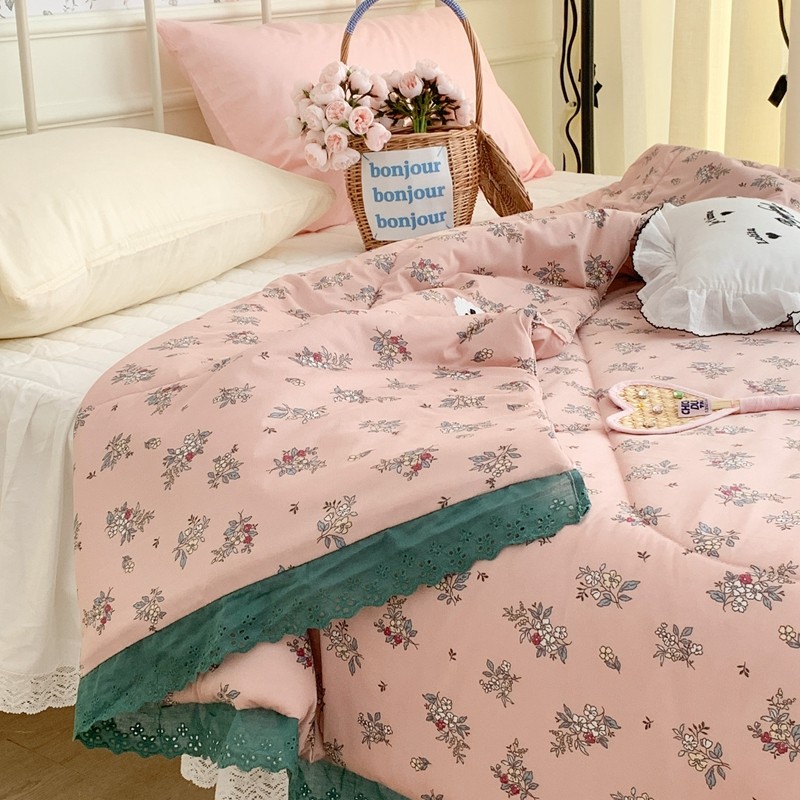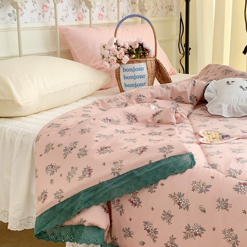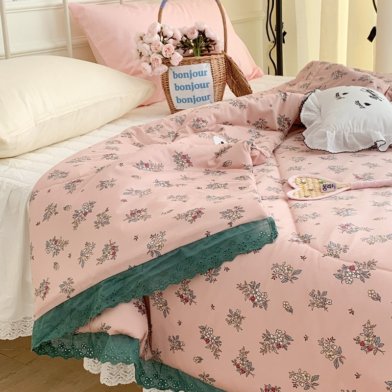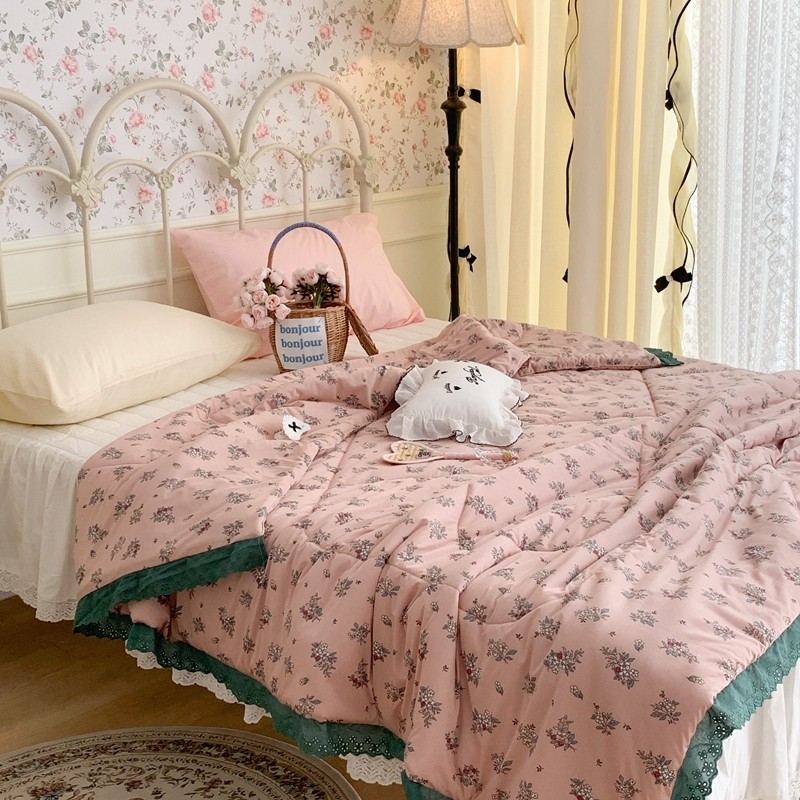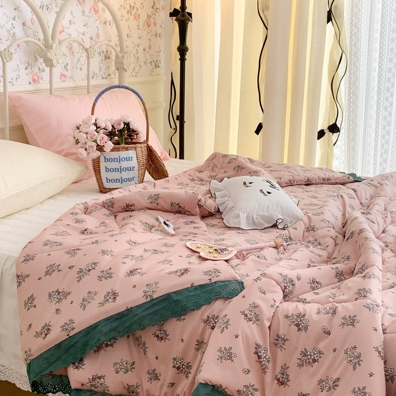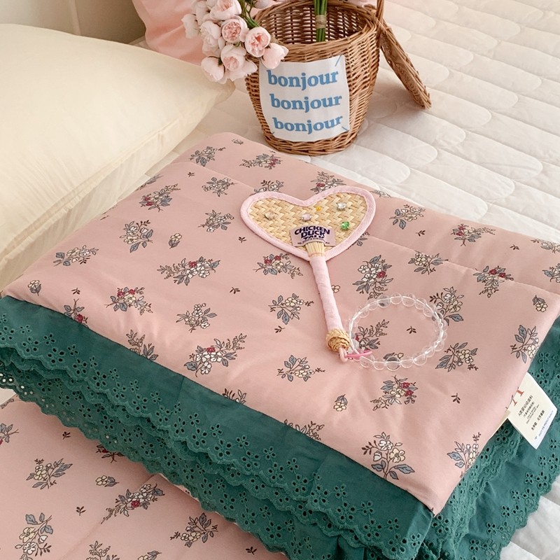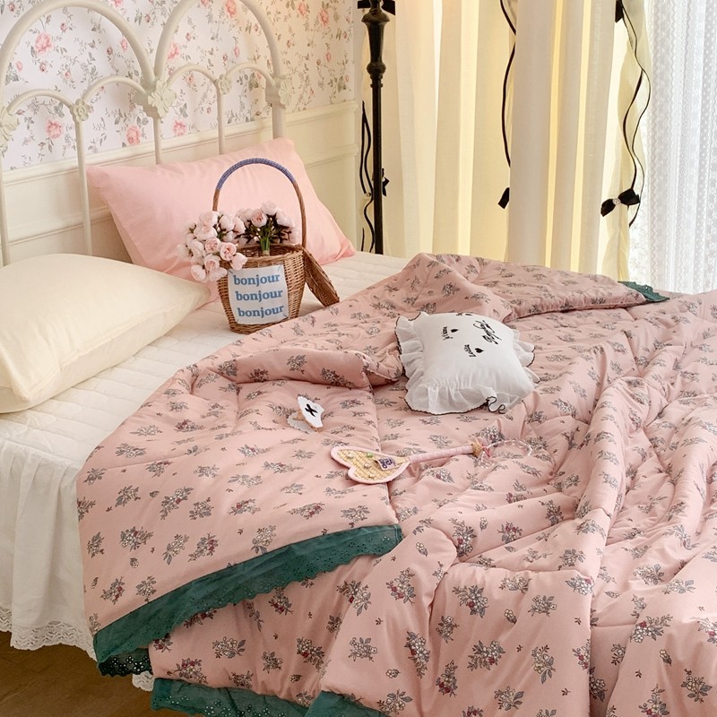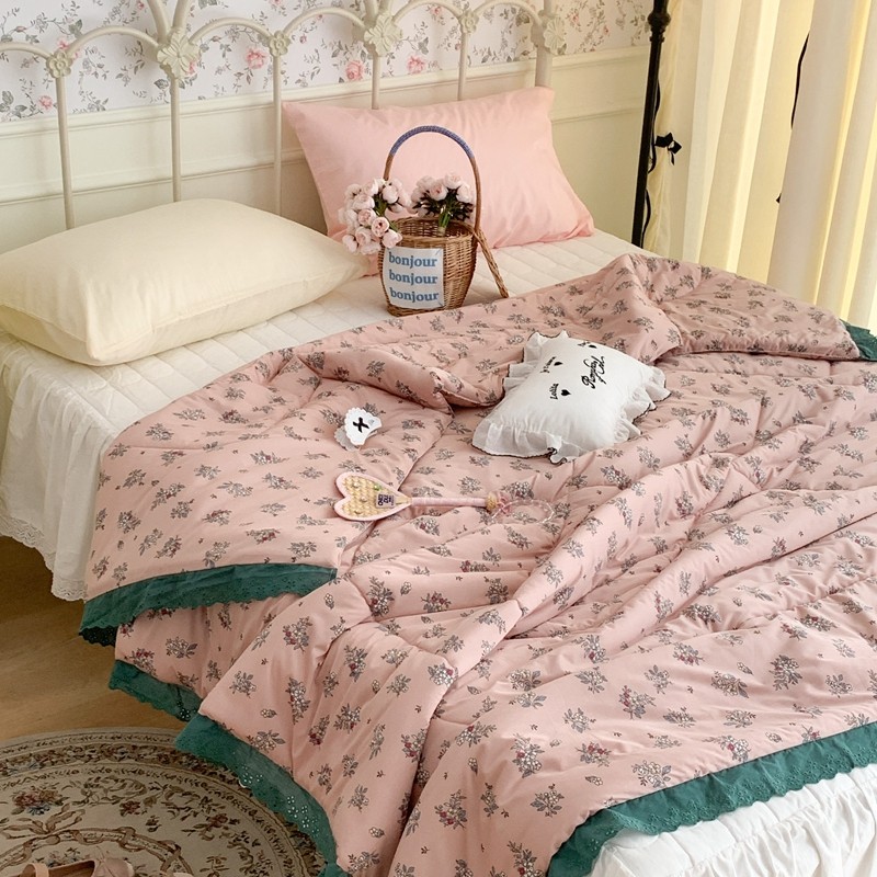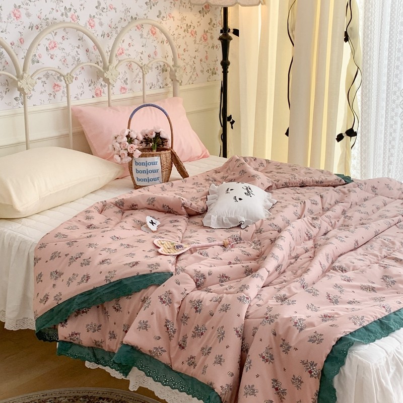 昔可 复古蕾丝花边针织夏被 粉嫩小甜心