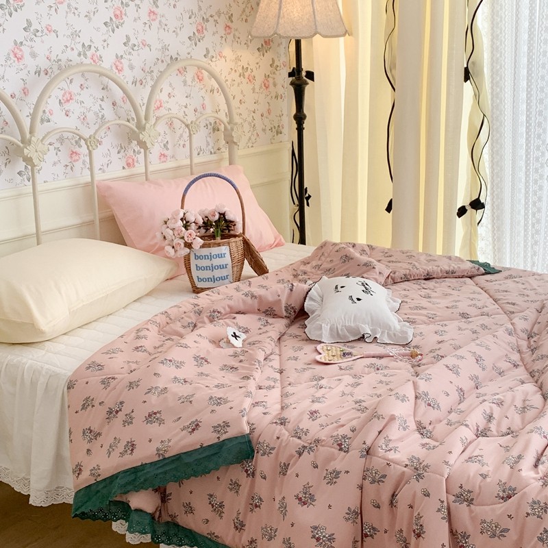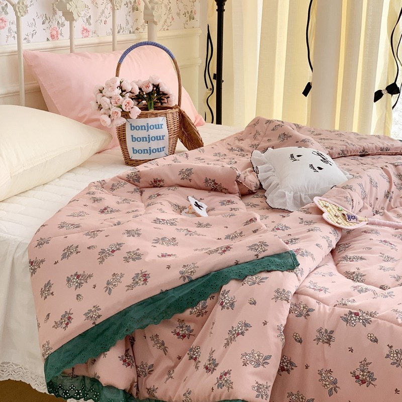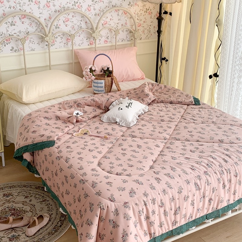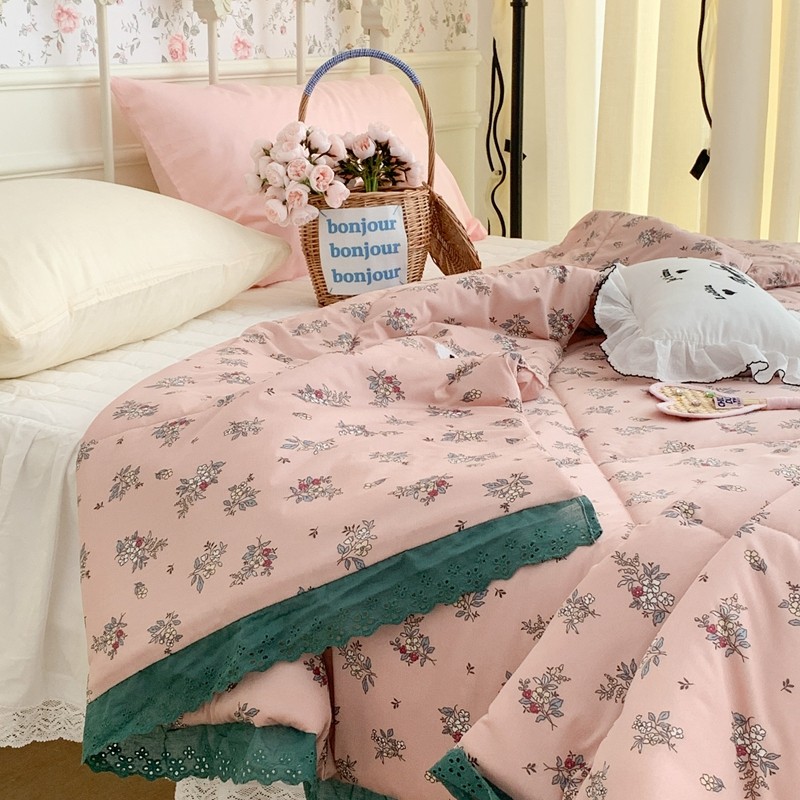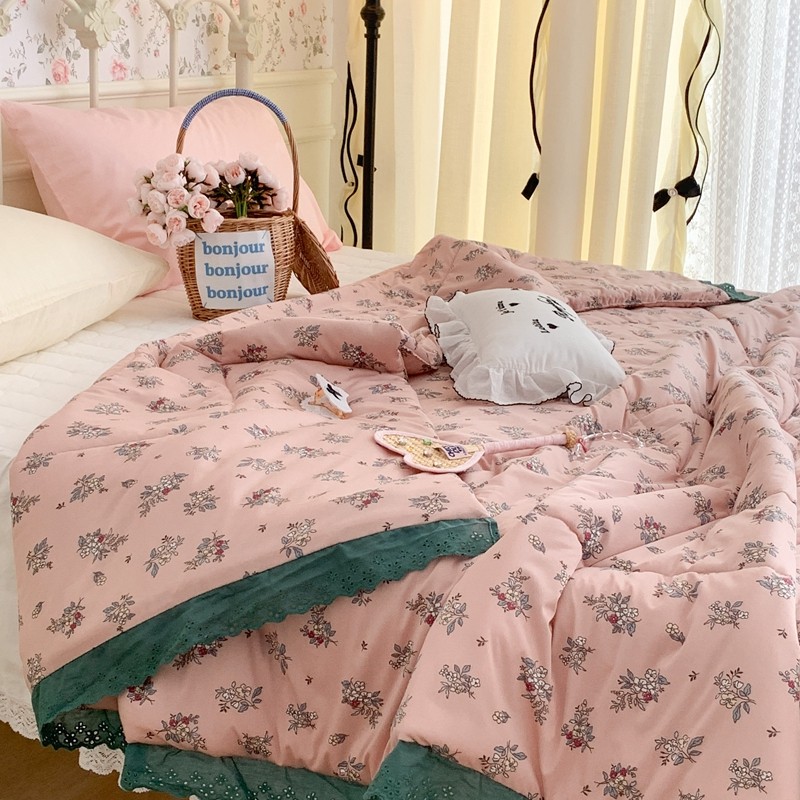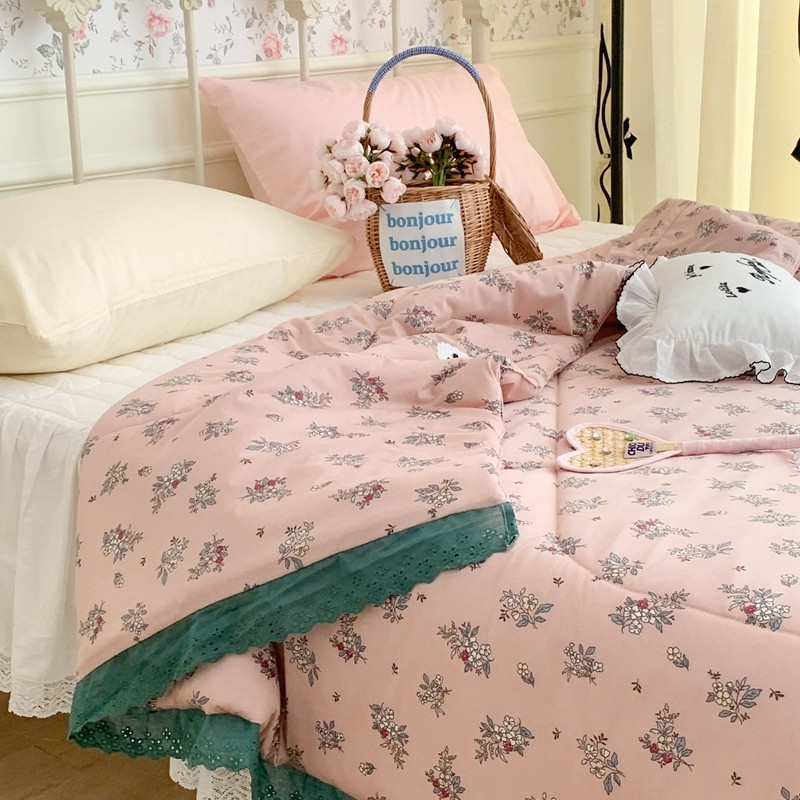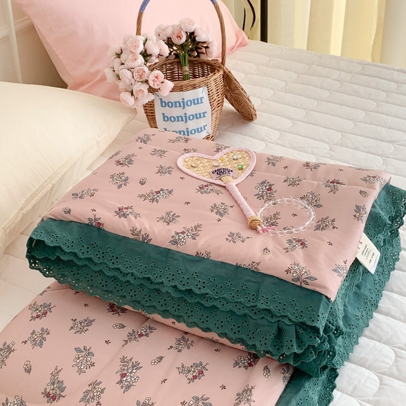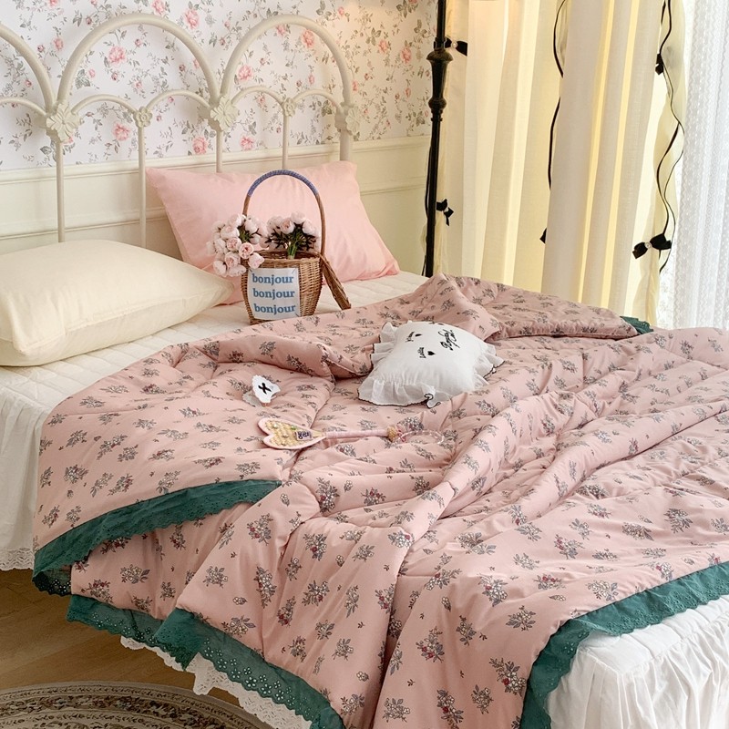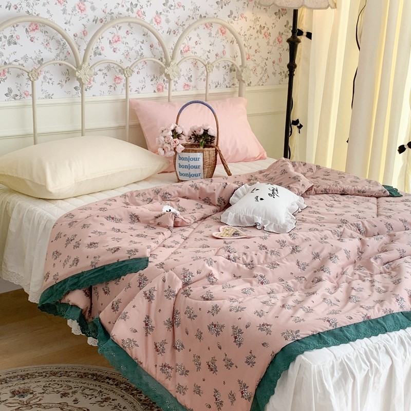 昔可 复古蕾丝花边针织夏被 粉嫩小甜心