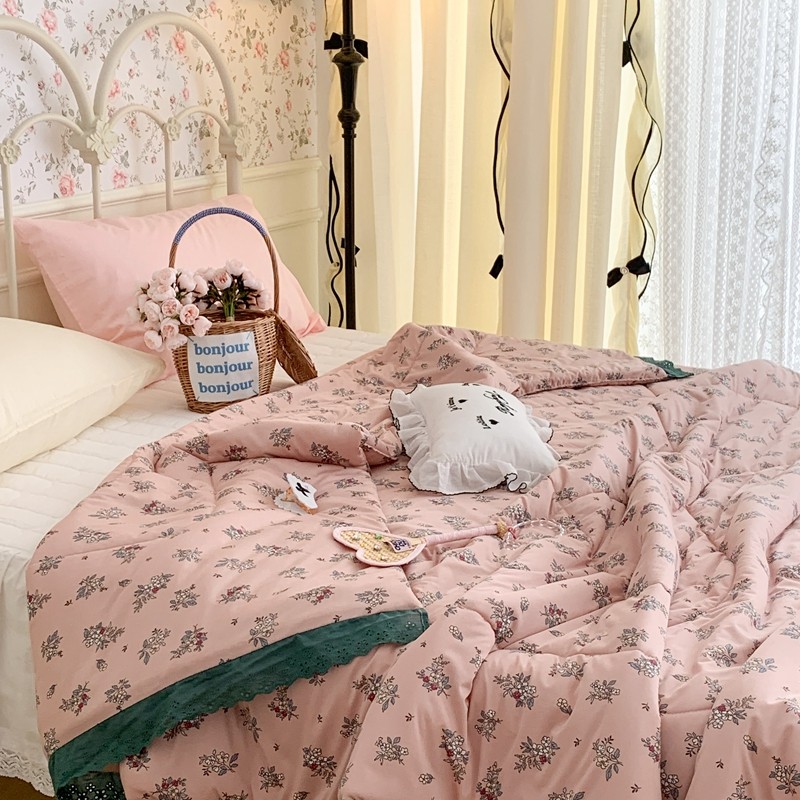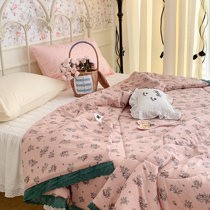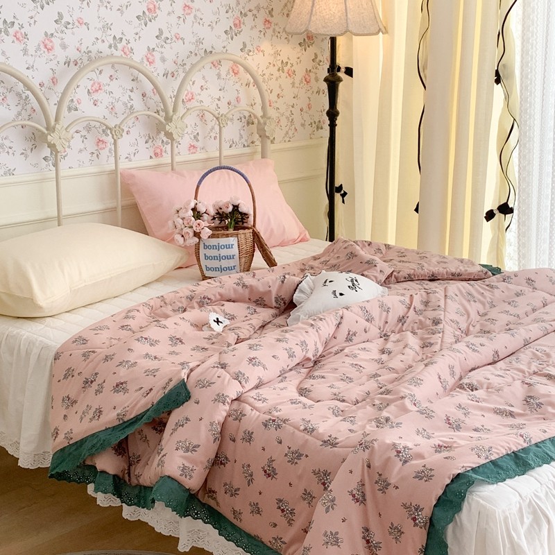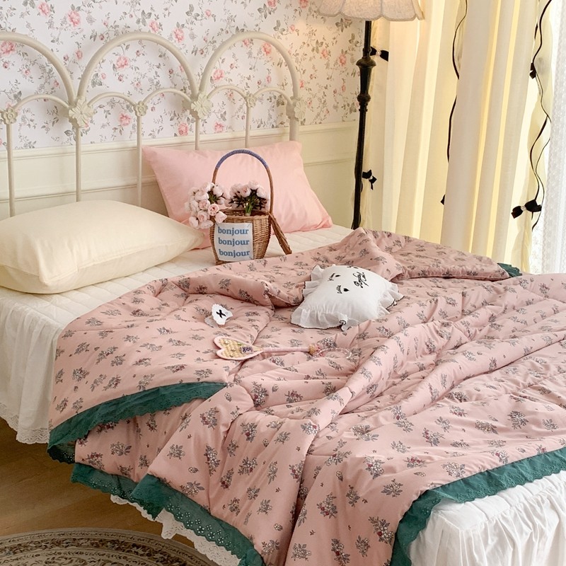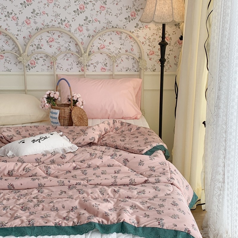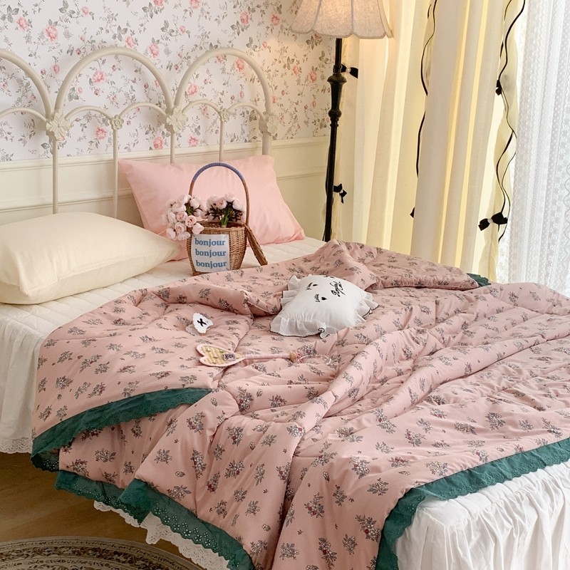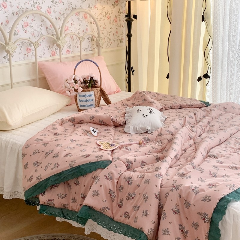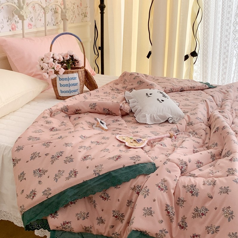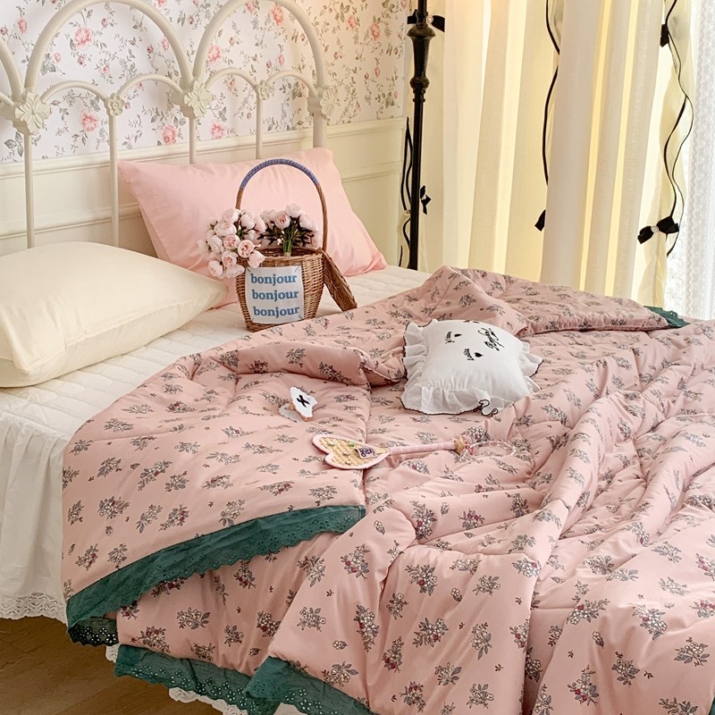 昔可 复古蕾丝花边针织夏被 粉嫩小甜心