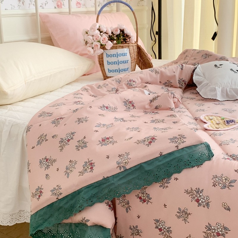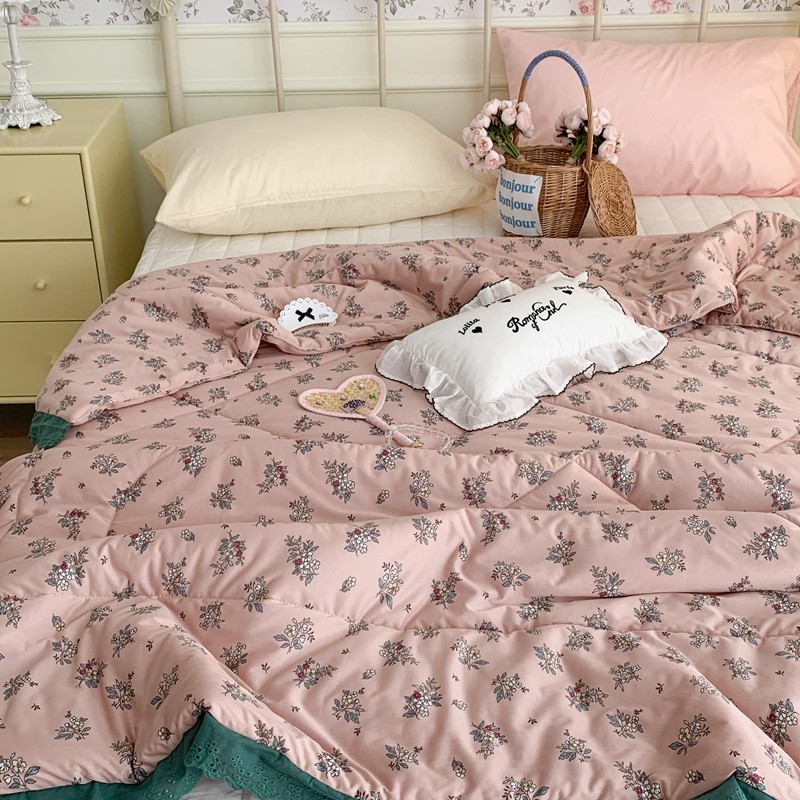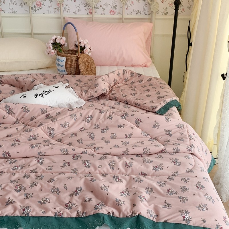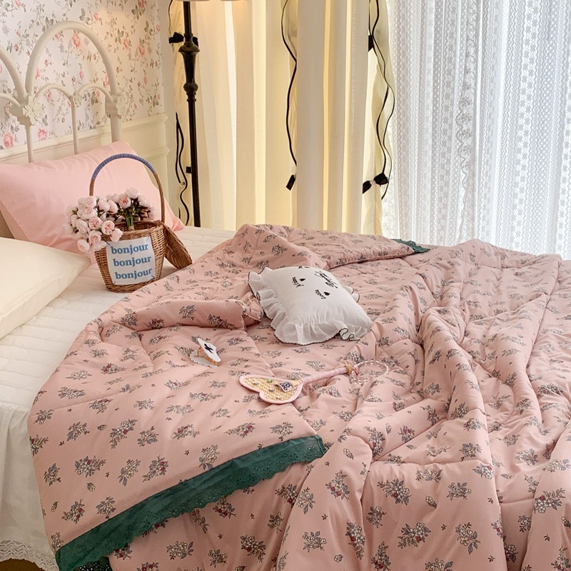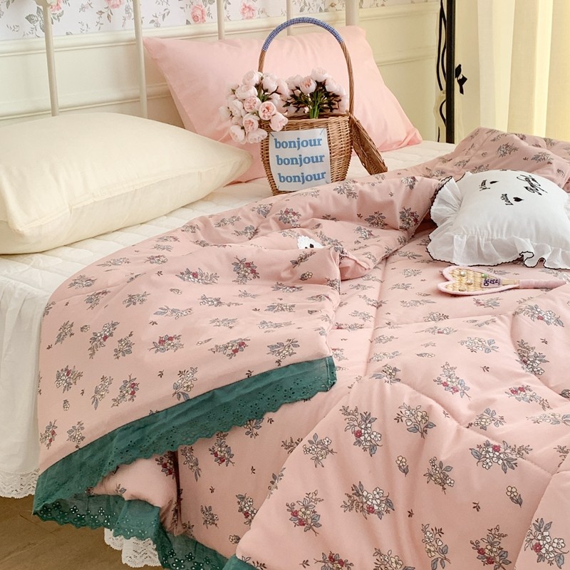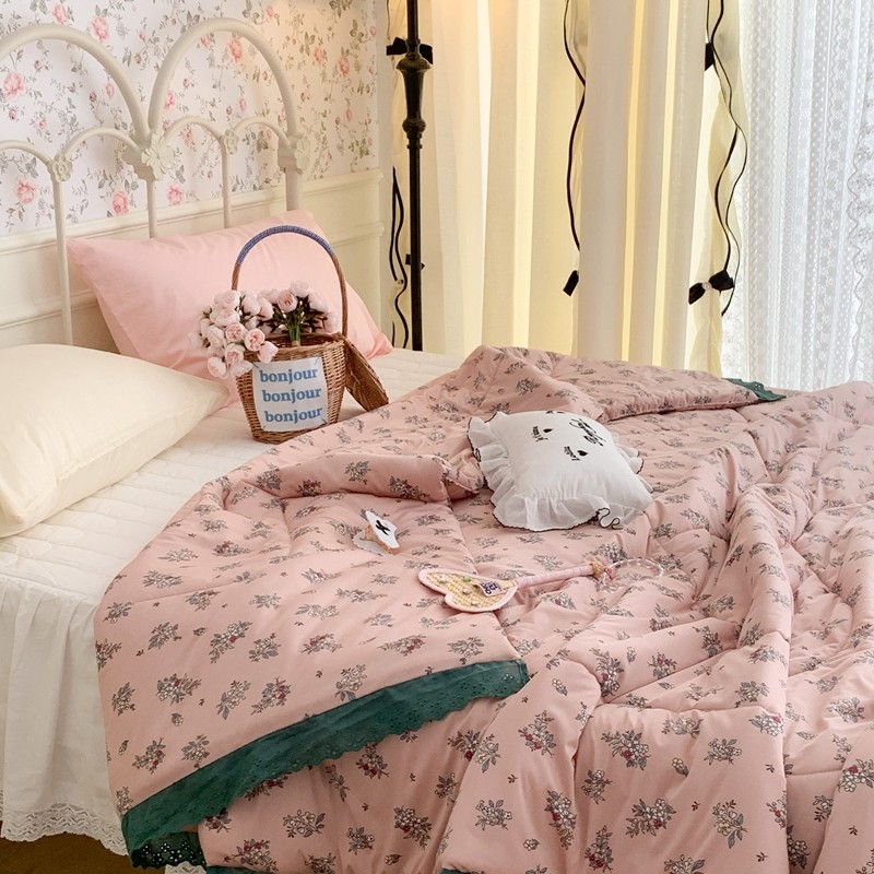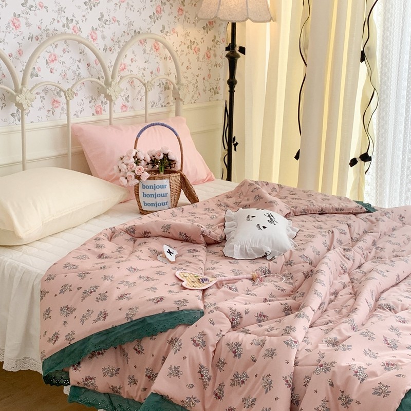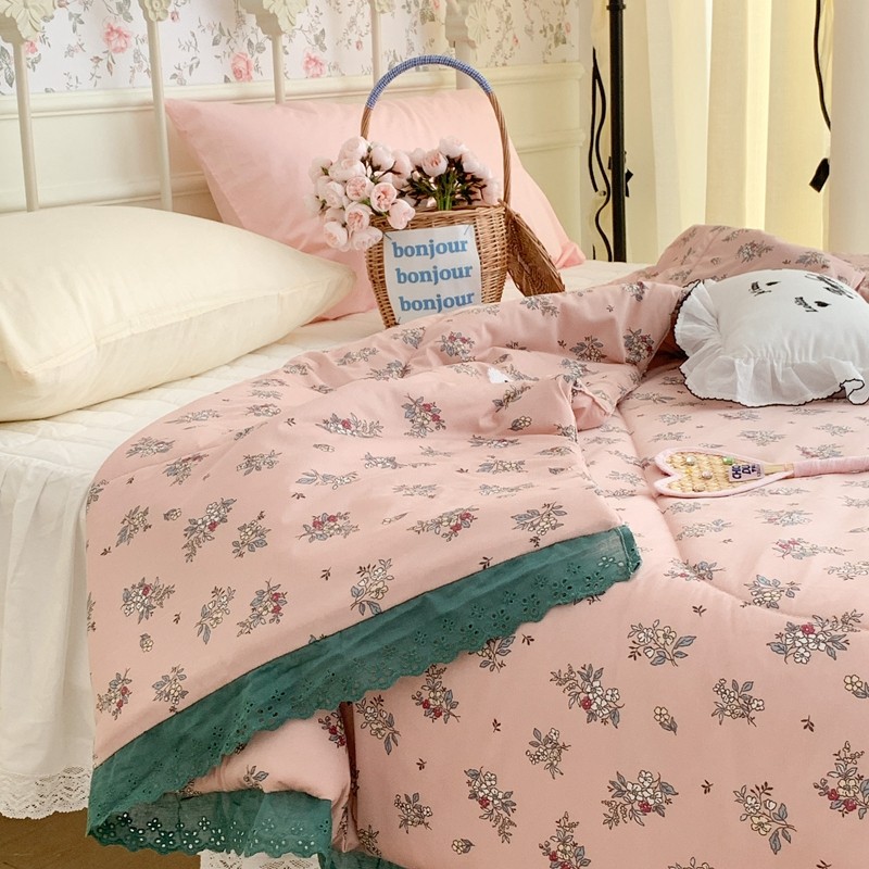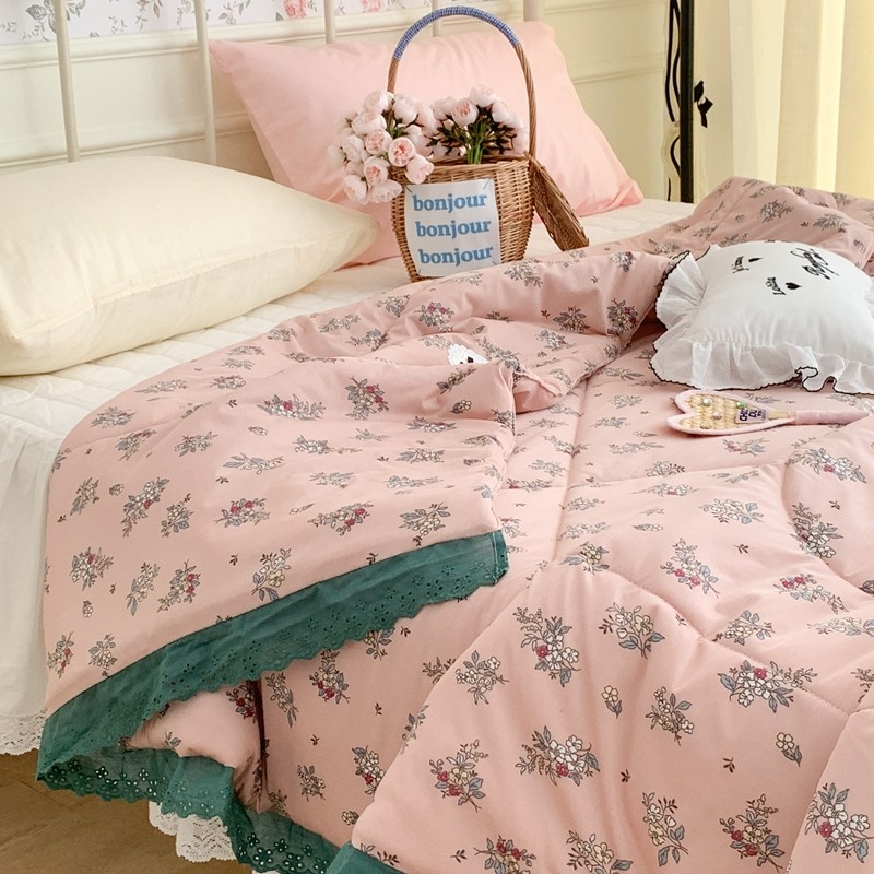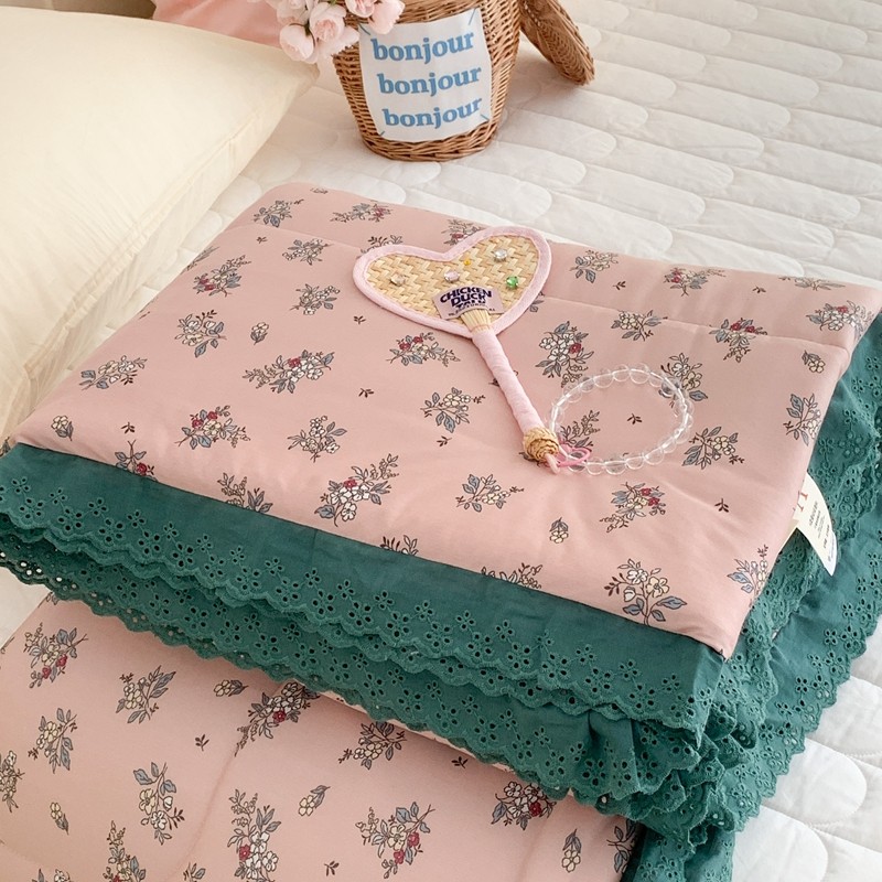昔可 复古蕾丝花边针织夏被 粉嫩小甜心