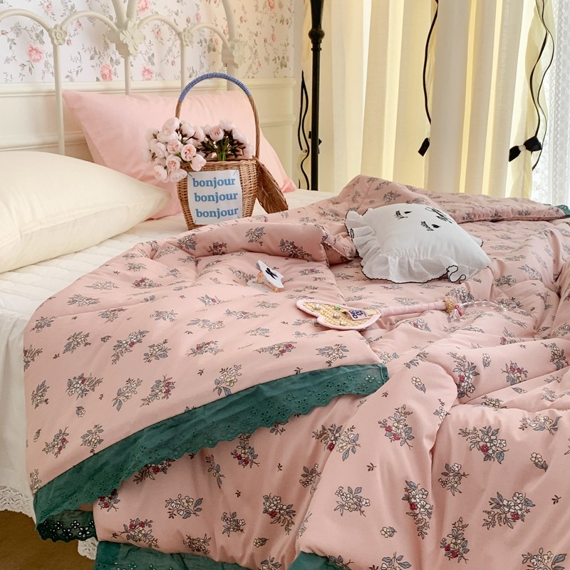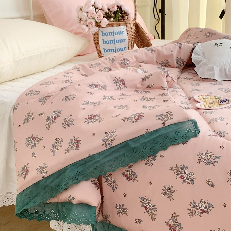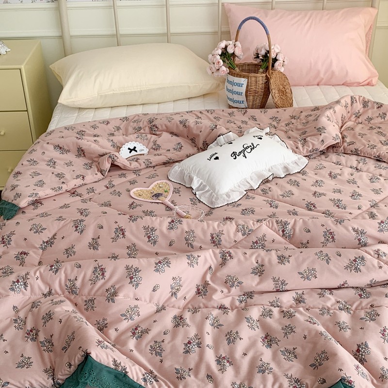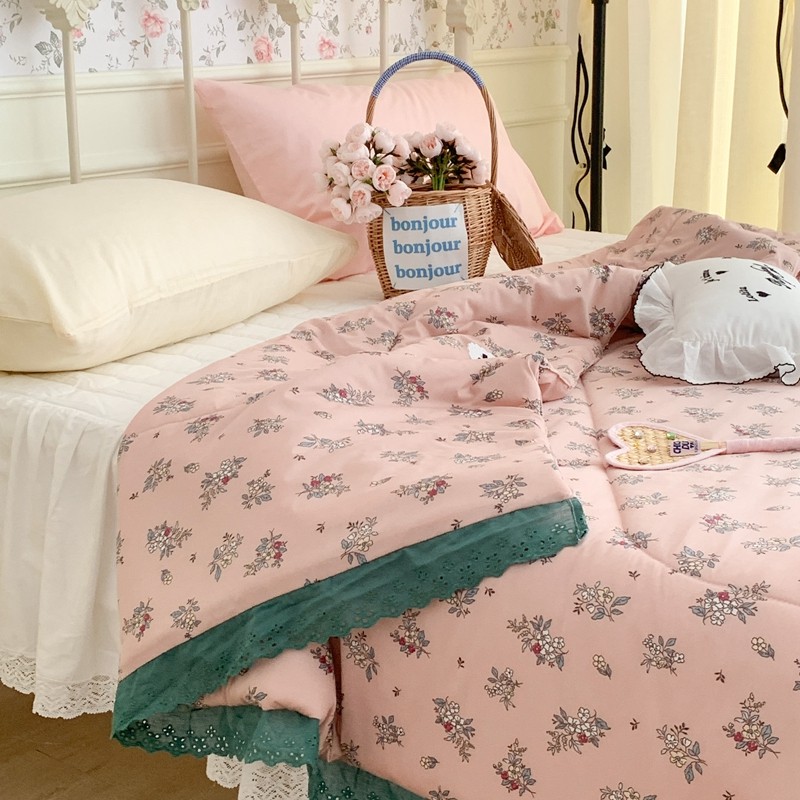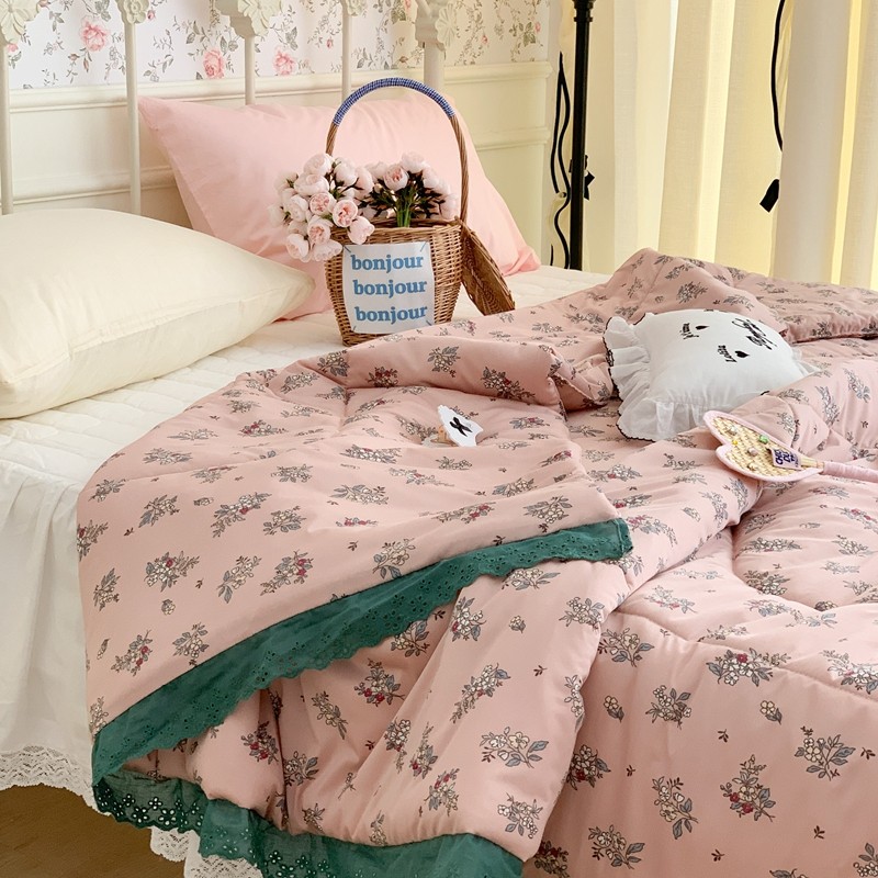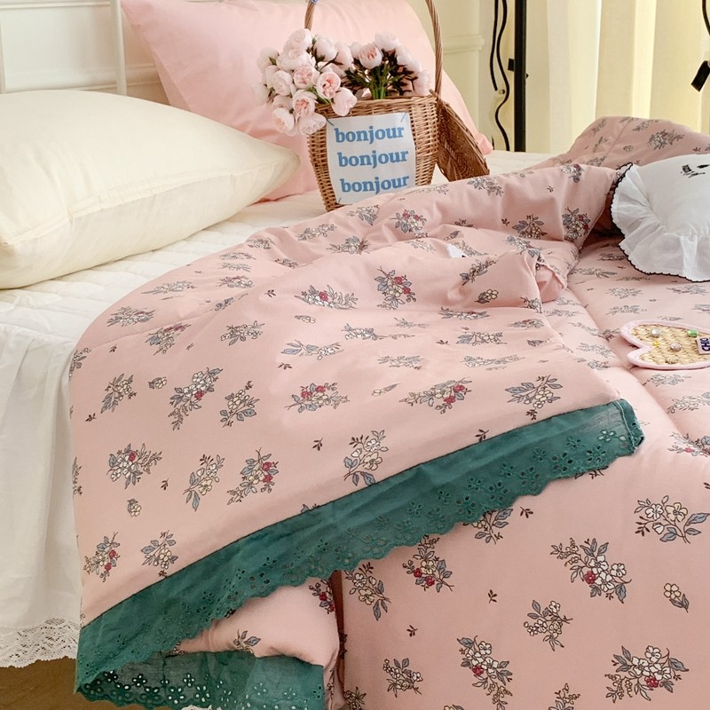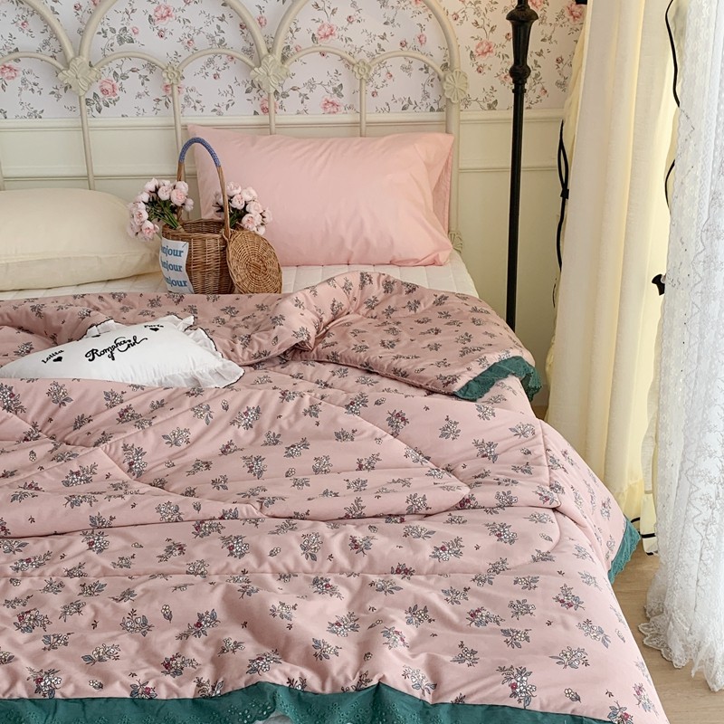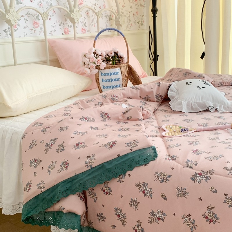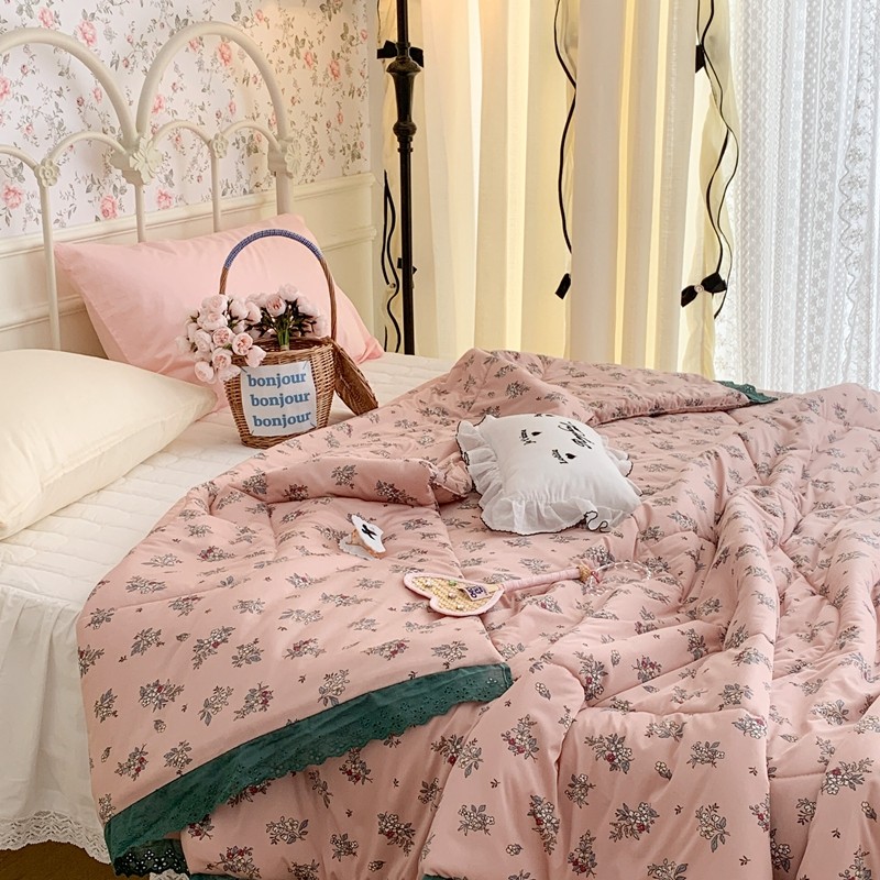 昔可 复古蕾丝花边针织夏被 粉嫩小甜心