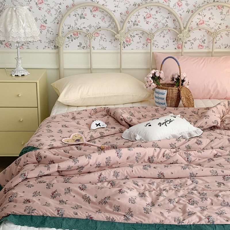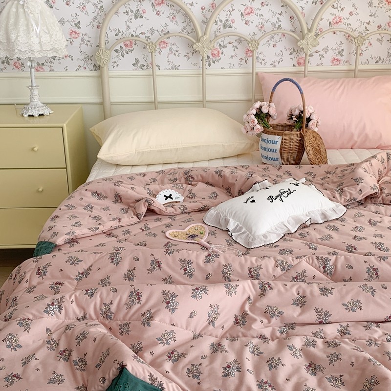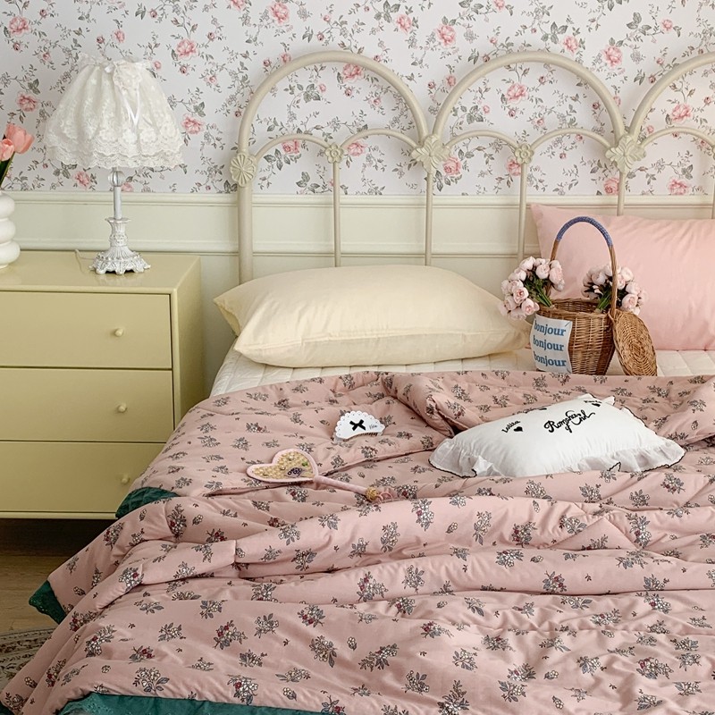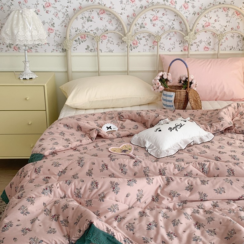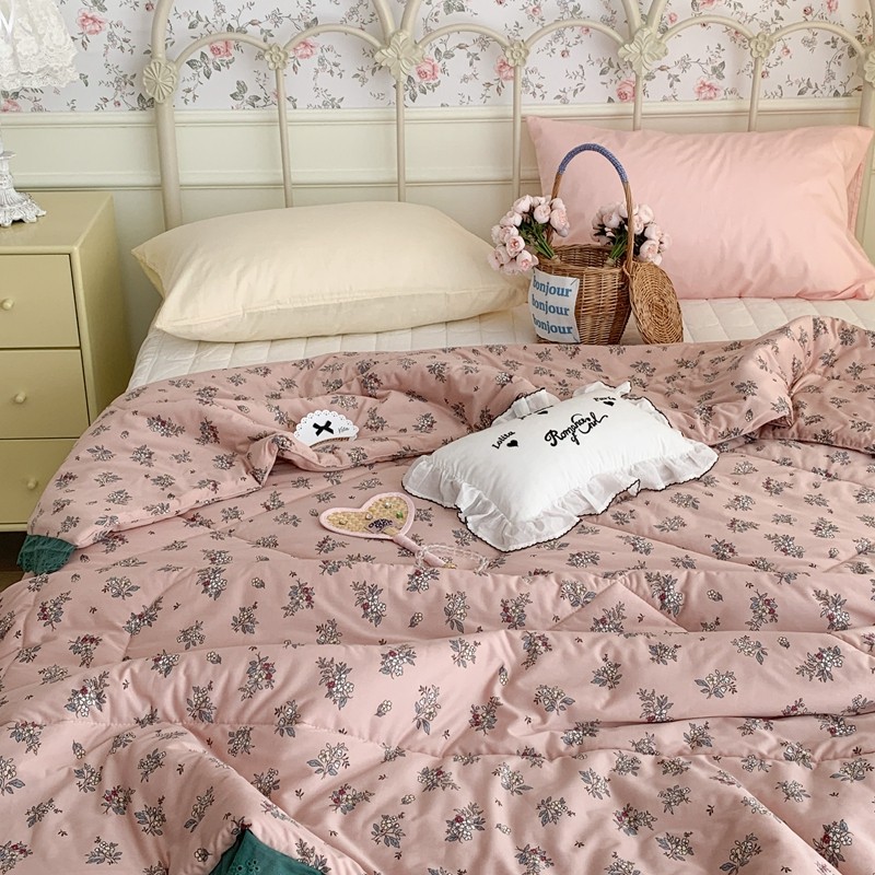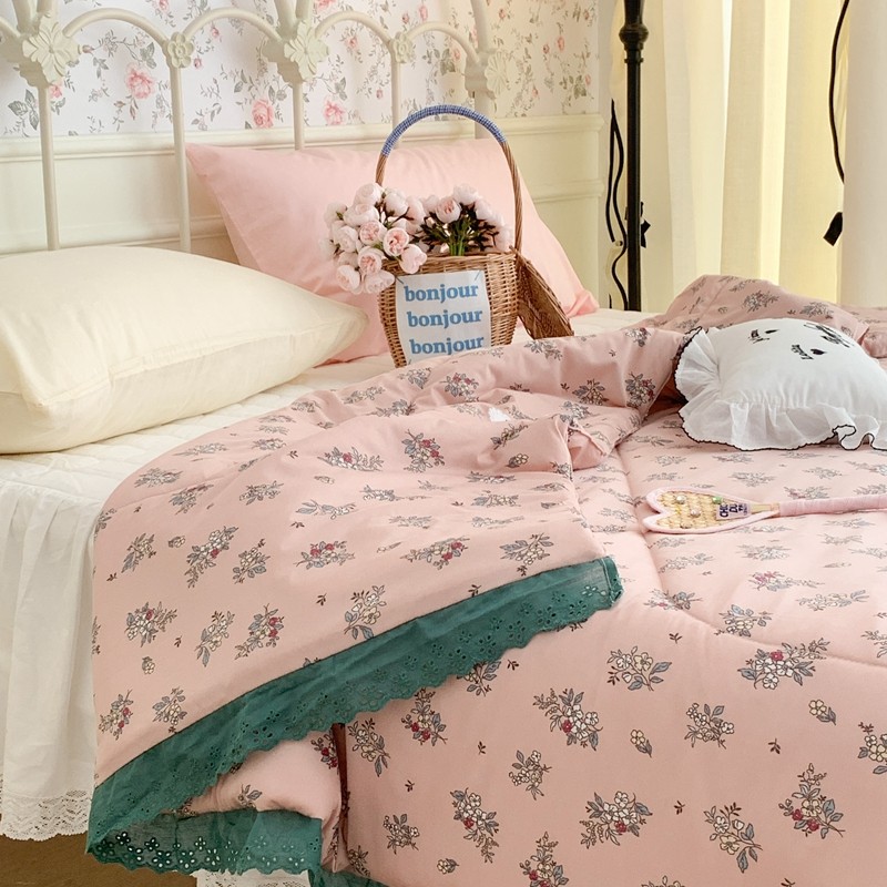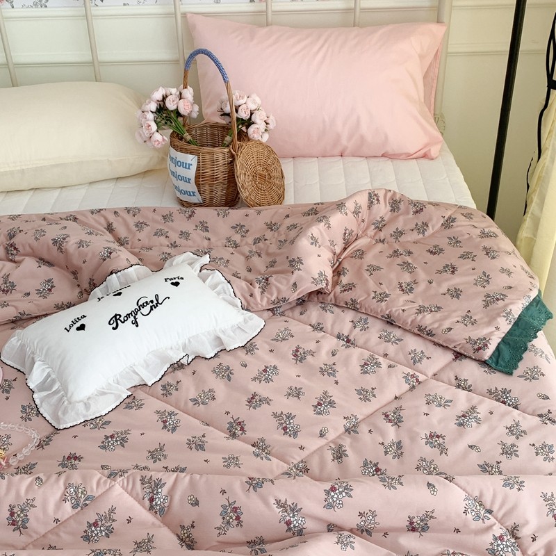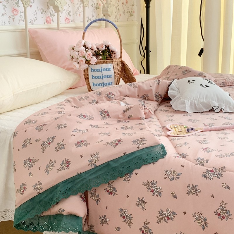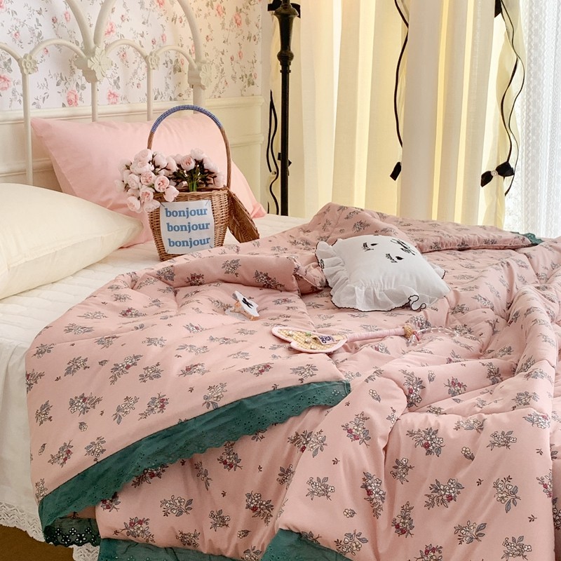 昔可 复古蕾丝花边针织夏被 粉嫩小甜心