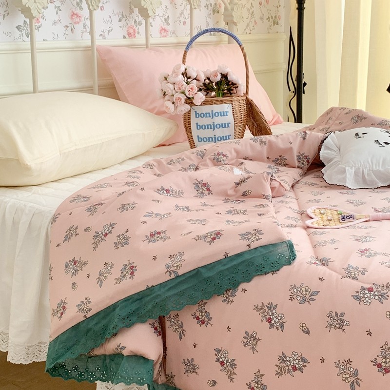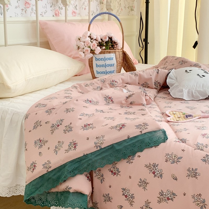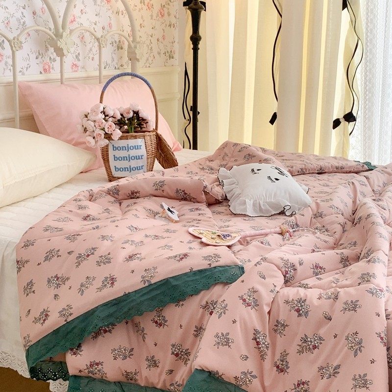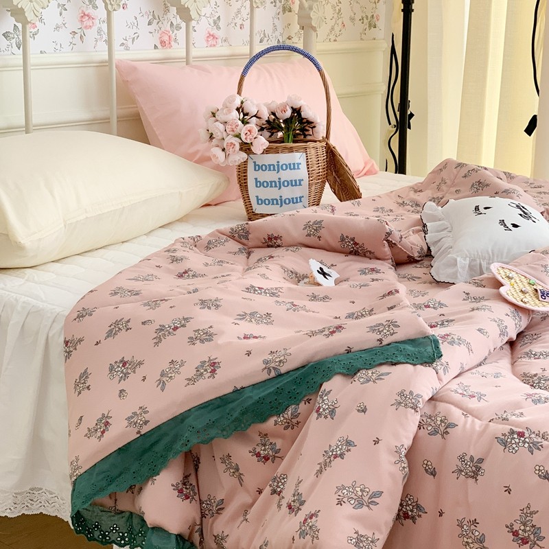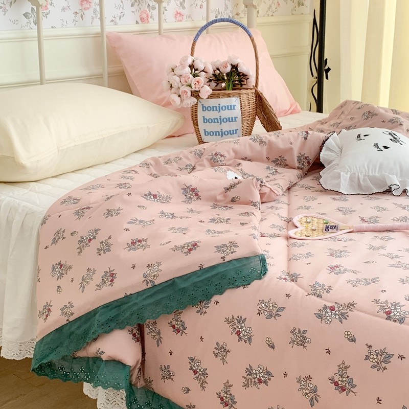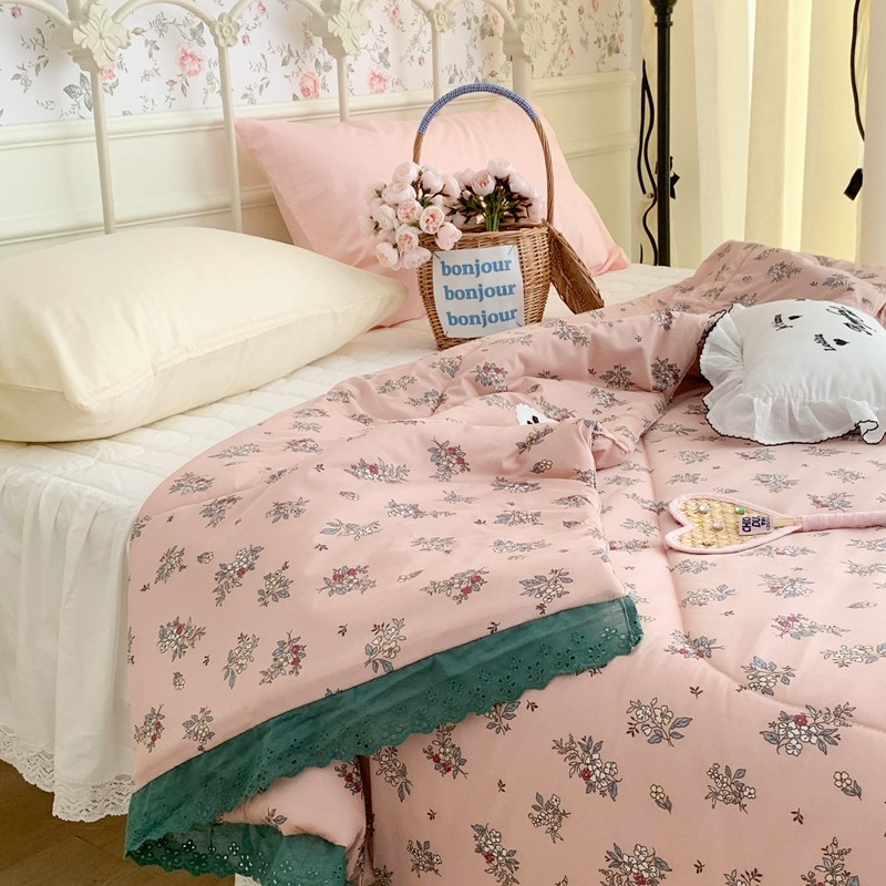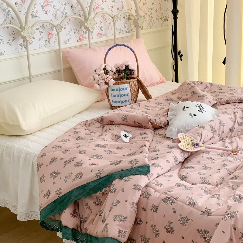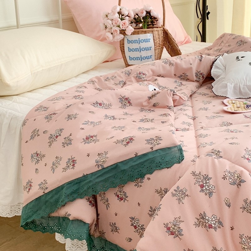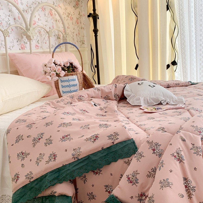 商品名称:昔可 复古蕾丝花边针织夏被 粉嫩小甜心