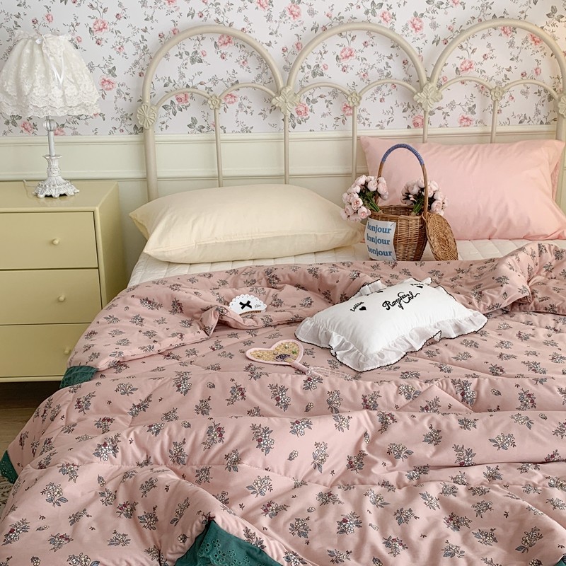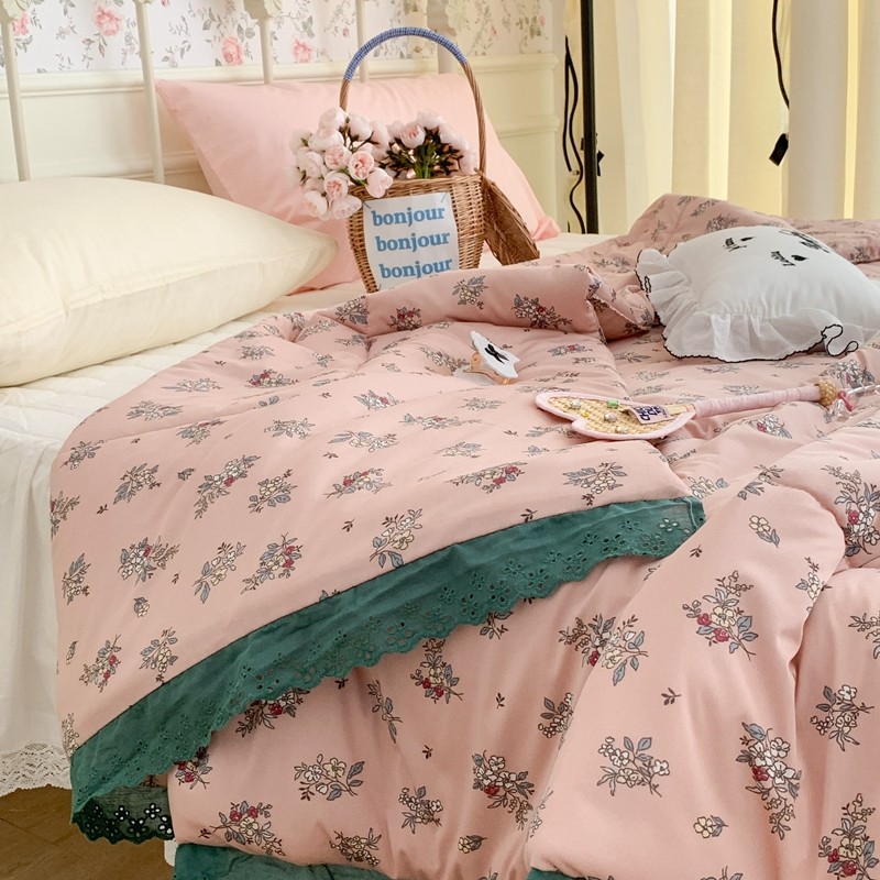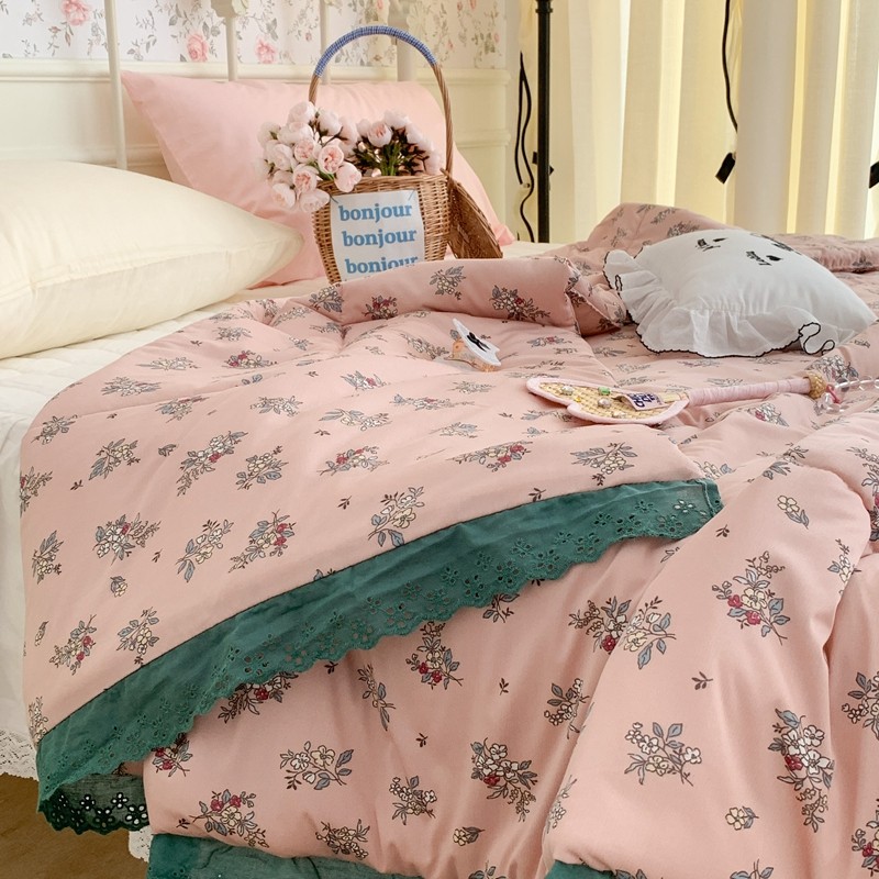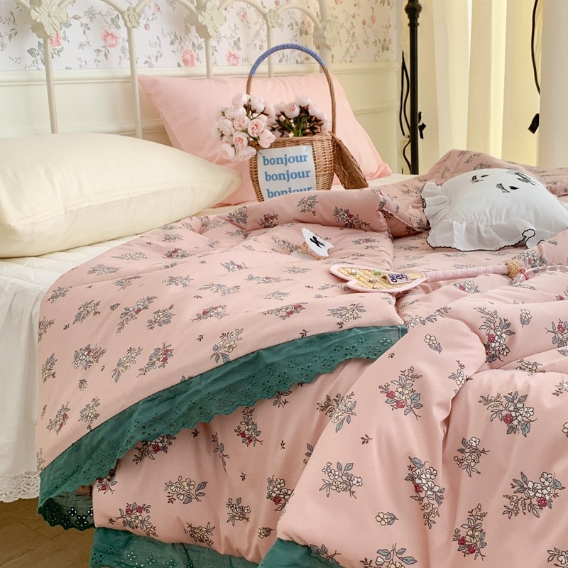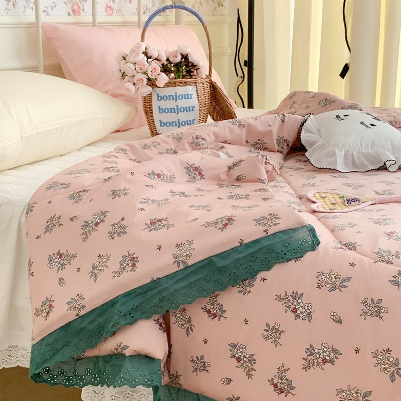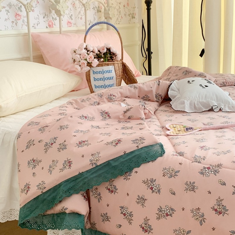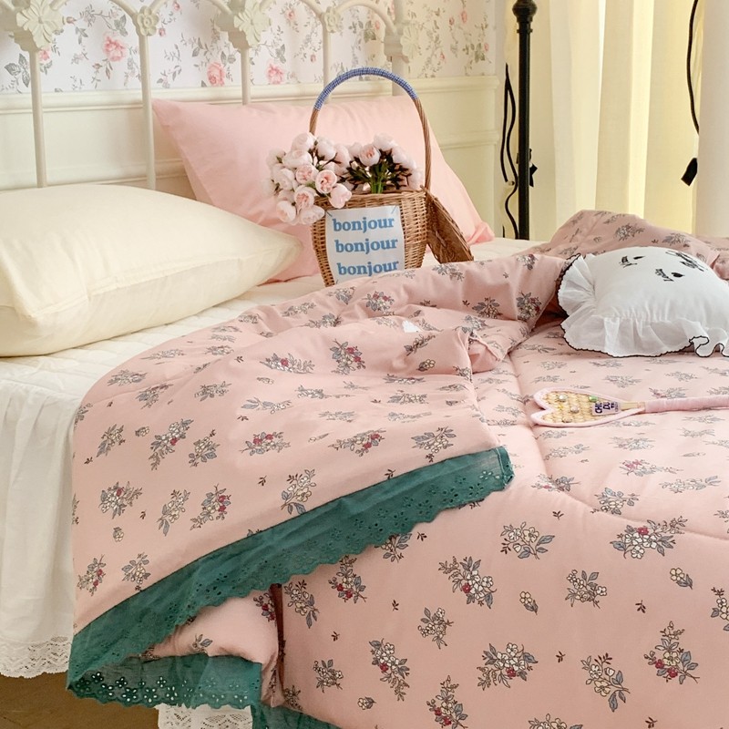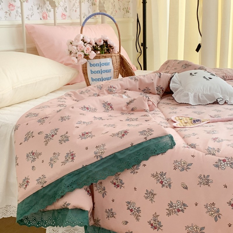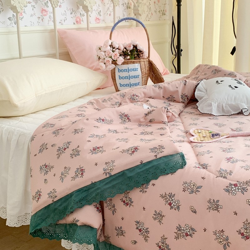商品名称:昔可 复古蕾丝花边针织夏被 粉嫩小甜心