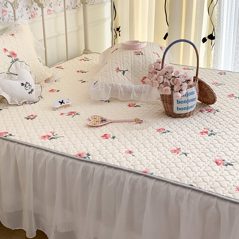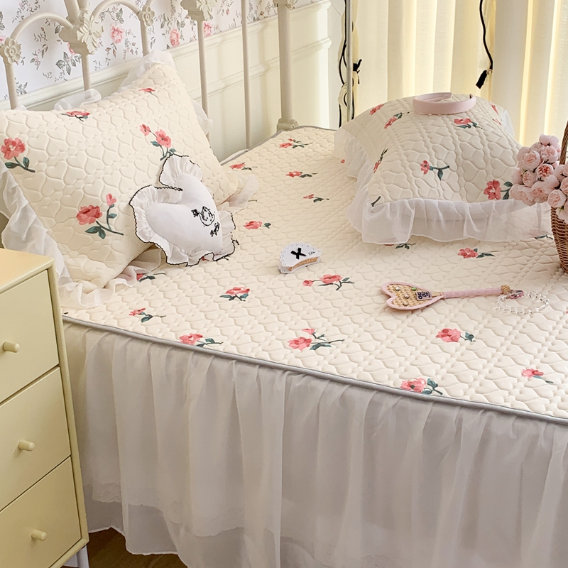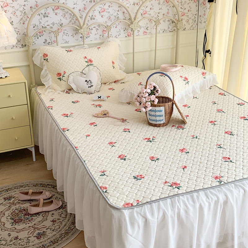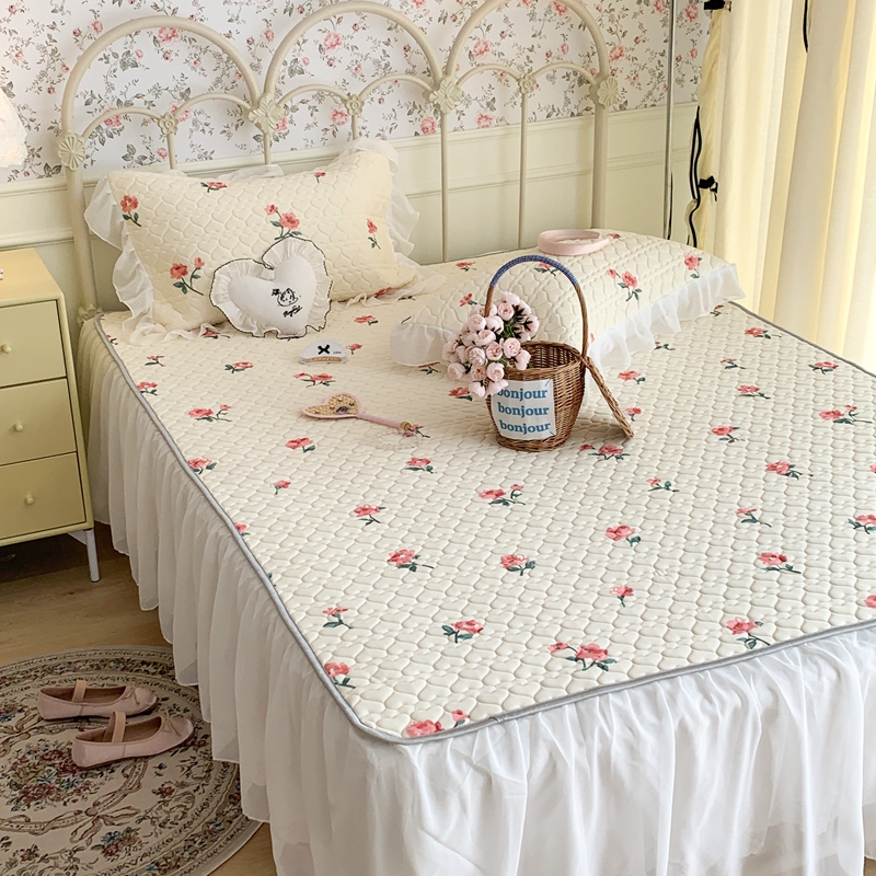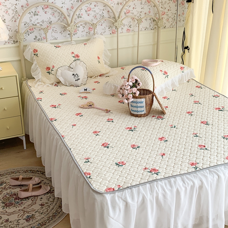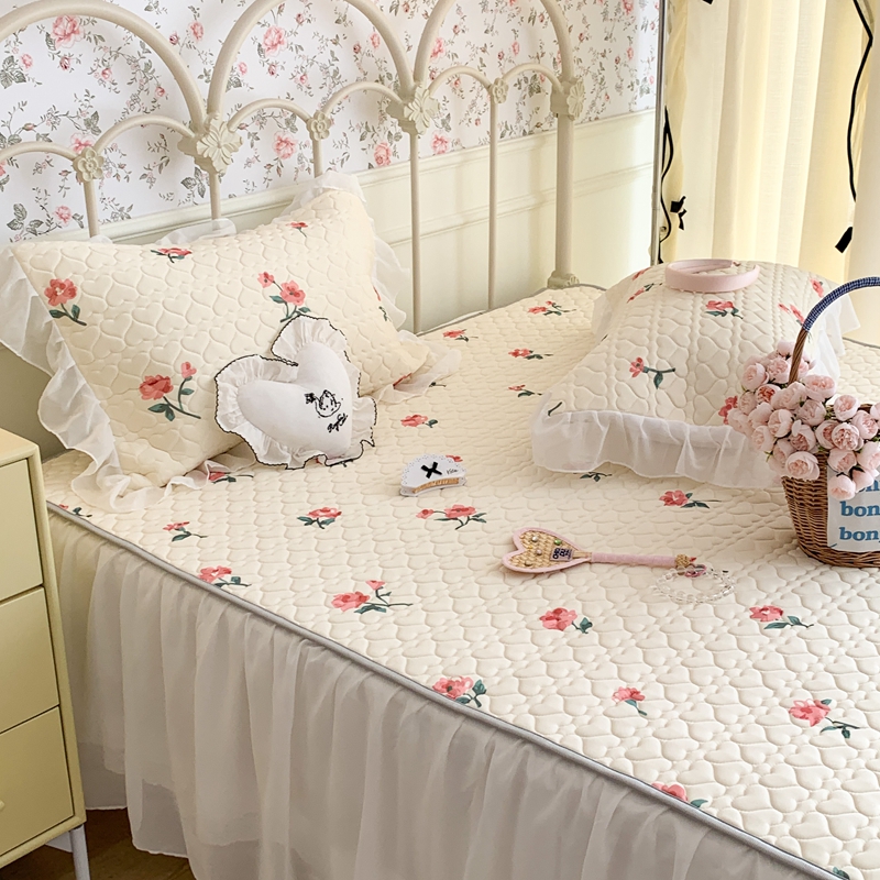 商品名称:昔可 2023新款单层雪纺花边乳胶凉席三件套 薄樱粉枝