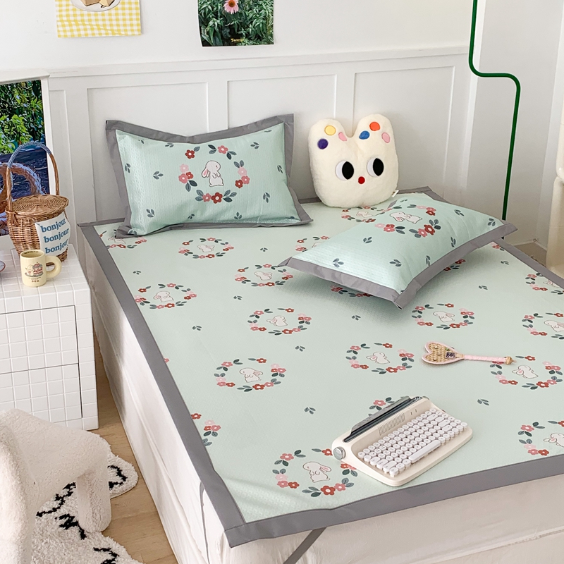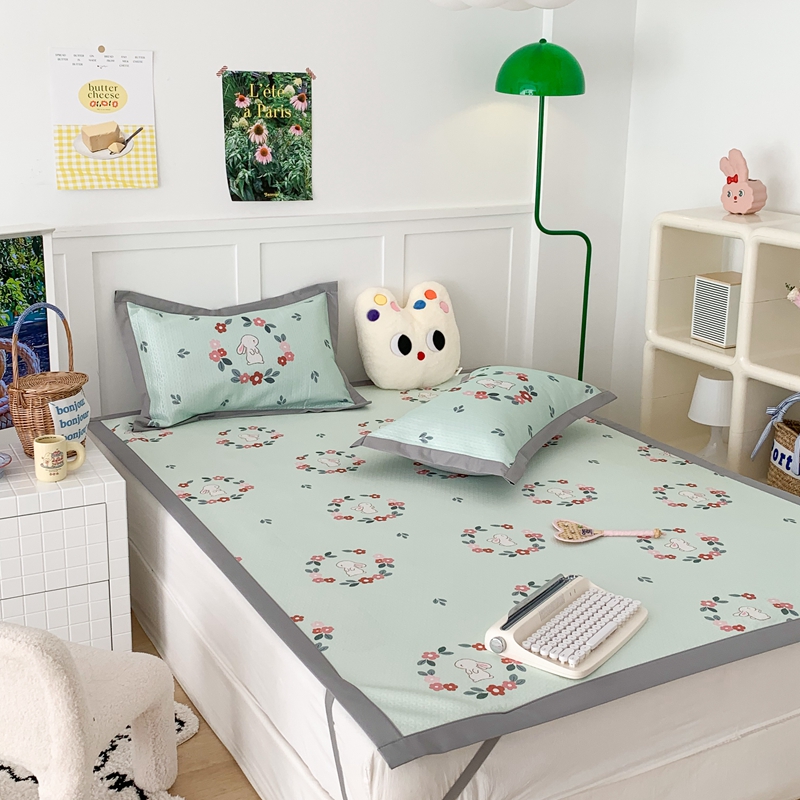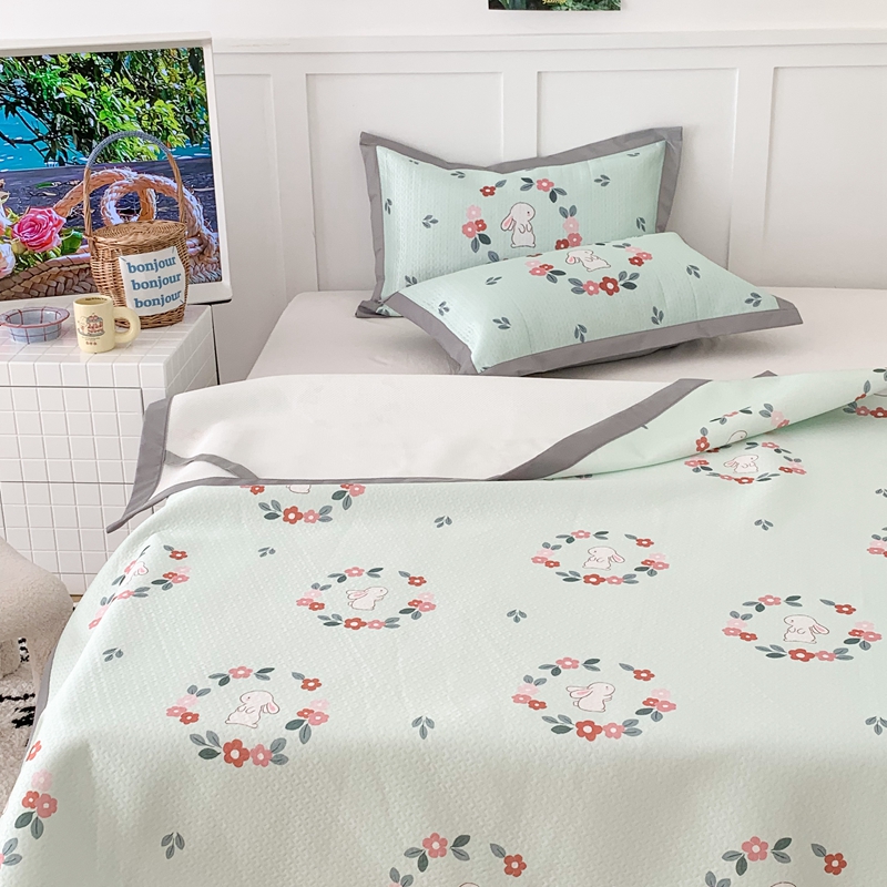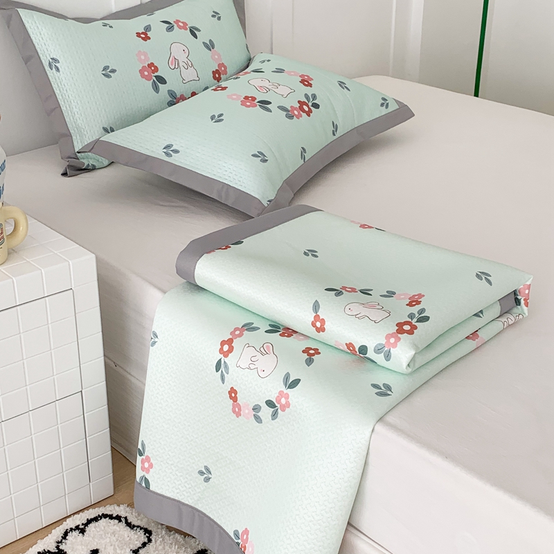 昔可 2023新款凉感海洋丝针织软席三件套 绿色花环兔