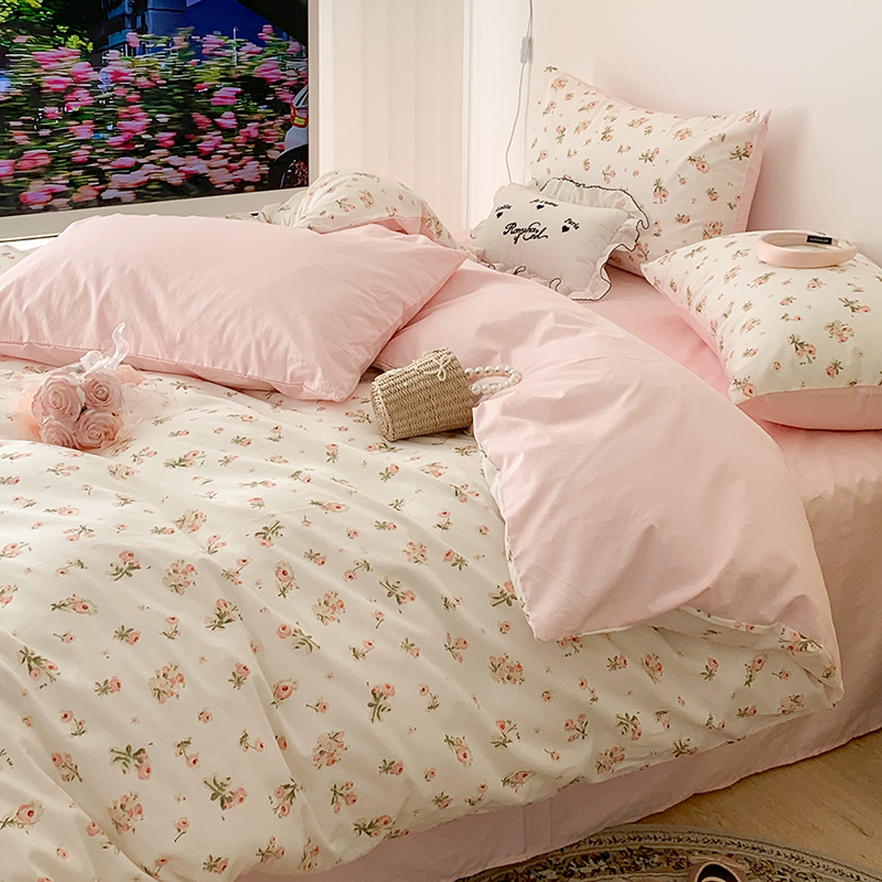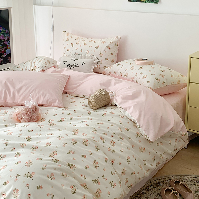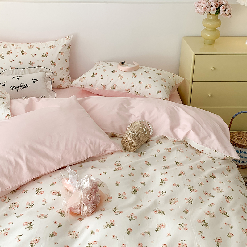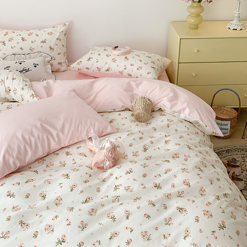 商品名称:昔可家纺 2023新款全棉怦然心动小花系列四件套 粉黛落樱