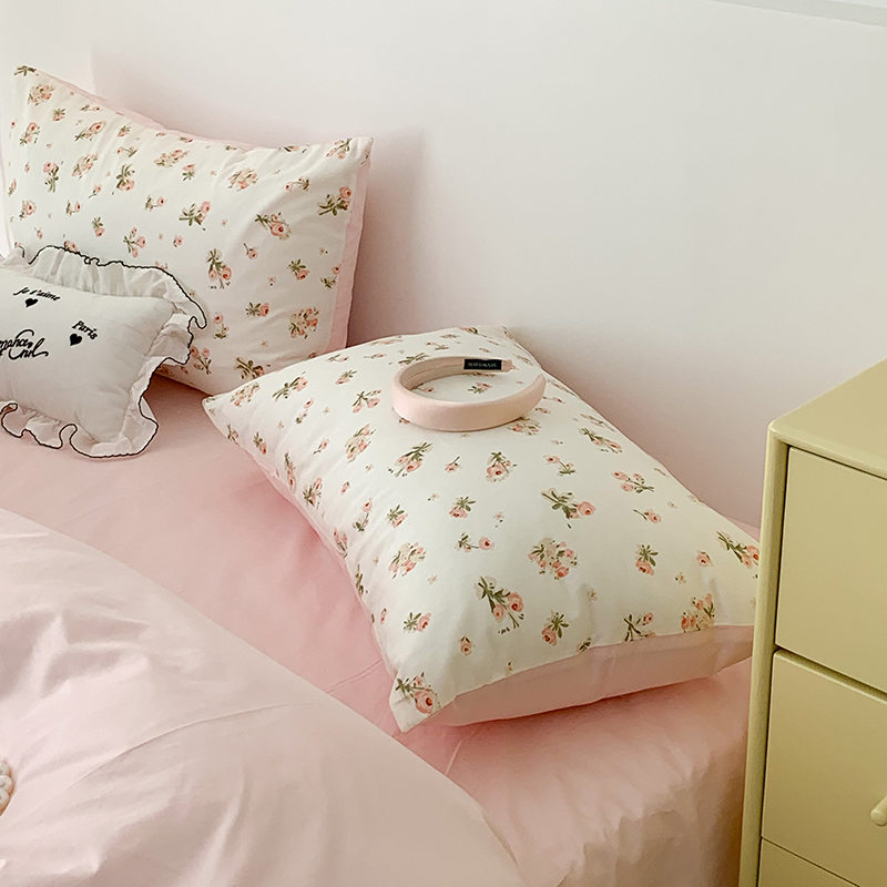 昔可家纺 2023新款全棉怦然心动小花系列四件套 粉黛落樱