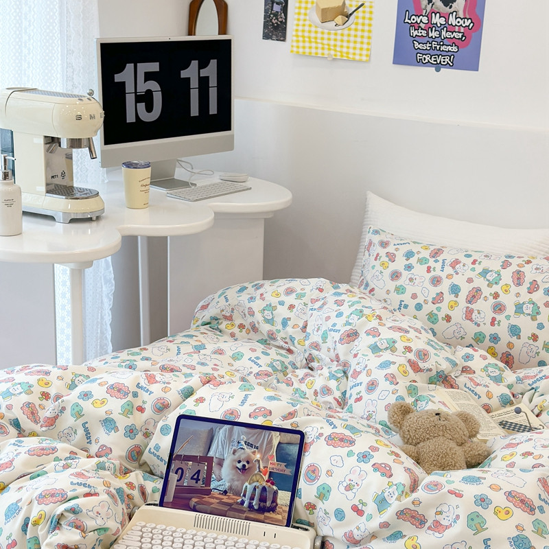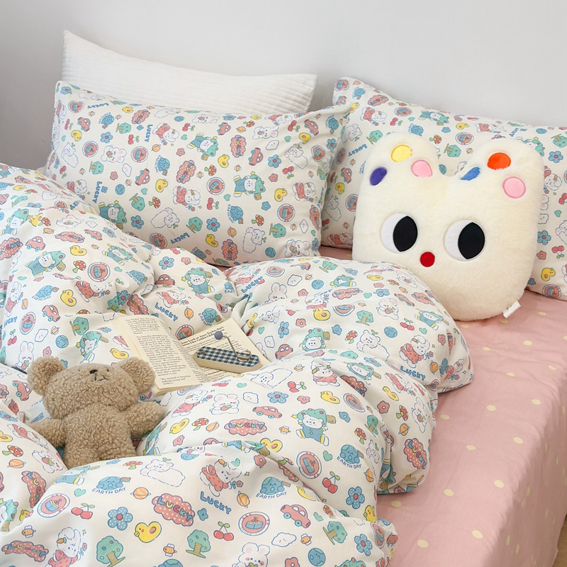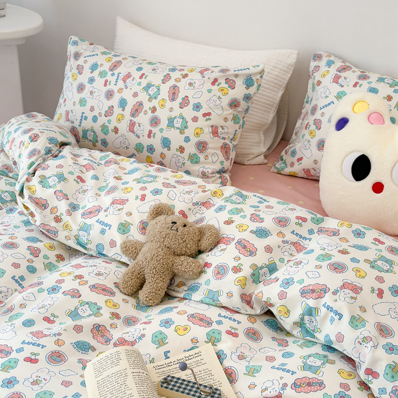(总)昔可 2023新款学生季卡通普通款四件套,彩色气球熊,彩条恐龙,憨憨熊,花蜜小兔,蘑菇兔,圈圈草莓,蔬菜小兔,郁金香小萌狗
