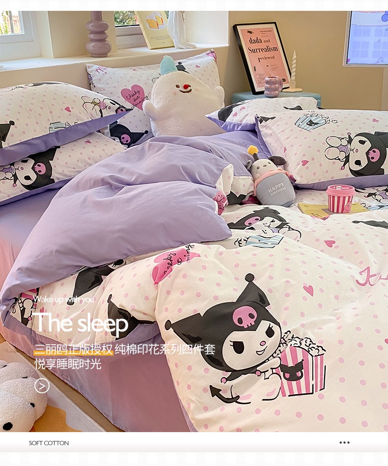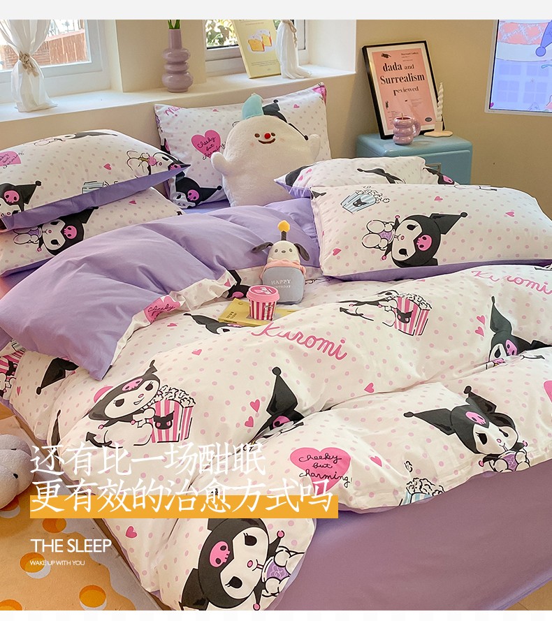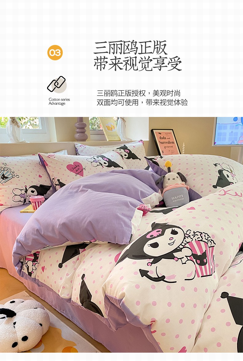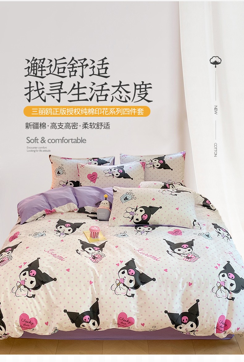 当前位置: 91家纺网 > 商品网购 > 床品套件 > 四件套 > 全棉普通四件套 > 桃子 2023新款三丽鸥正版授权纯棉印花系列四件套 棉三丽鸥-甜筒库洛米