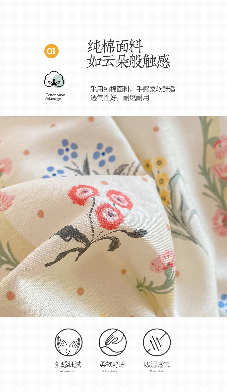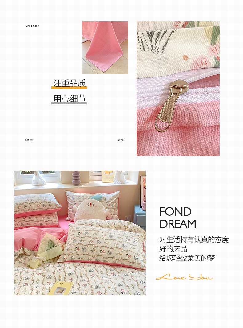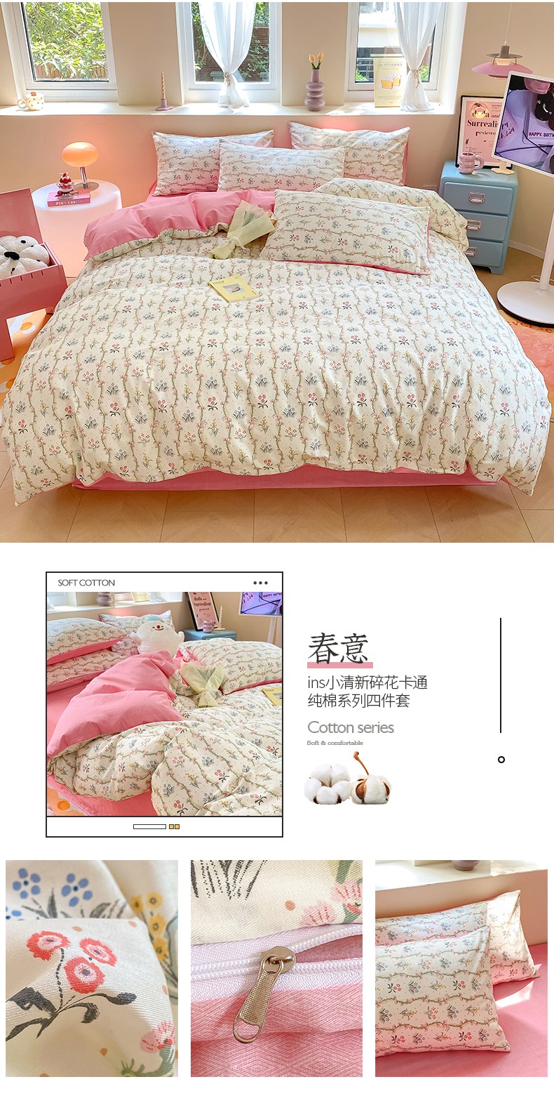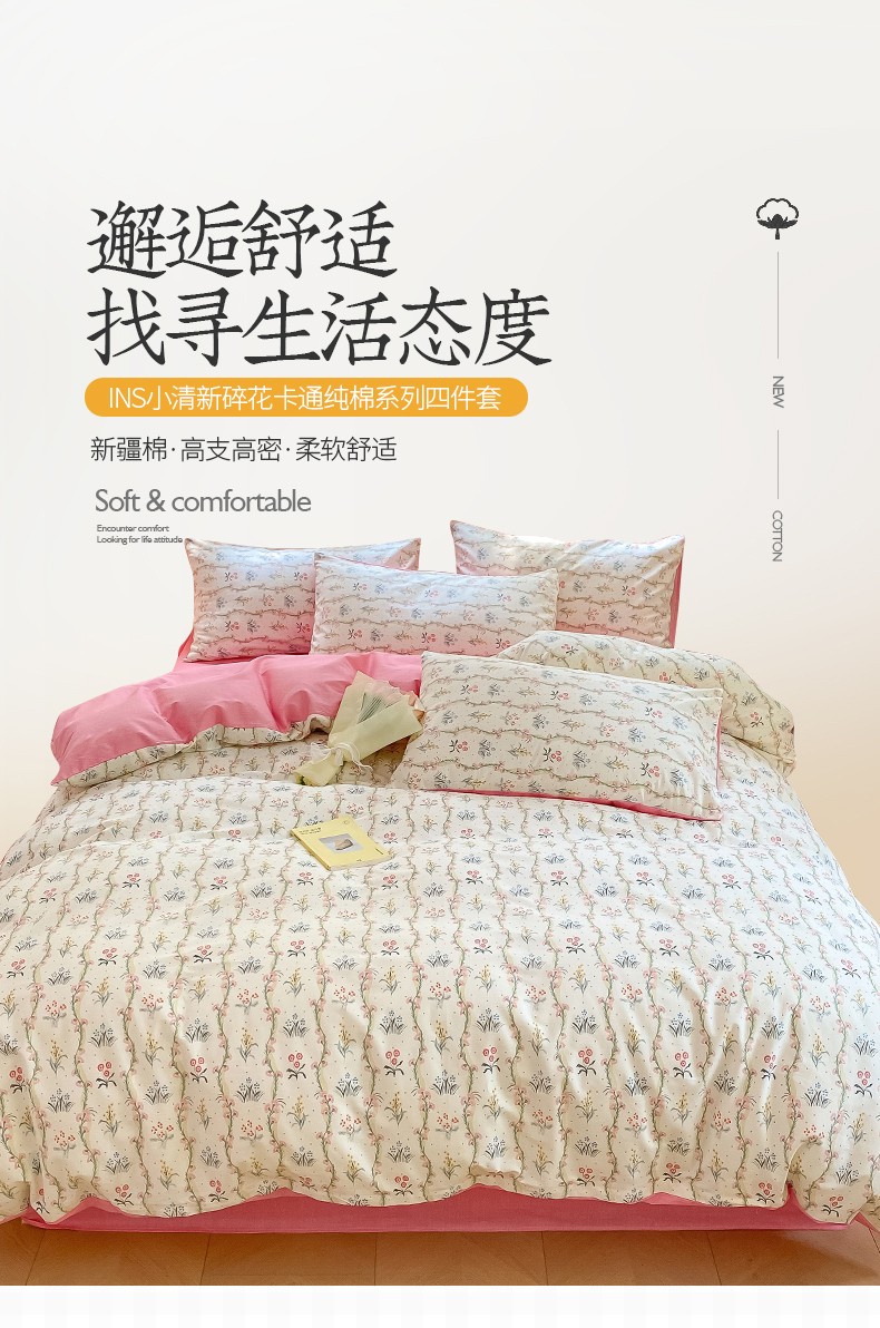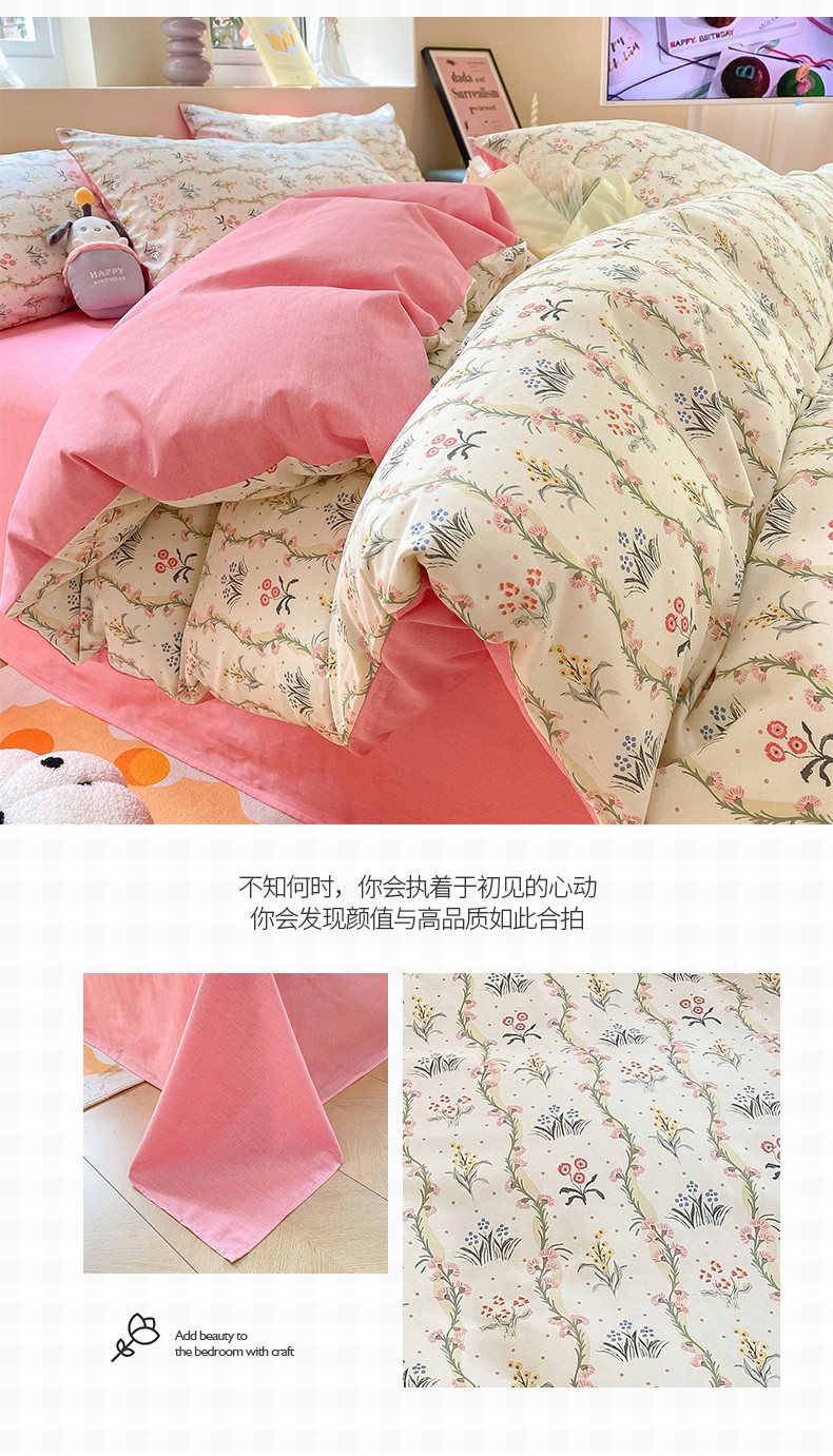 商品名称:桃子 2023新款ins小清新碎花卡通纯棉系列四件套 棉-春意