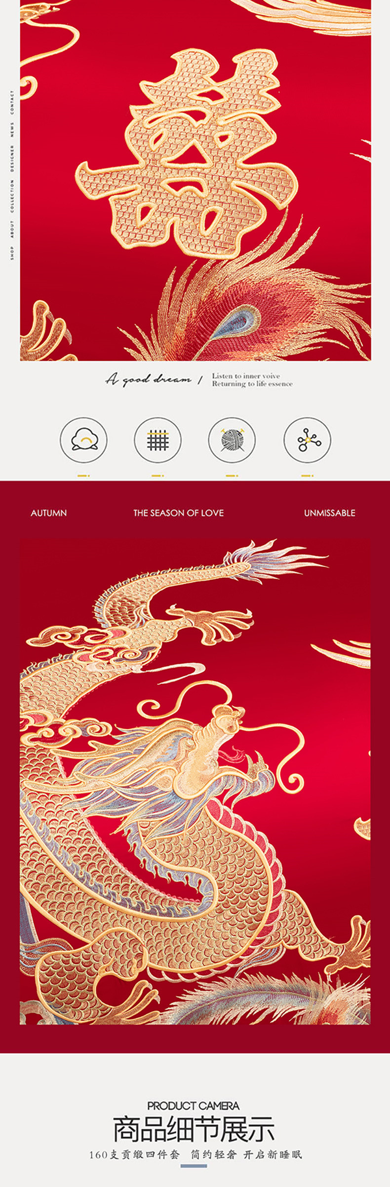 商品名称:柏拉图 2023新款100s贡缎长绒棉婚庆四件套多件套新龙飞凤舞