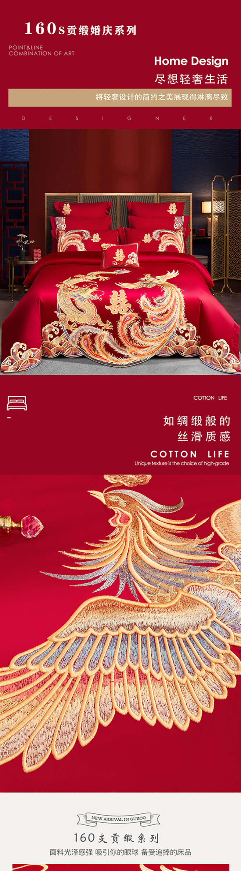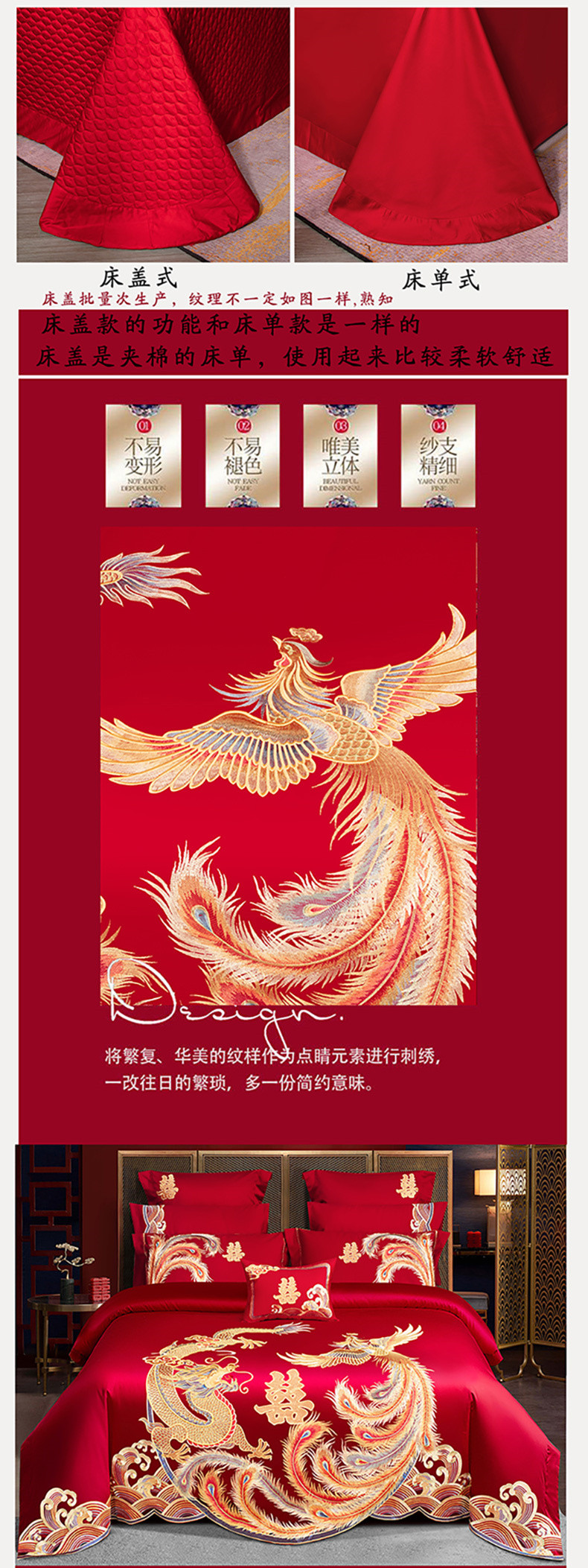 柏拉图 2023新款100s贡缎长绒棉婚庆四件套多件套新龙飞凤舞,床单四件套,床盖四件套,床单六件套,床盖六件套,十件套