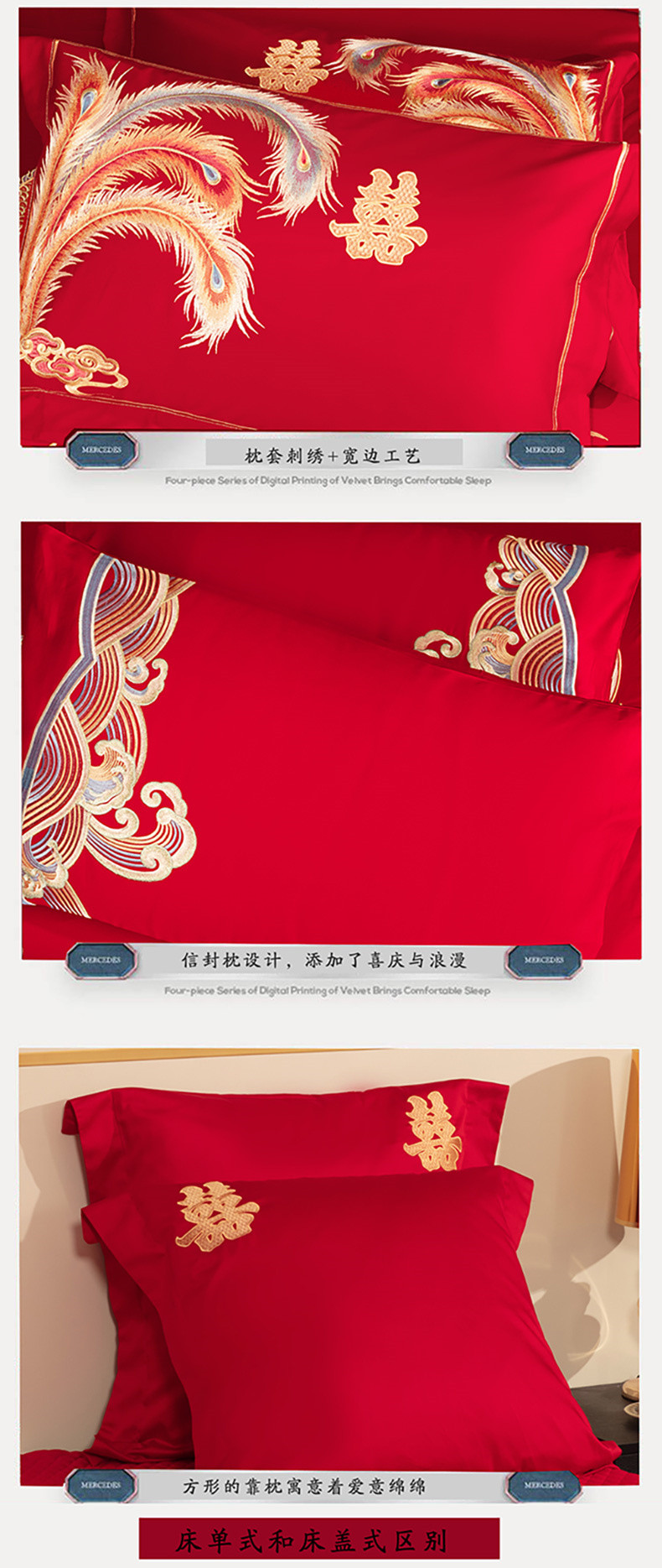2023新款100s贡缎长绒棉婚庆四件套多件套-国色天香红,床单四件套,床盖四件套,床单六件套,床盖六件套,十件套
