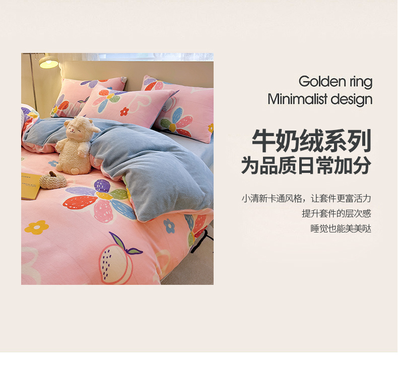 商品名称:芃成 2023新款双面牛奶绒印花四件套 初恋小事
