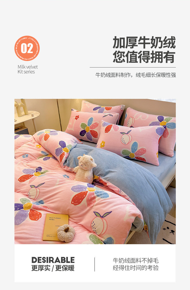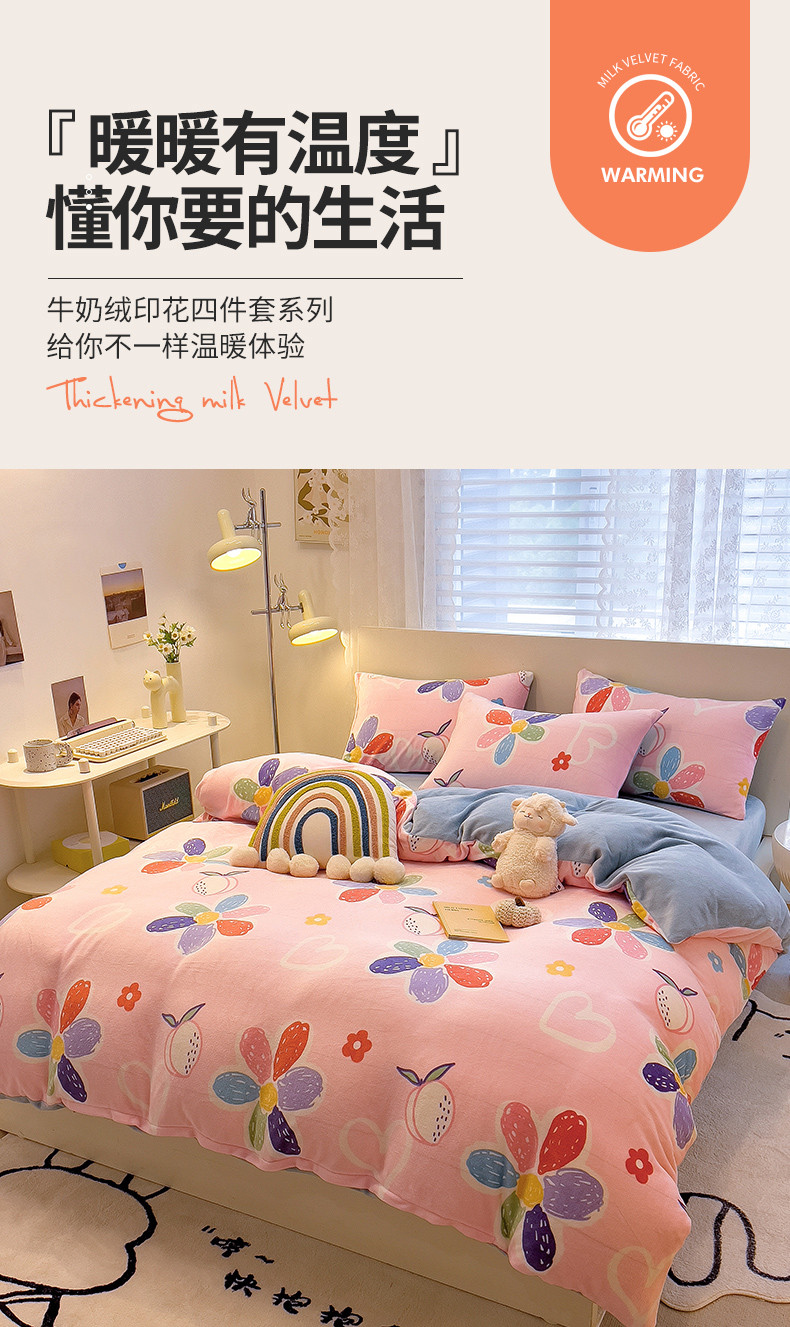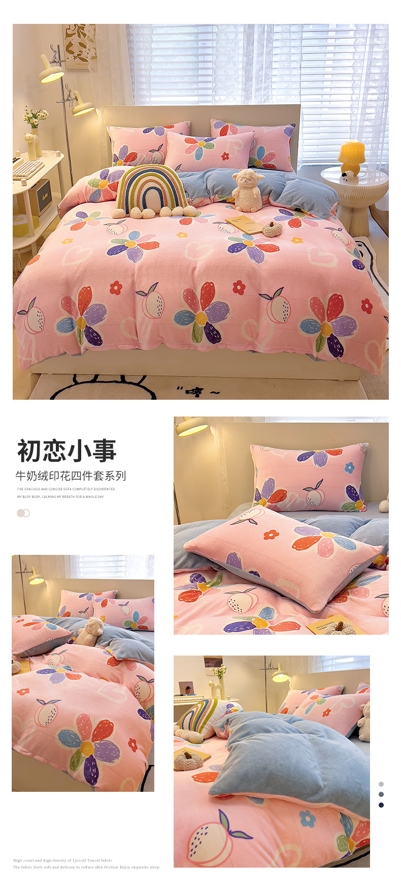 芃成 2023新款双面牛奶绒印花四件套 初恋小事