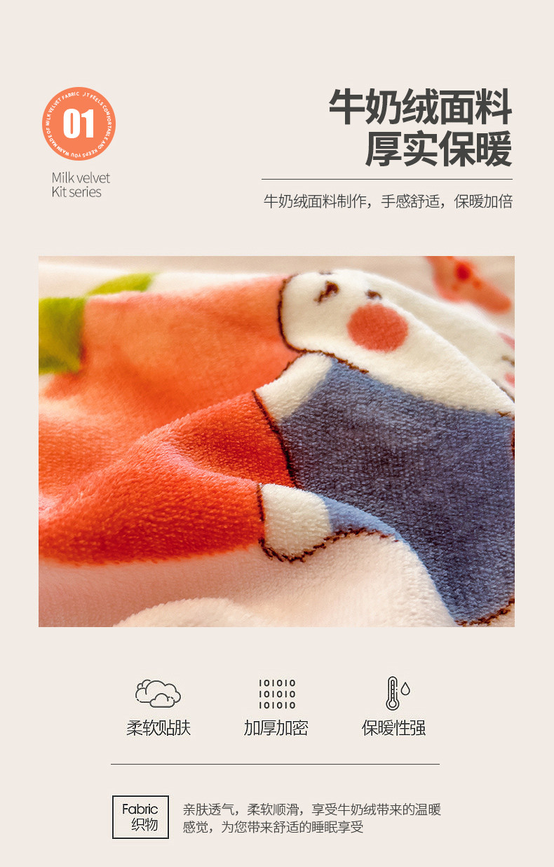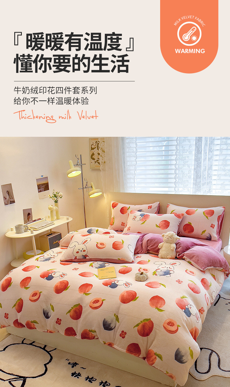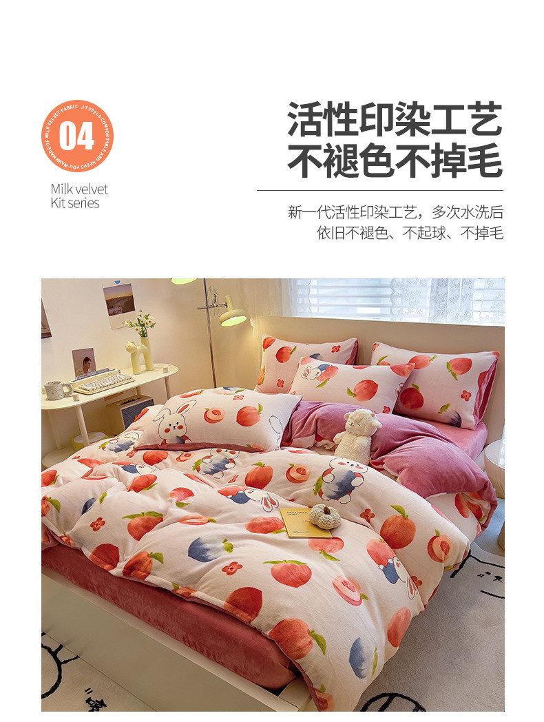 商品名称:芃成 2023新款双面牛奶绒印花四件套 萌兔