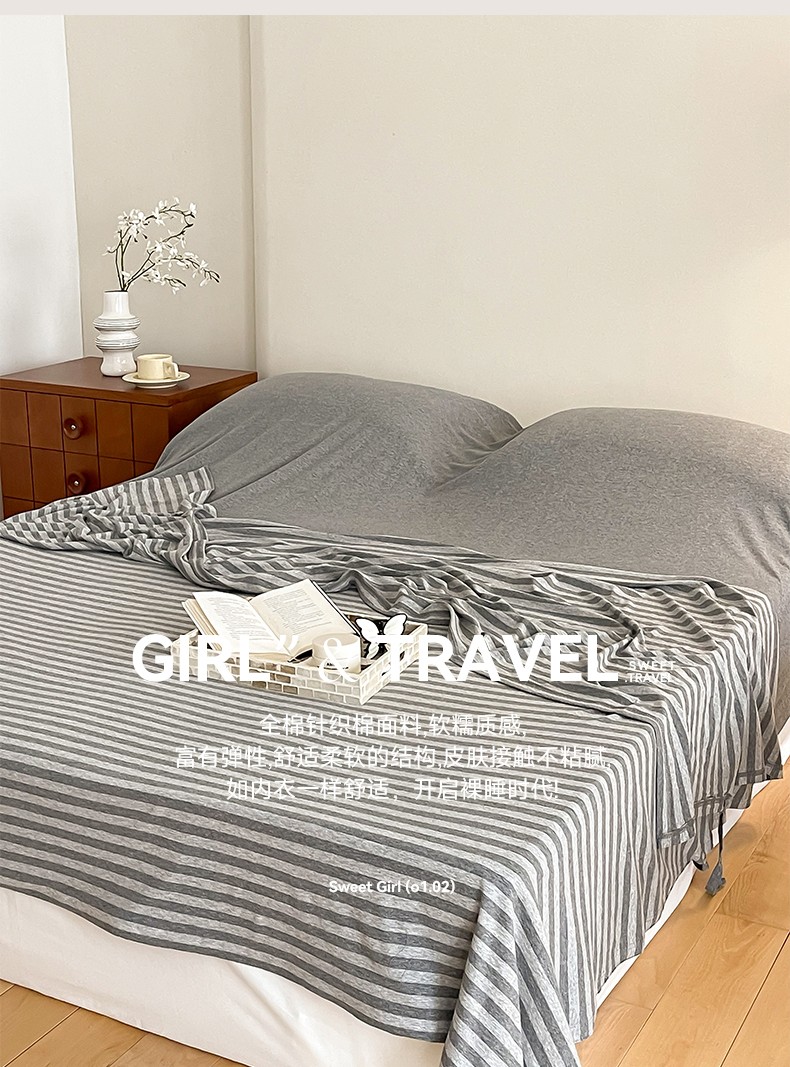 (总)华超针织 2025新款亲肤舒适全棉纯棉针织五件套四件套,奶糖+樱桃,杏粉+花田,杏灰+玫瑰