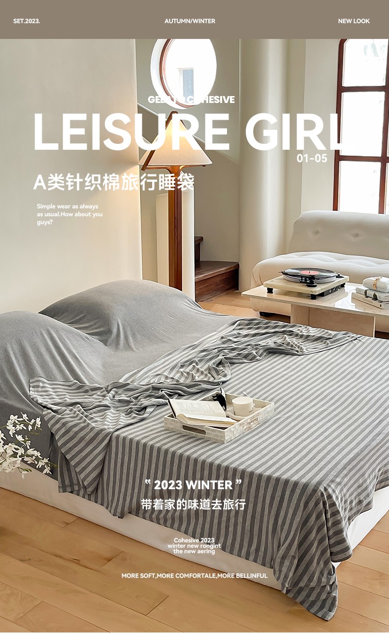 商品名称:华超针织 2023新款A类针织棉旅行睡袋 雅灰中条