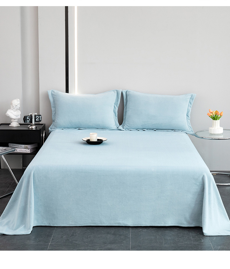 新款230克牛奶绒纯色床单定制定做尺寸 水蓝