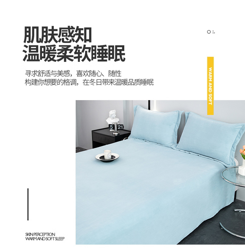 商品名称:新款230克牛奶绒纯色床单定制定做尺寸 水蓝