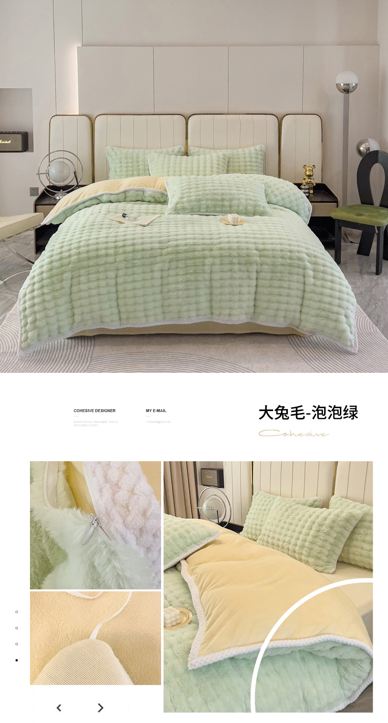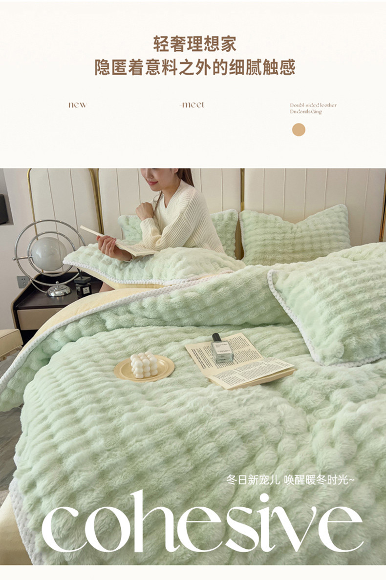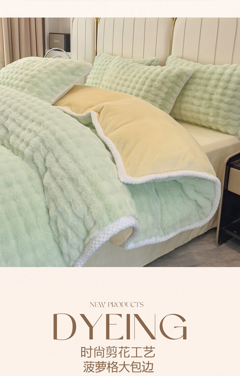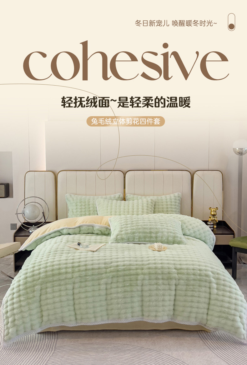 菲儿家纺 2023新款大兔毛绒立体剪花四件套 大兔毛-泡泡绿