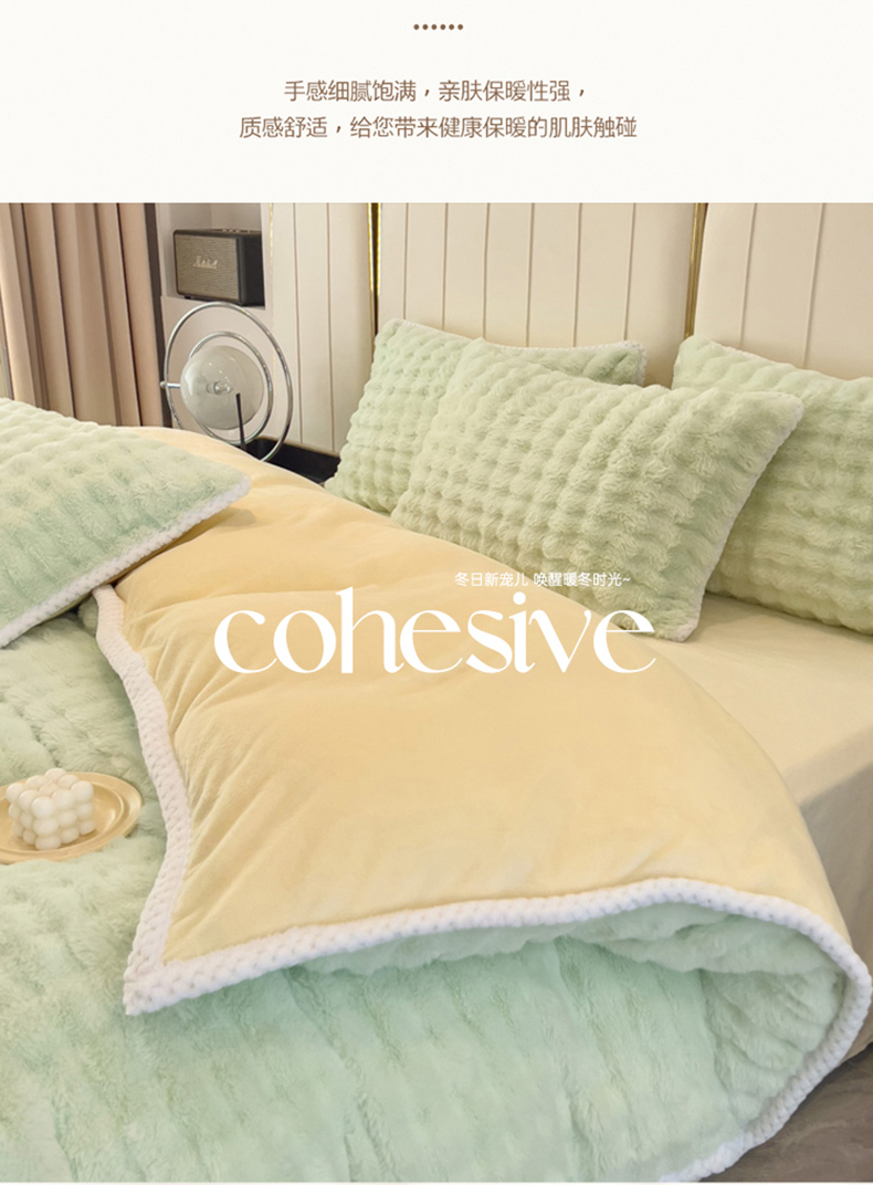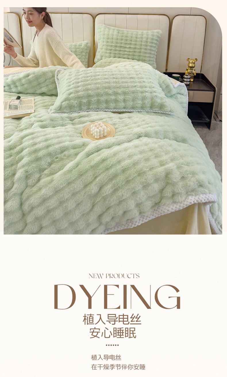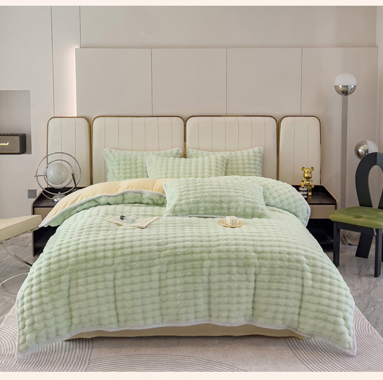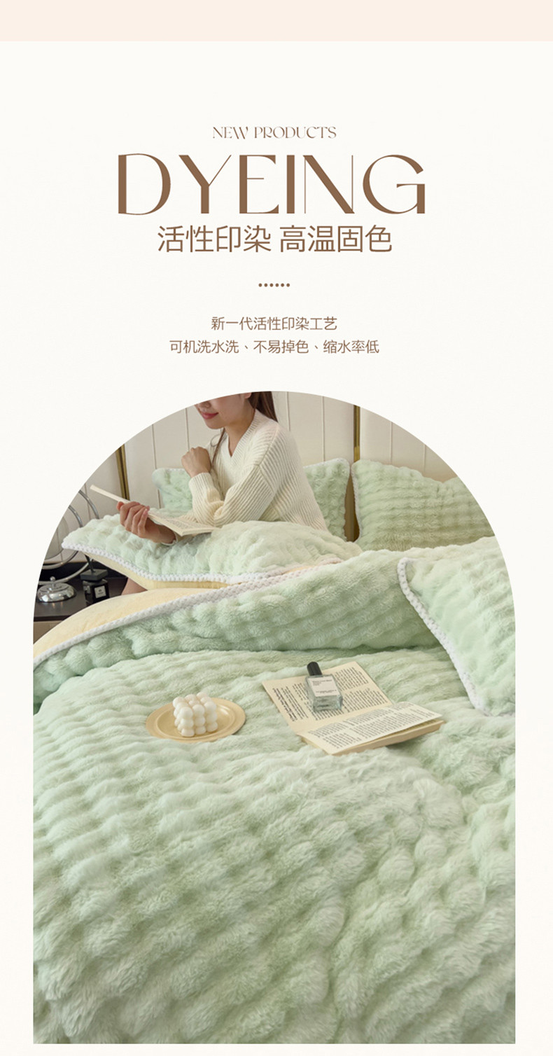 菲儿家纺 2023新款大兔毛绒立体剪花四件套 大兔毛-泡泡绿