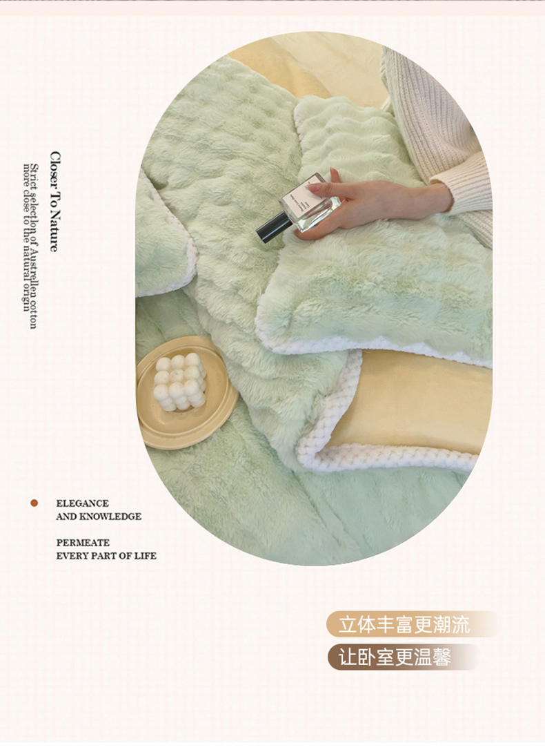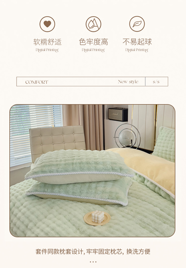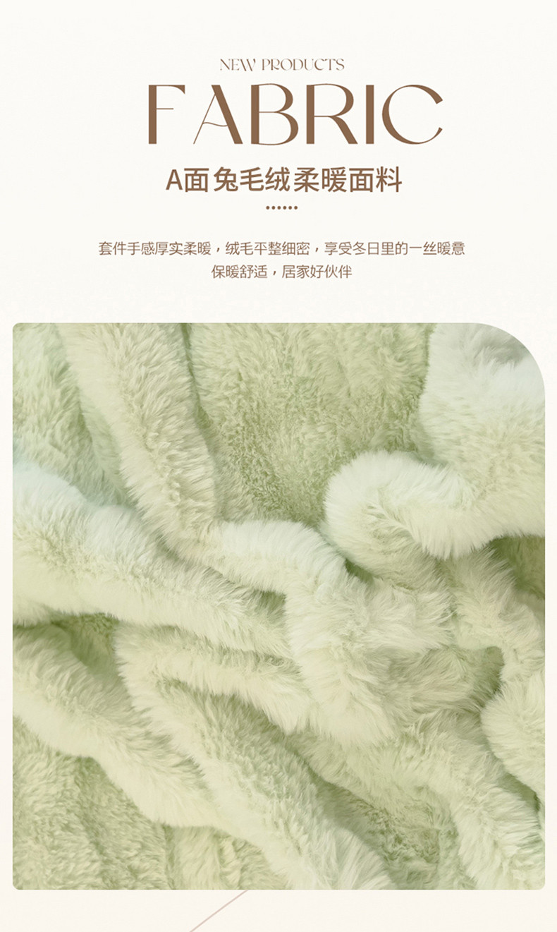商品名称:菲儿家纺 2023新款大兔毛绒立体剪花四件套 大兔毛-泡泡绿