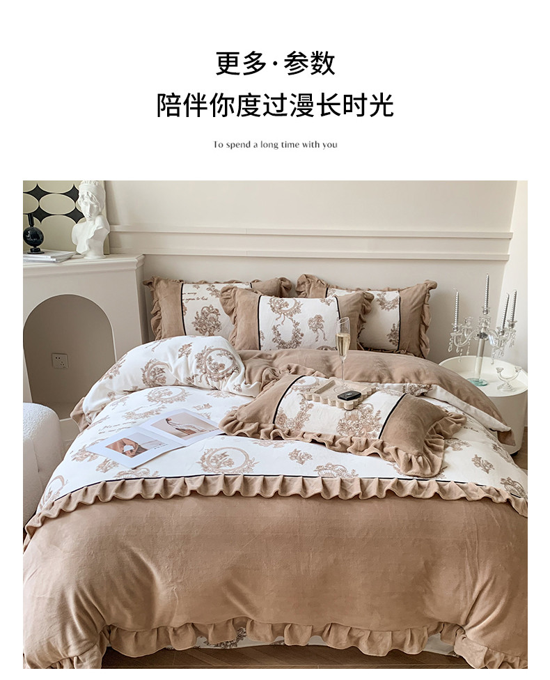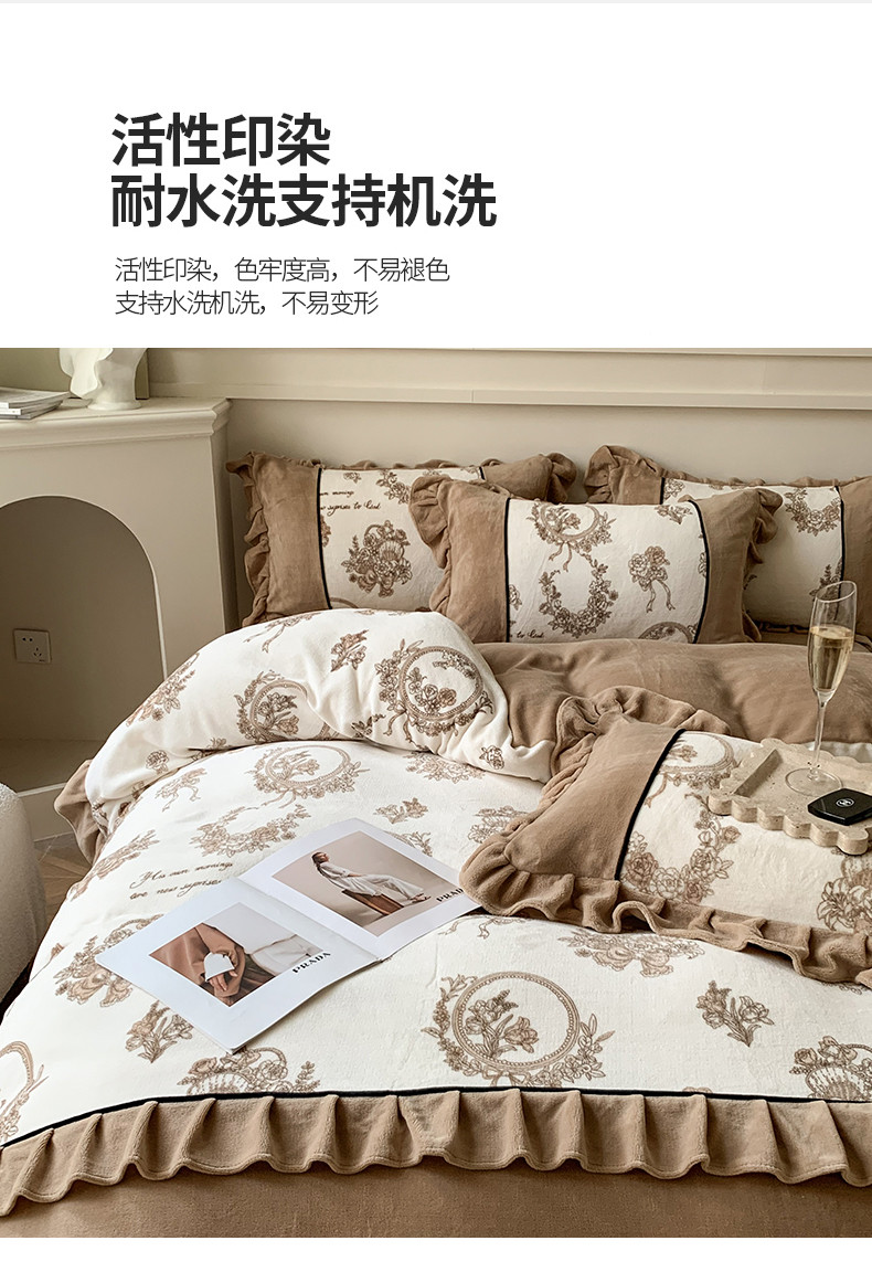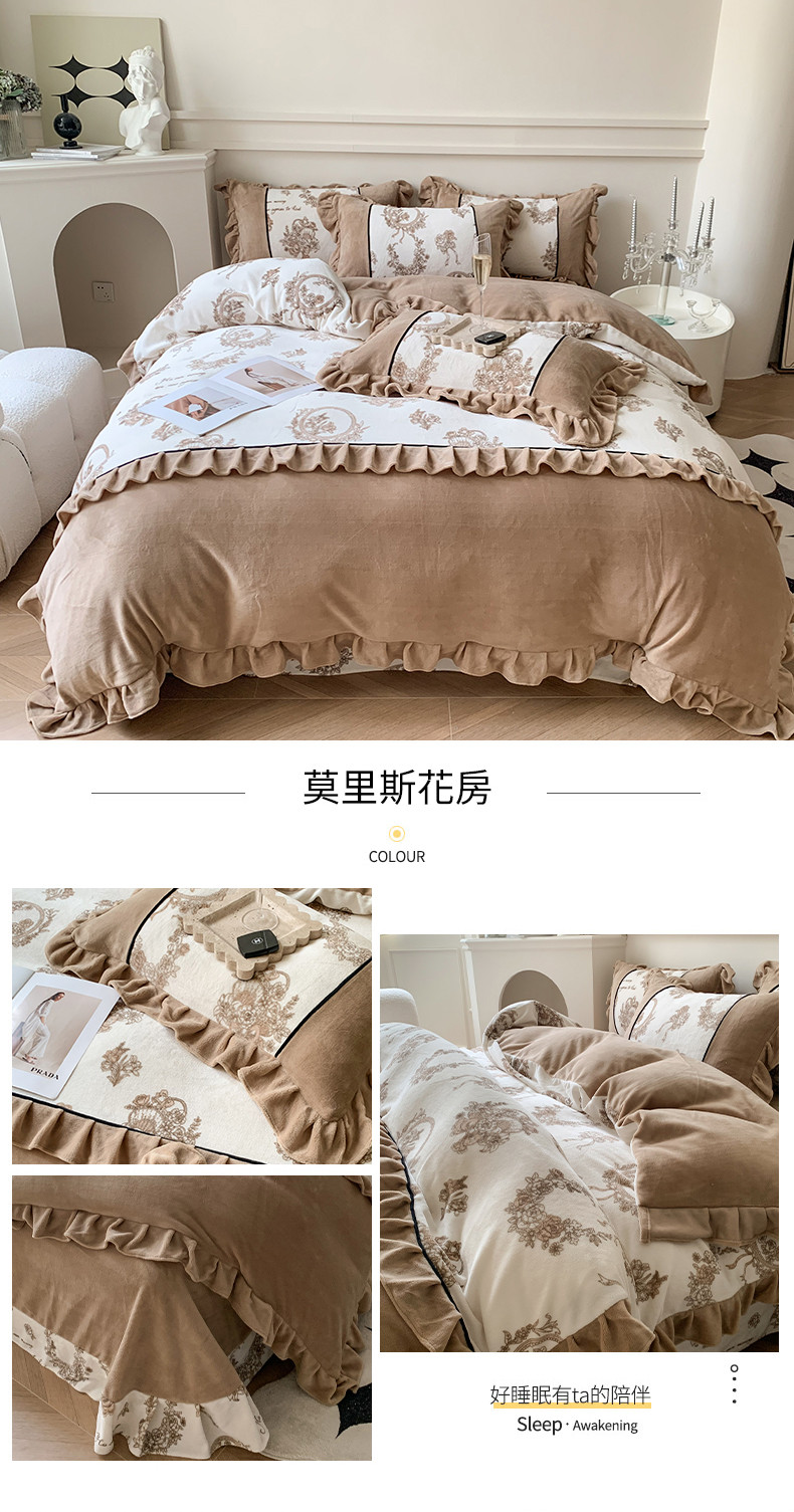 商品名称:吾欢心 2024新款法式复古韩版花边牛奶绒四件套 莫里斯花房