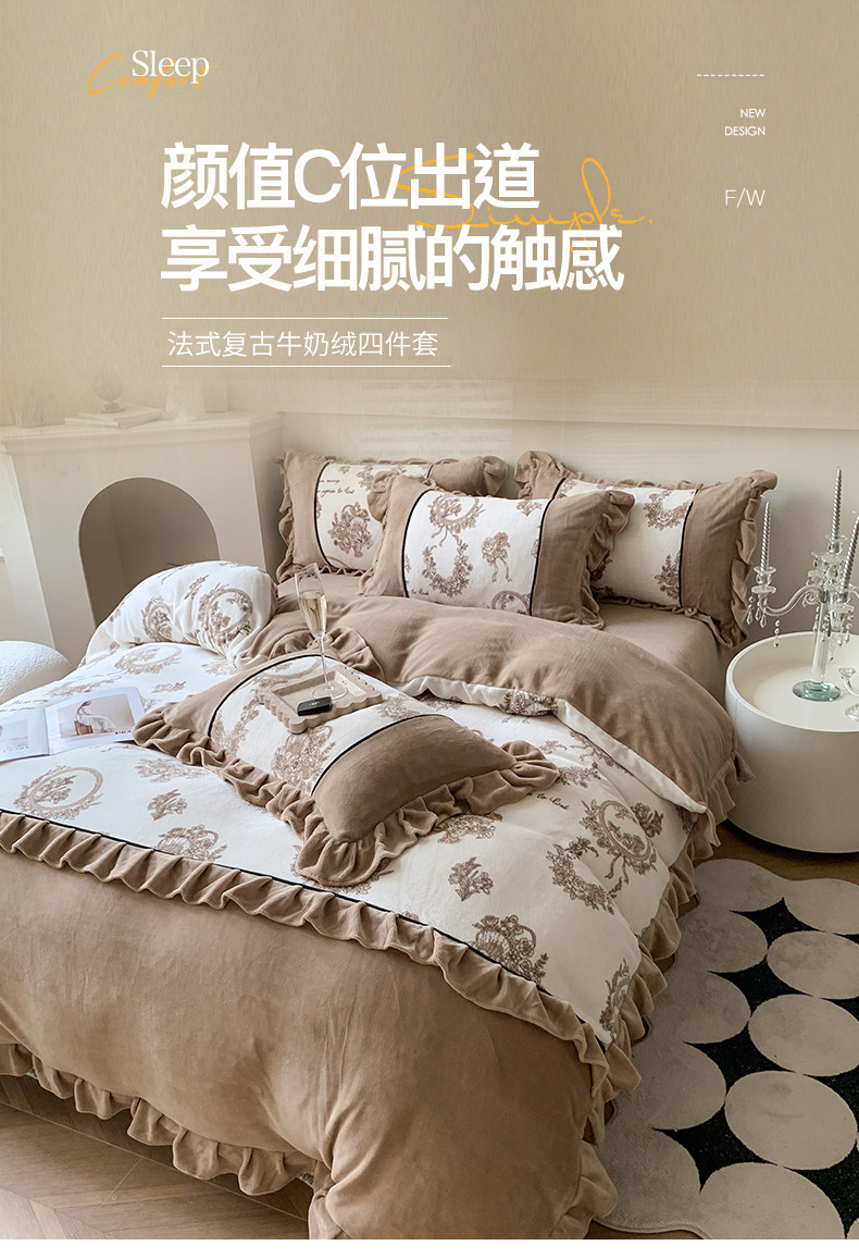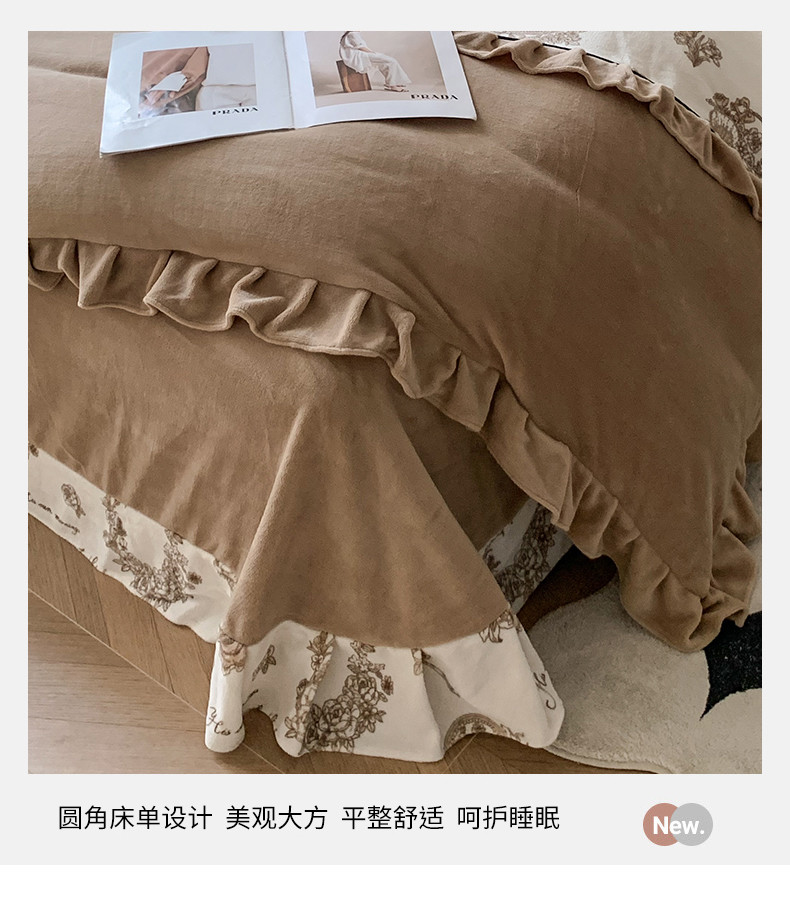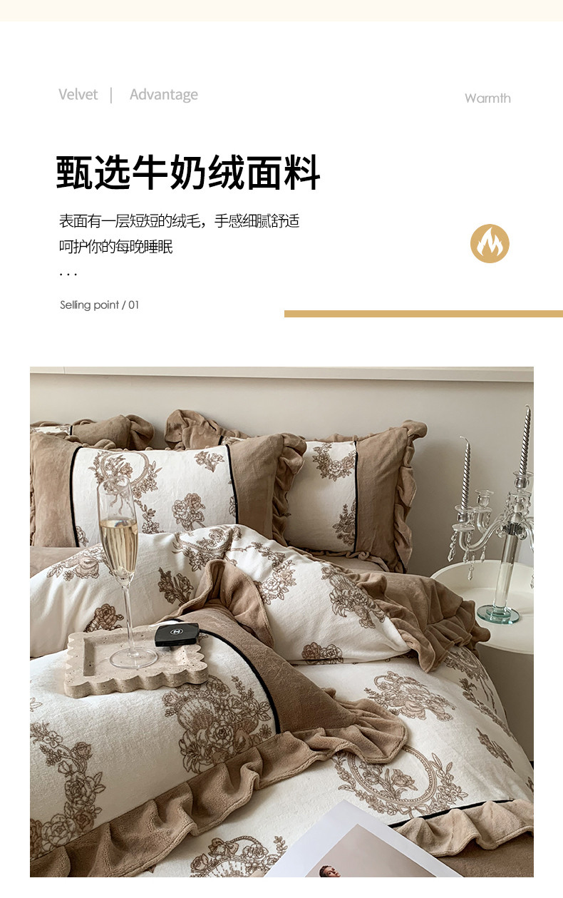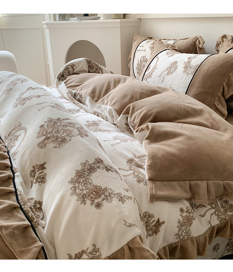 商品名称:吾欢心 2024新款法式复古韩版花边牛奶绒四件套 莫里斯花房