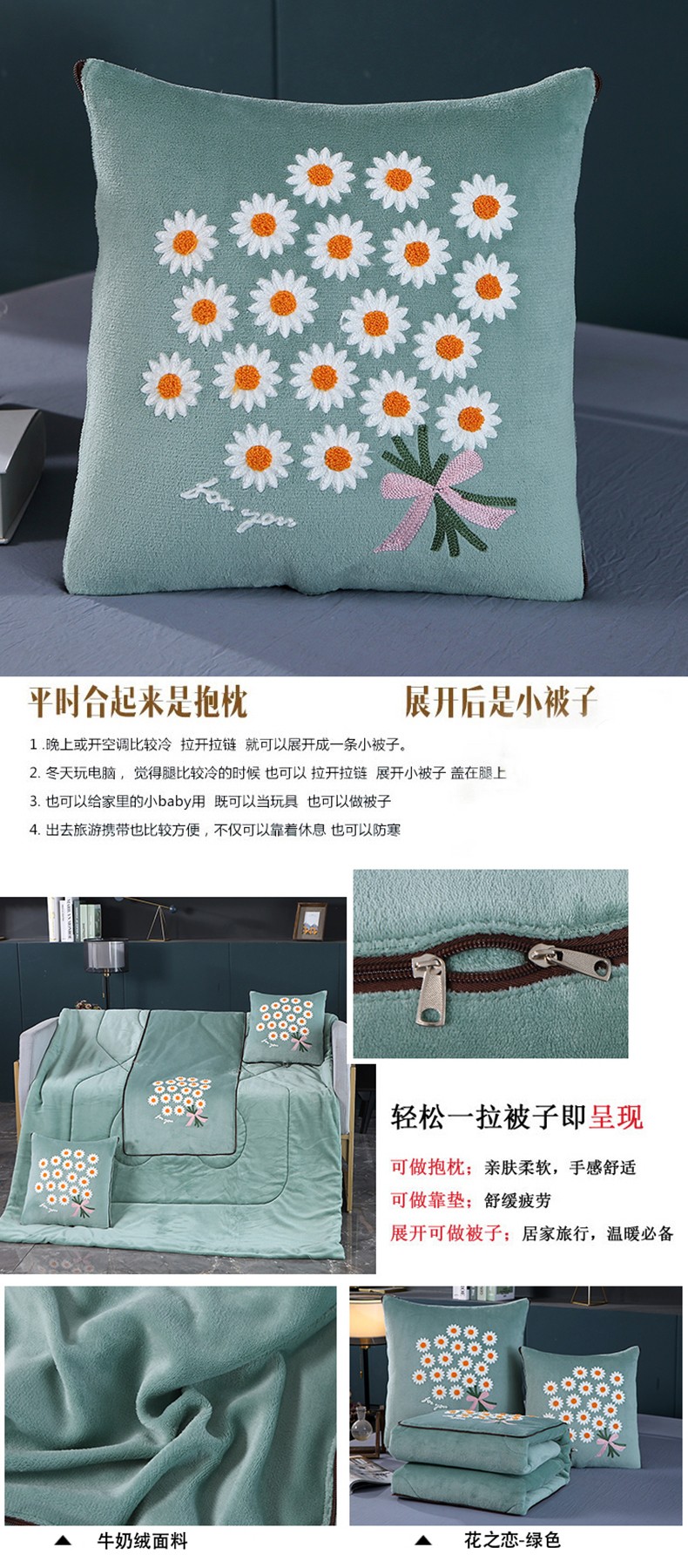 商品名称:伊可爱抱枕被 2023新款牛奶绒绣花抱枕被 花之恋-绿色