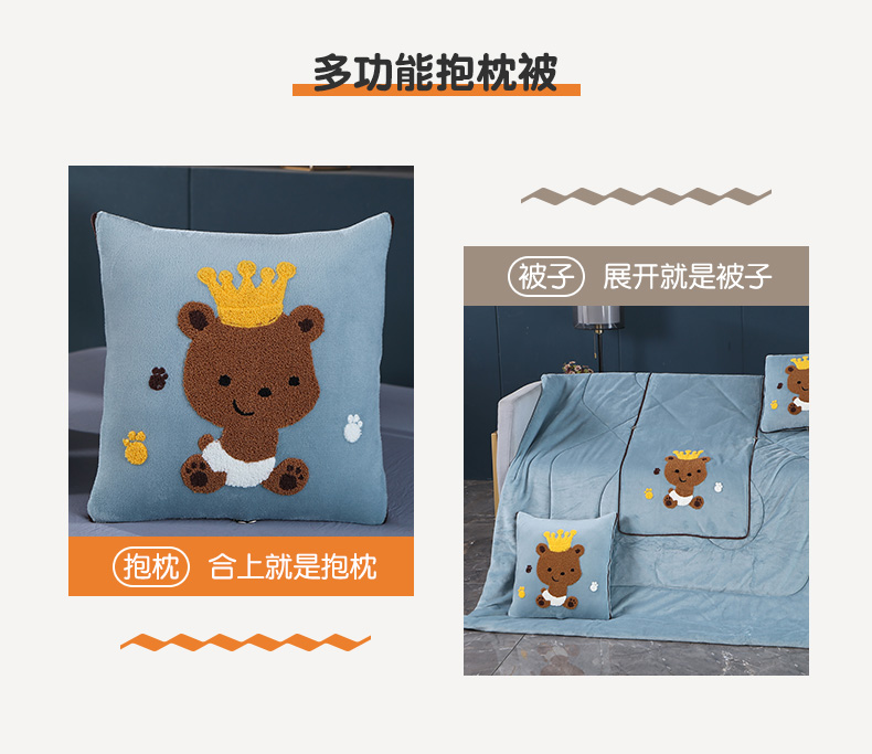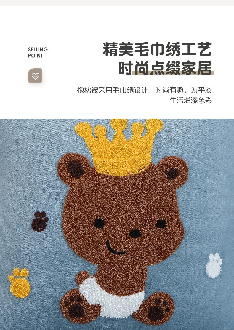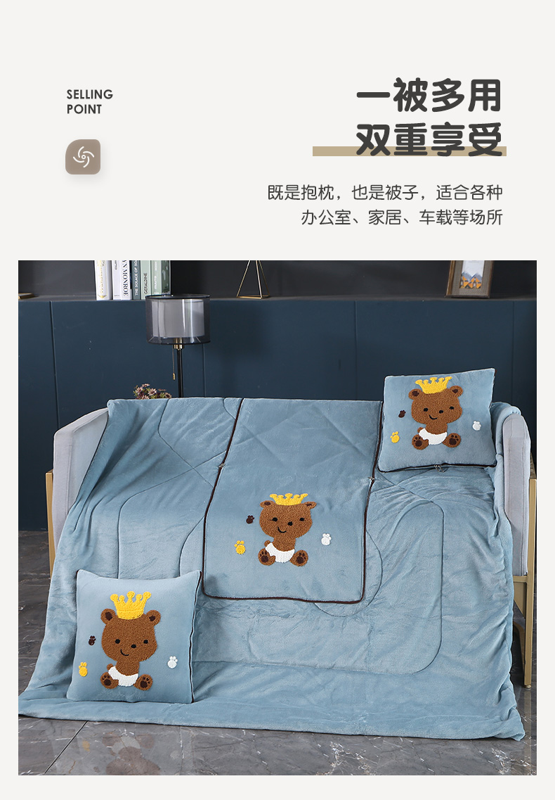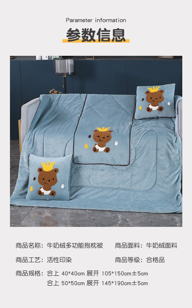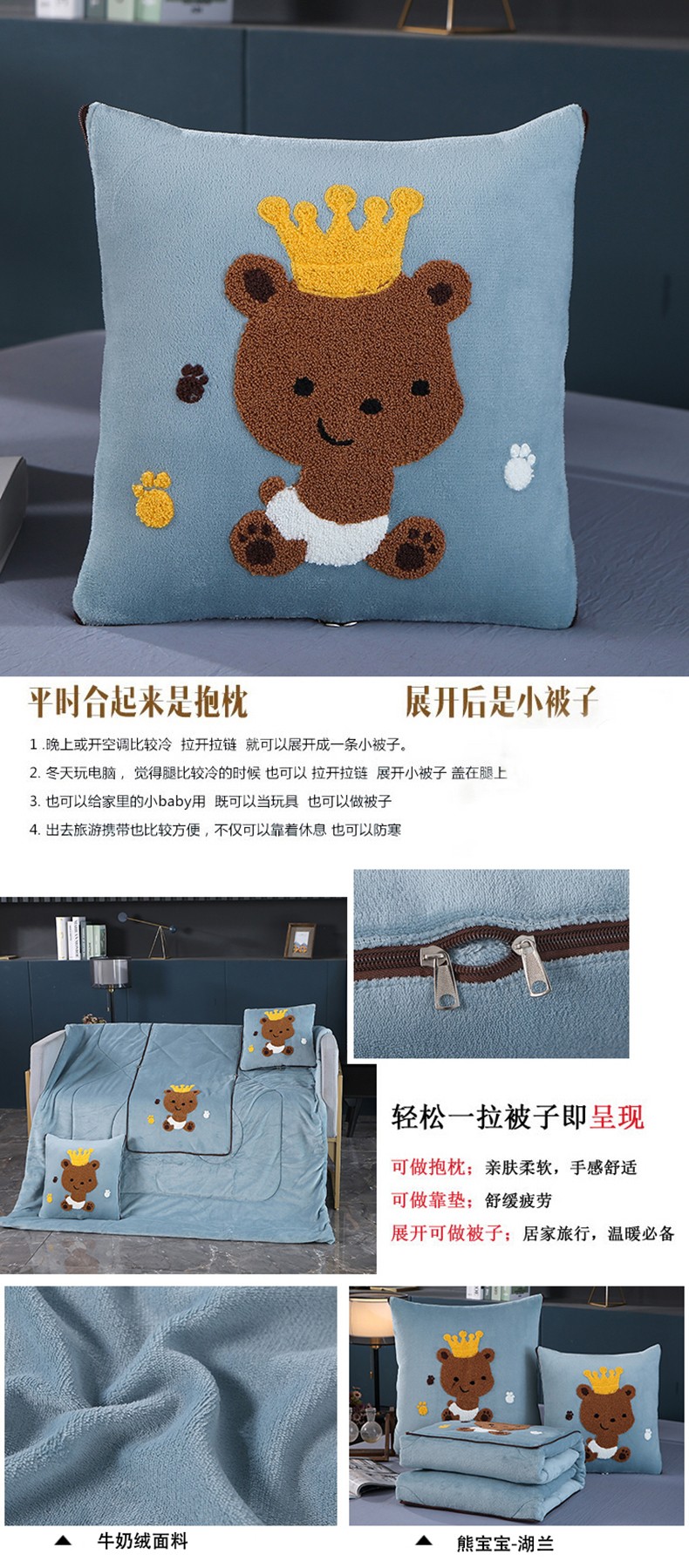 商品名称:伊可爱抱枕被 2023新款牛奶绒绣花抱枕被 熊宝宝-湖兰