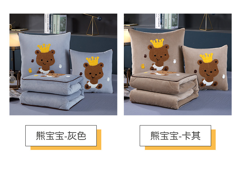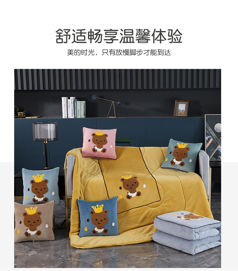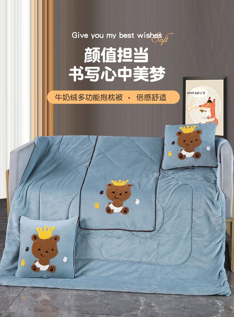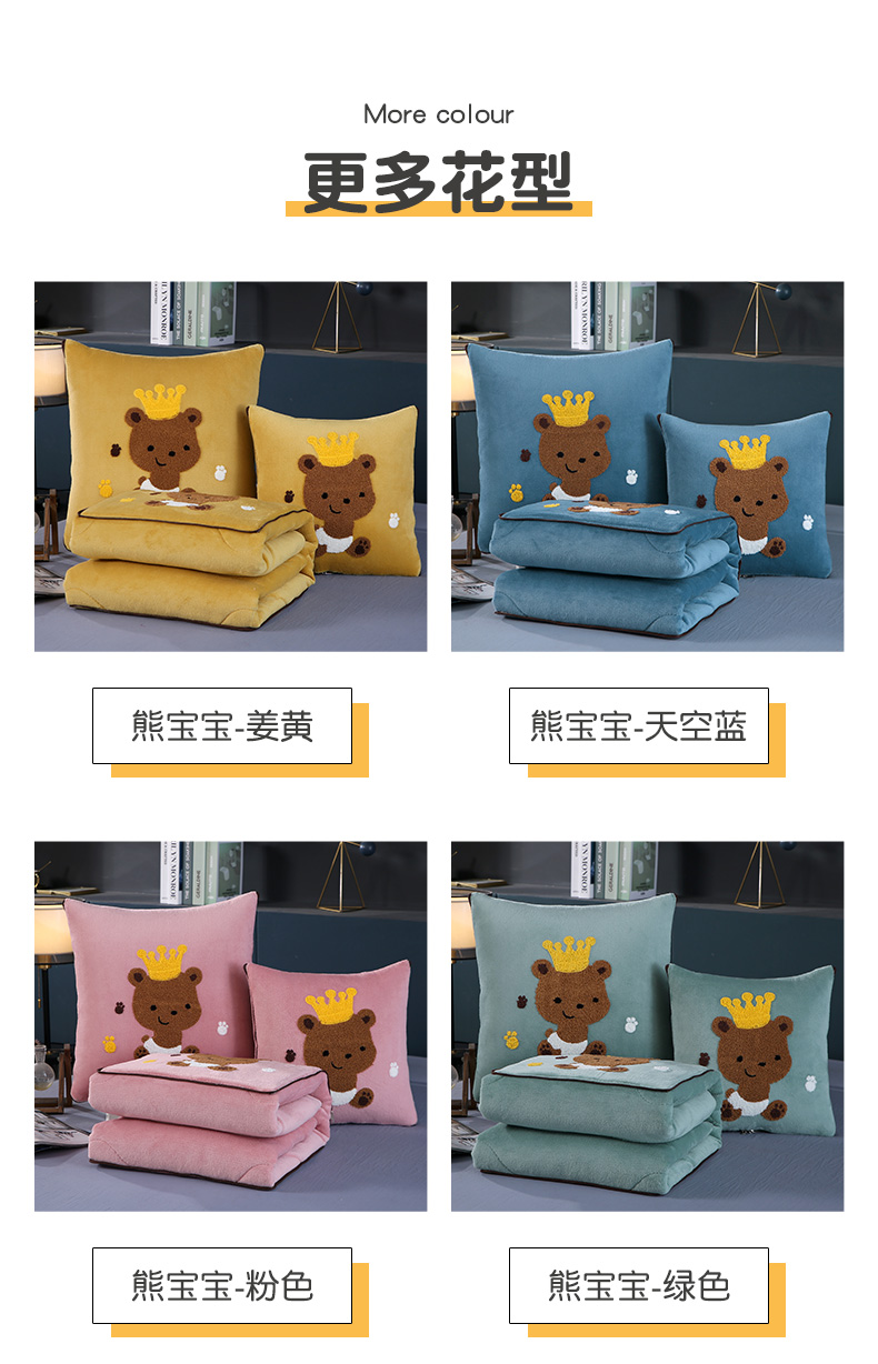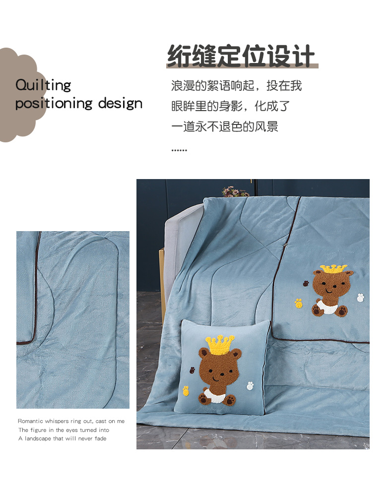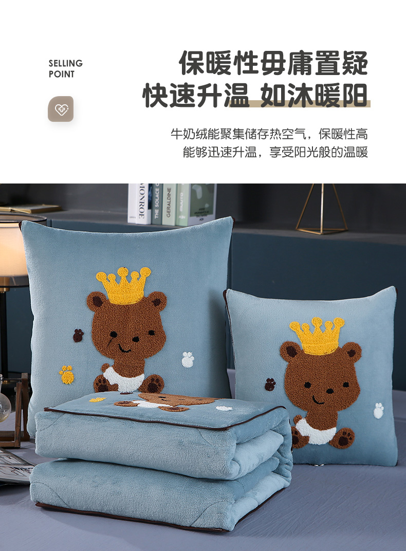 商品名称:伊可爱抱枕被 2023新款牛奶绒绣花抱枕被 熊宝宝-湖兰