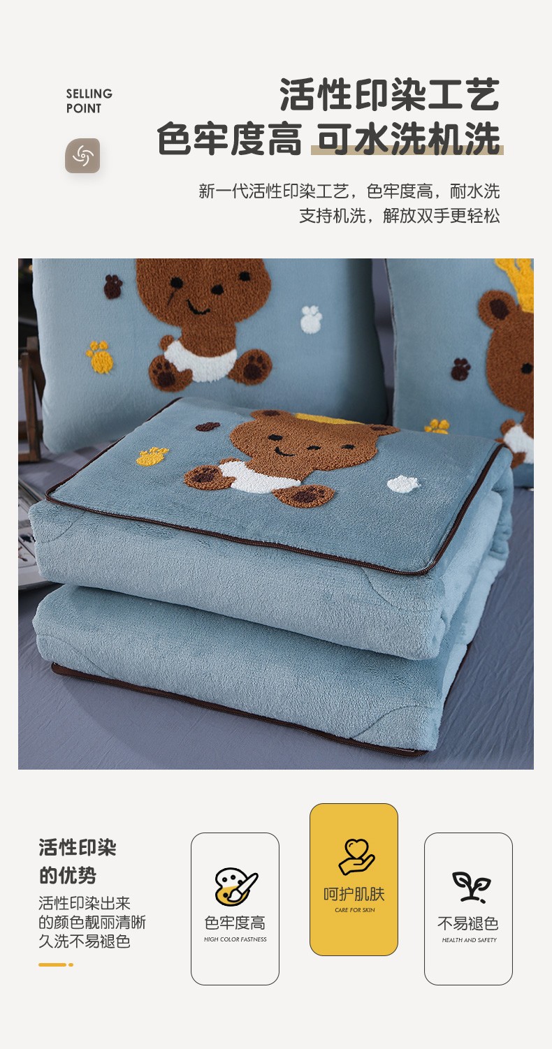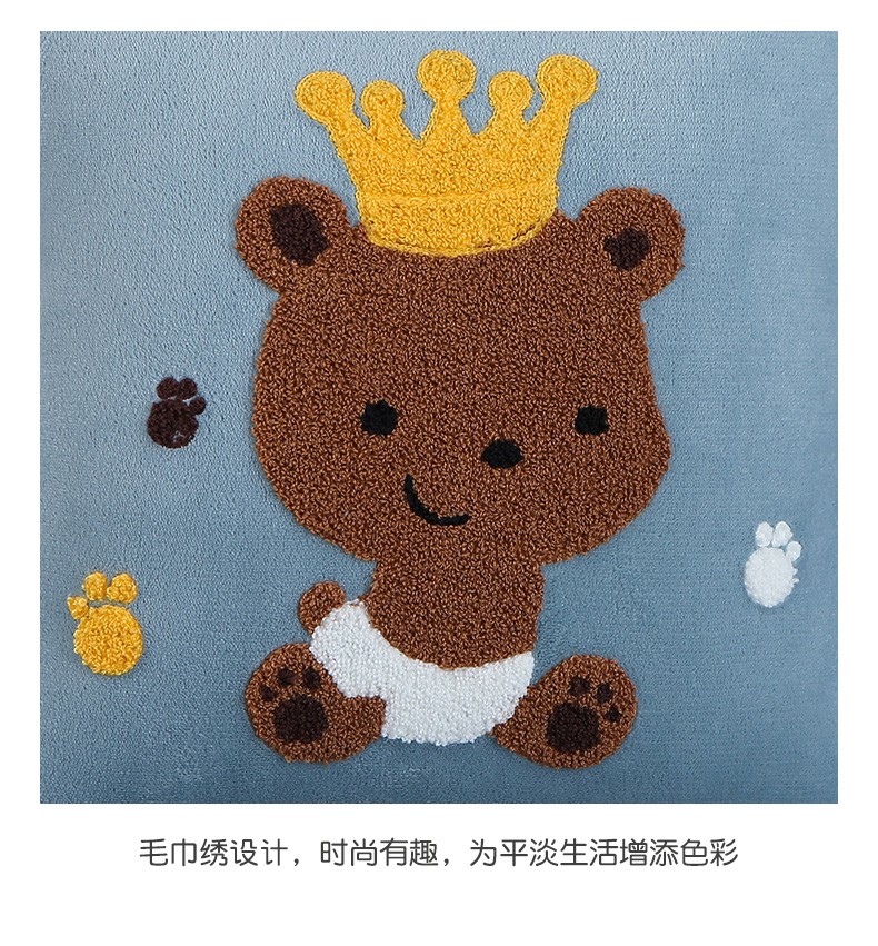 伊可爱抱枕被 2023新款牛奶绒绣花抱枕被 熊宝宝-湖兰