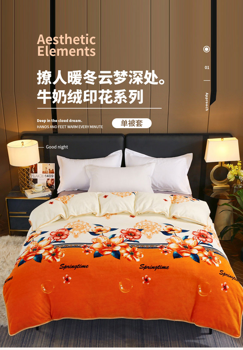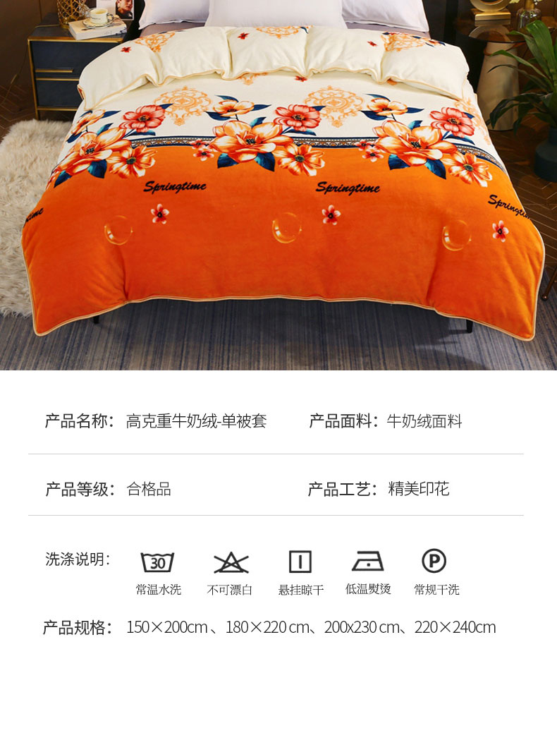 商品名称:(总)梓瑄家居 新款230克特厚款印花牛奶绒单被套法莱绒金貂被套单件