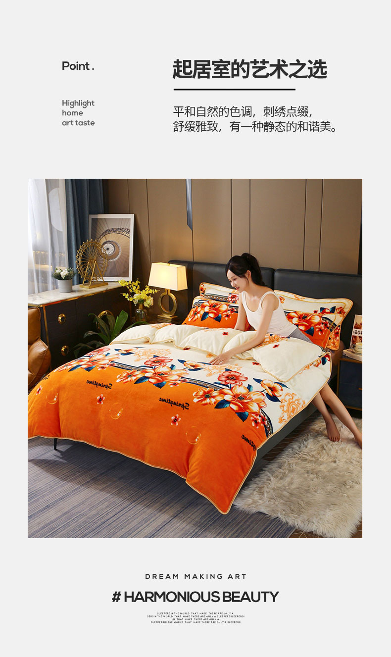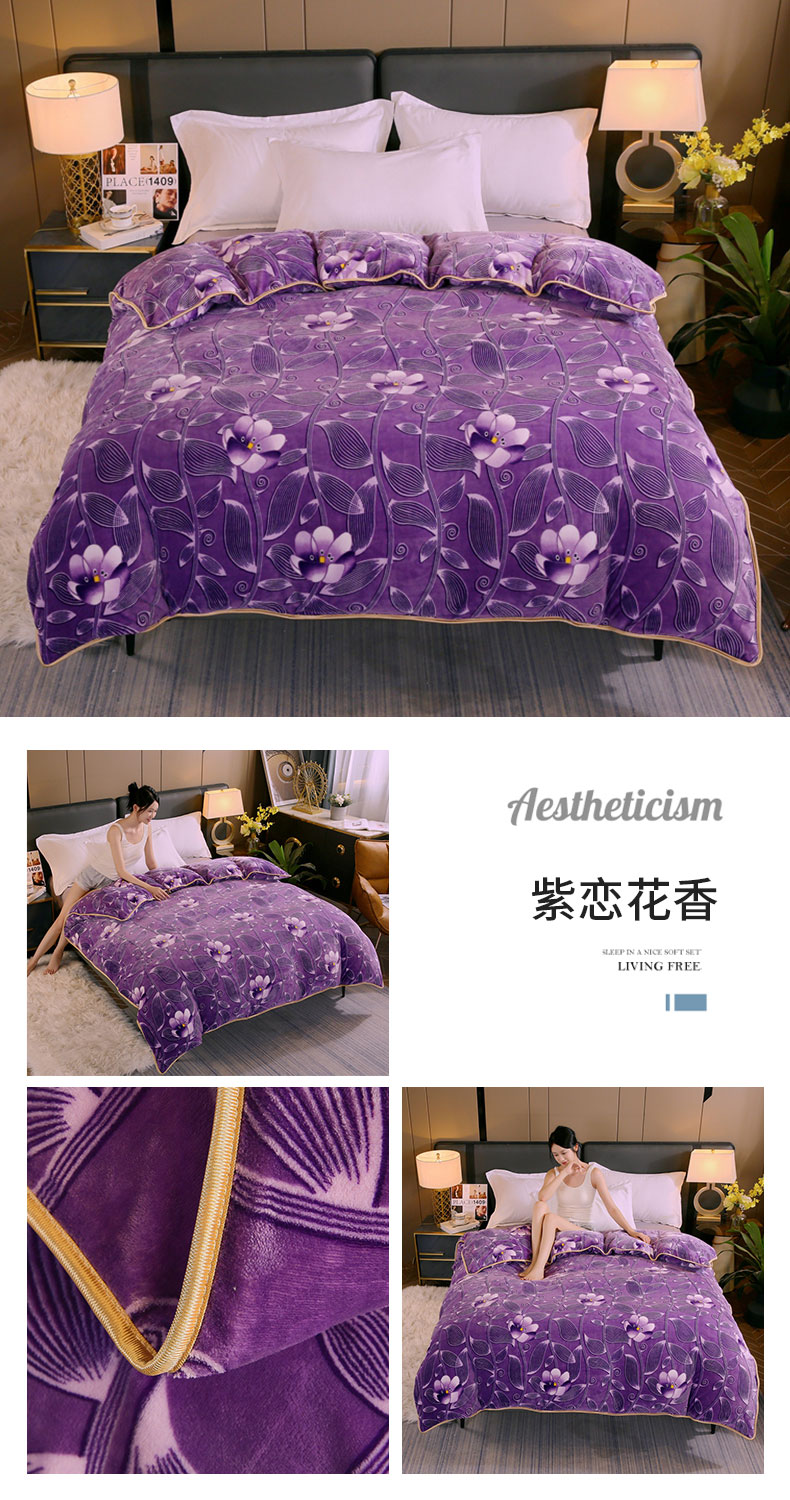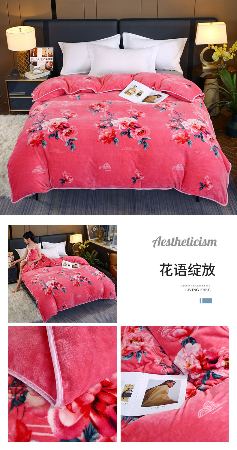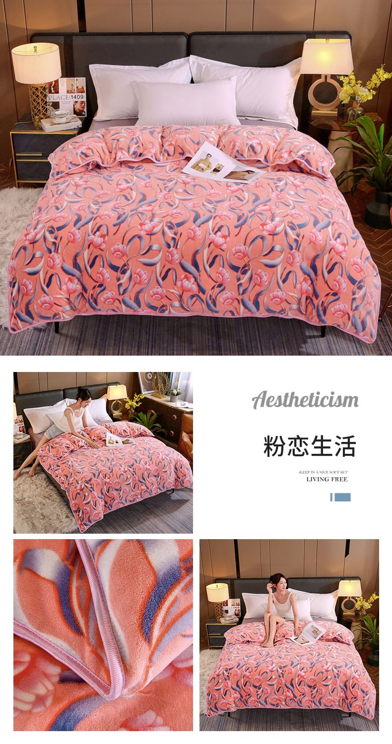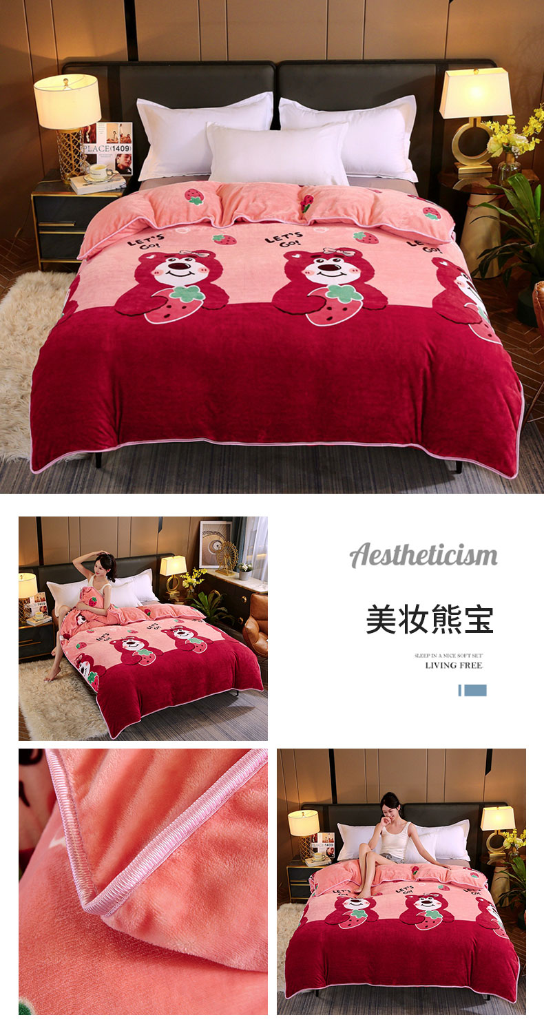 (总)梓瑄家居 新款230克特厚款印花牛奶绒单被套法莱绒金貂被套单件