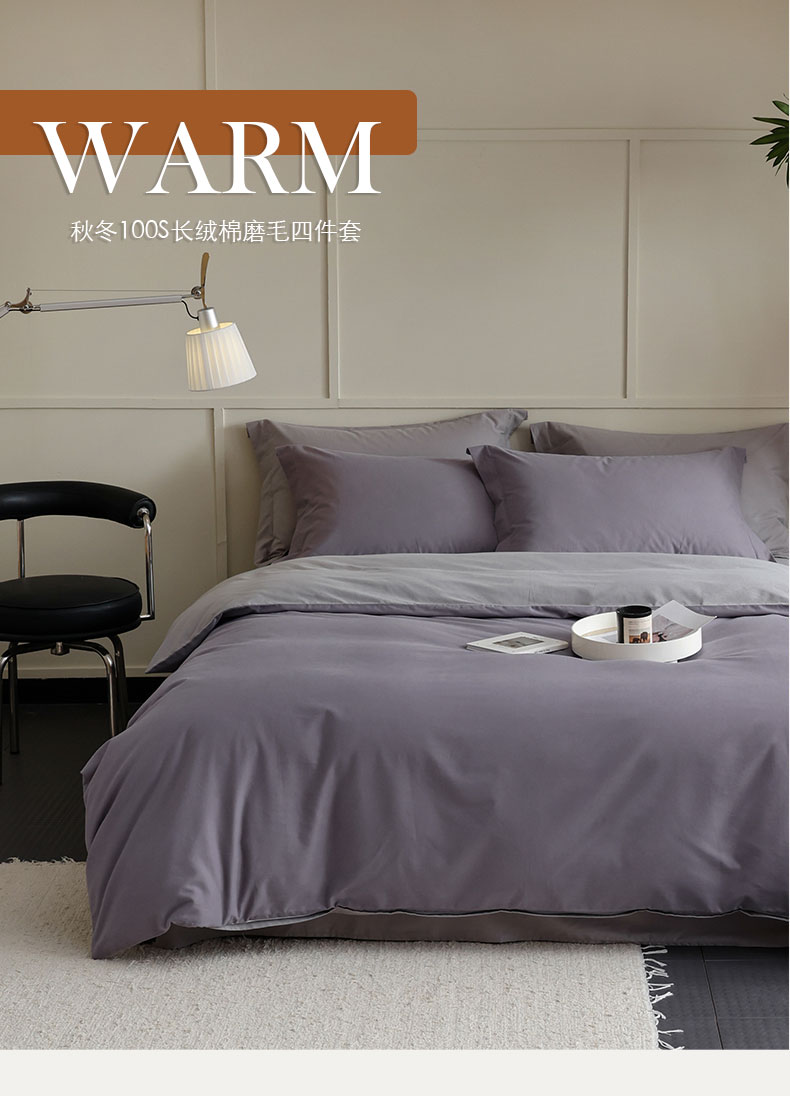 当前位置: 91家纺网 > 商品网购 > 床品套件 > 四件套 > 全棉活性四件套 > 2023新款A类加厚50s超柔全棉长绒棉磨毛四件套 蓝莓灰+银灰