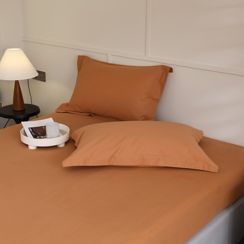蕊姿家居 2023新款A类加厚50s超柔全棉长绒棉磨毛枕套 暖橙