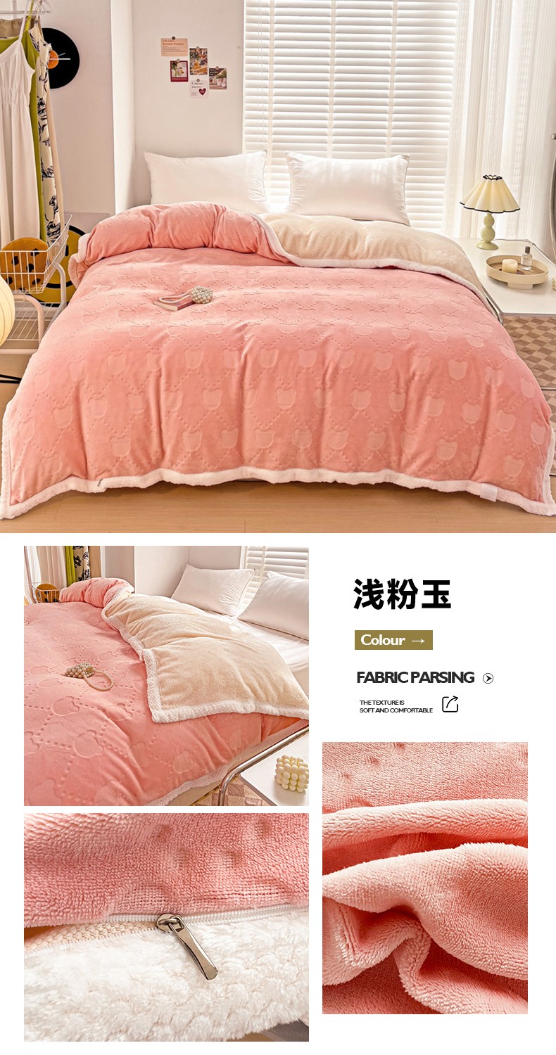 商品名称:法澳 2023新款220克牛奶绒雕花烂花多功能单被套 甘比熊-浅粉玉