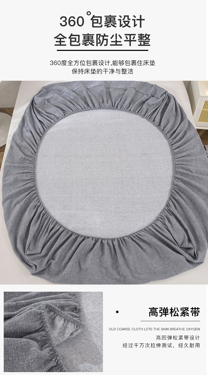 • 91家纺网 家纺一手货源 找家纺 棉乐町 2025新款老粗布床笠 浅灰