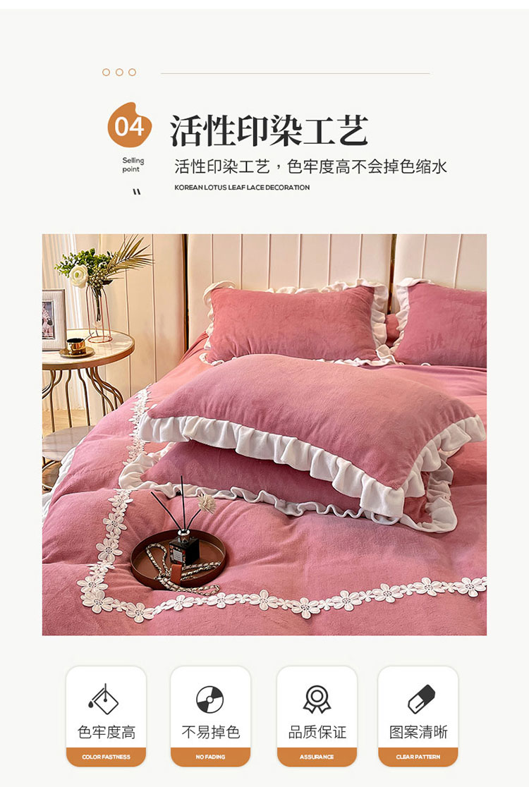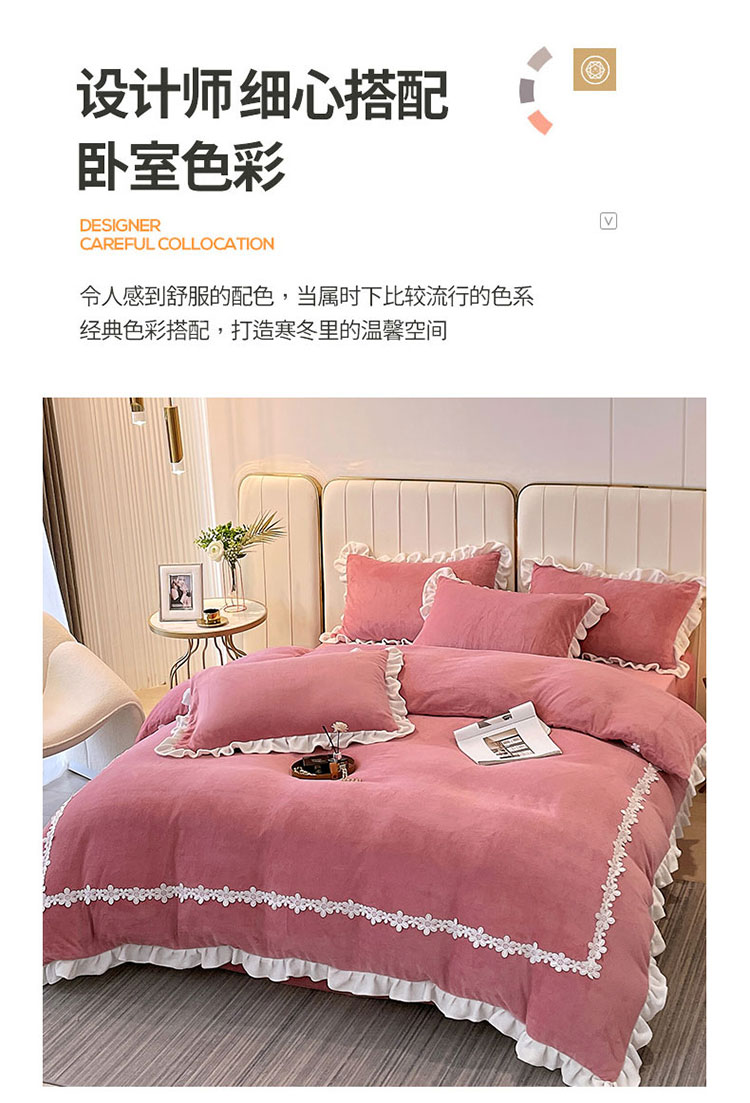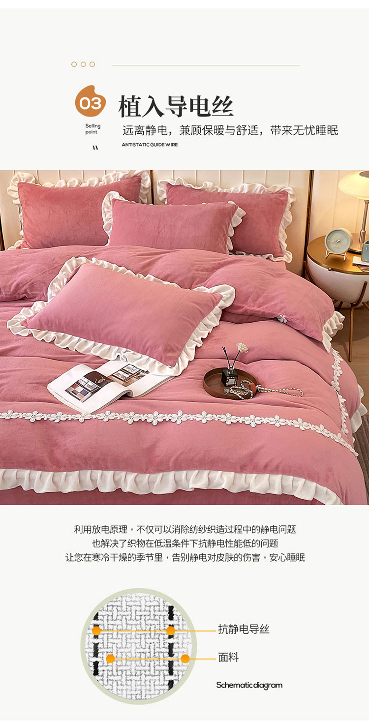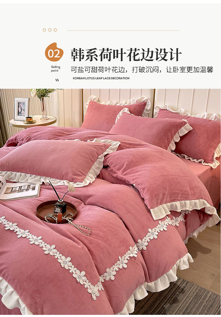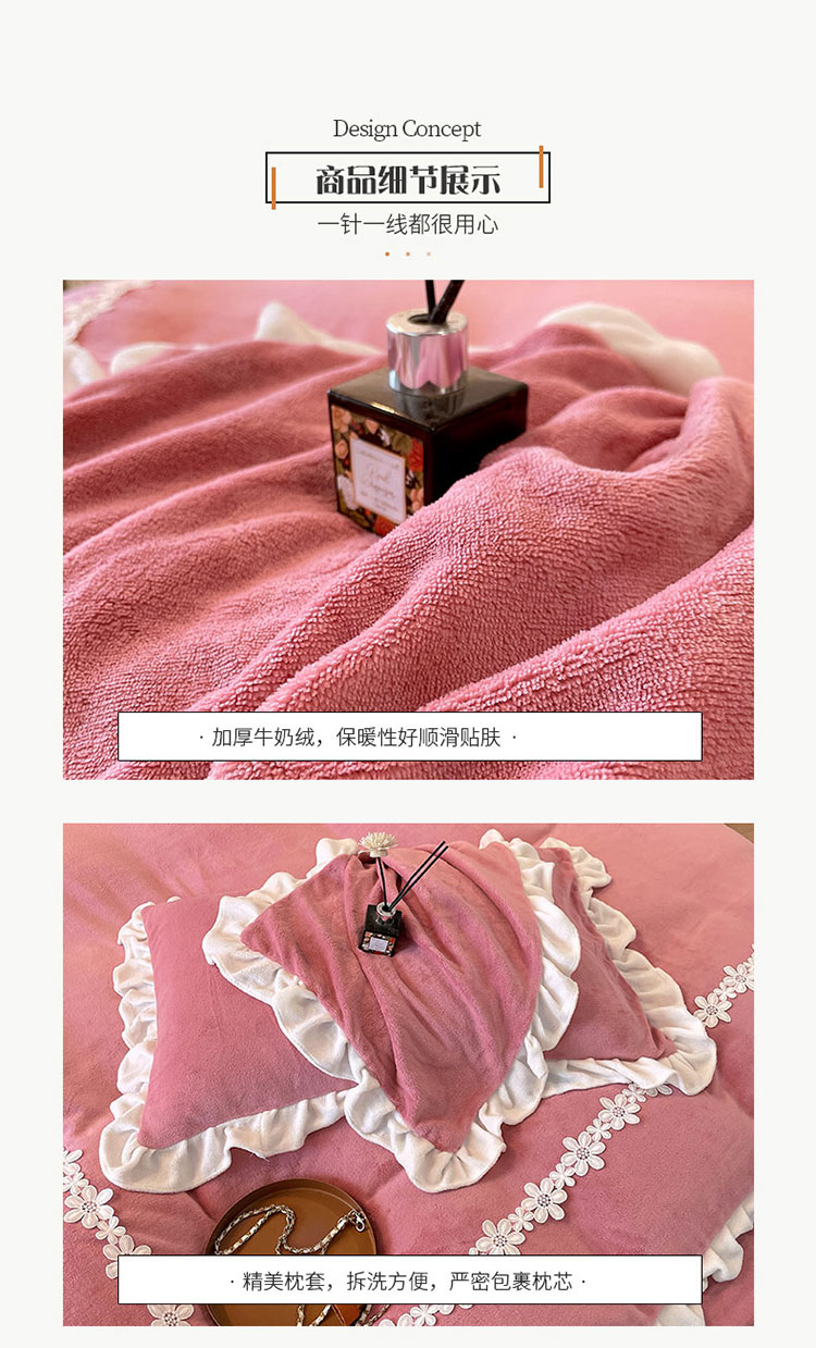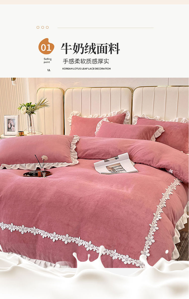 商品名称:2023新款韩版水溶花边牛奶绒四件套--安娜系列 安娜-甜豆沙