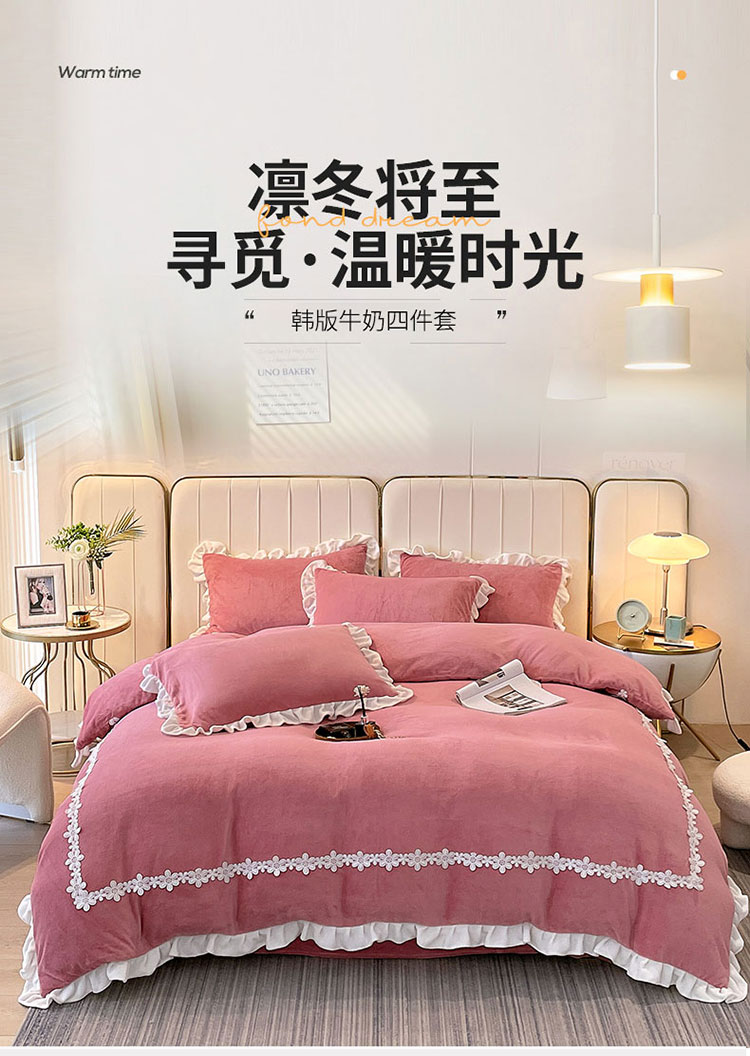 2023新款韩版水溶花边牛奶绒四件套--安娜系列 安娜-甜豆沙